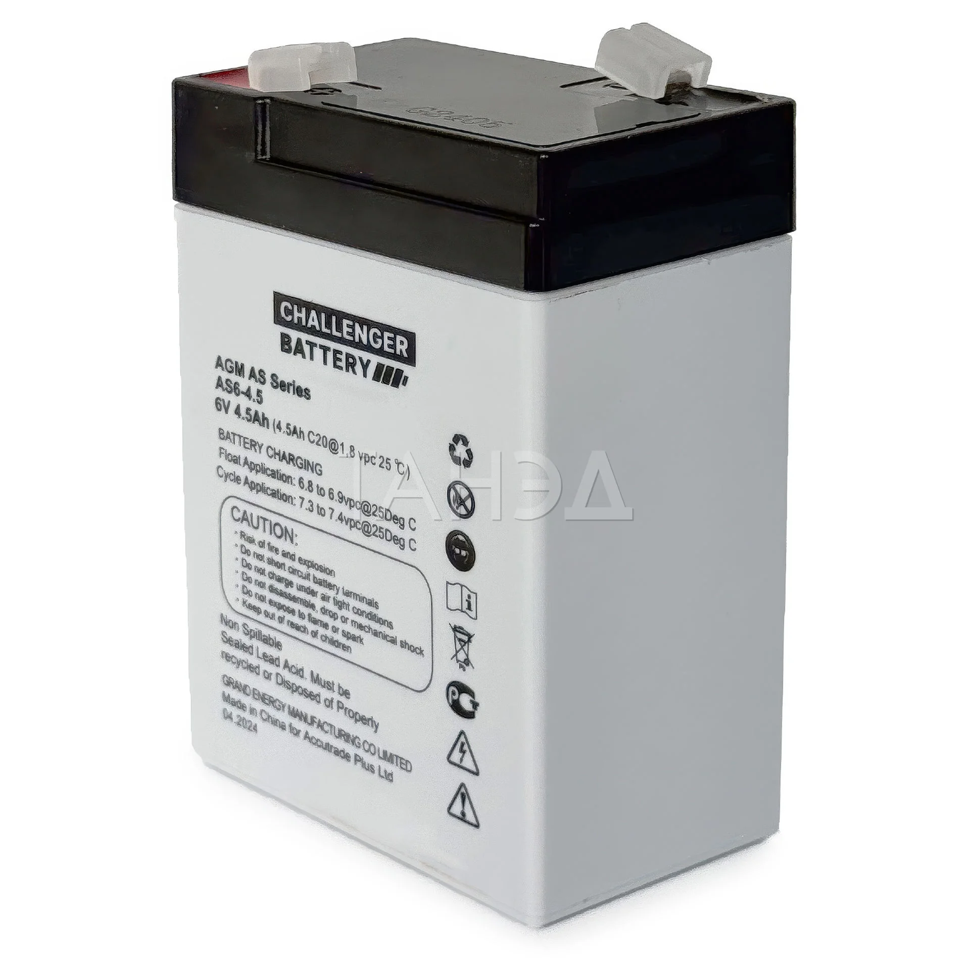 Необслуживаемая АКБ Challenger AS6-4.5. Емкость: 4,5 Ач. Напряжение: 6 В. Компактная AGM-батарея с технологией адсорбированного электролита, весом 0,75 кг и габаритами 70х47х100 мм. Подходит для систем резервного питания малой мощности.