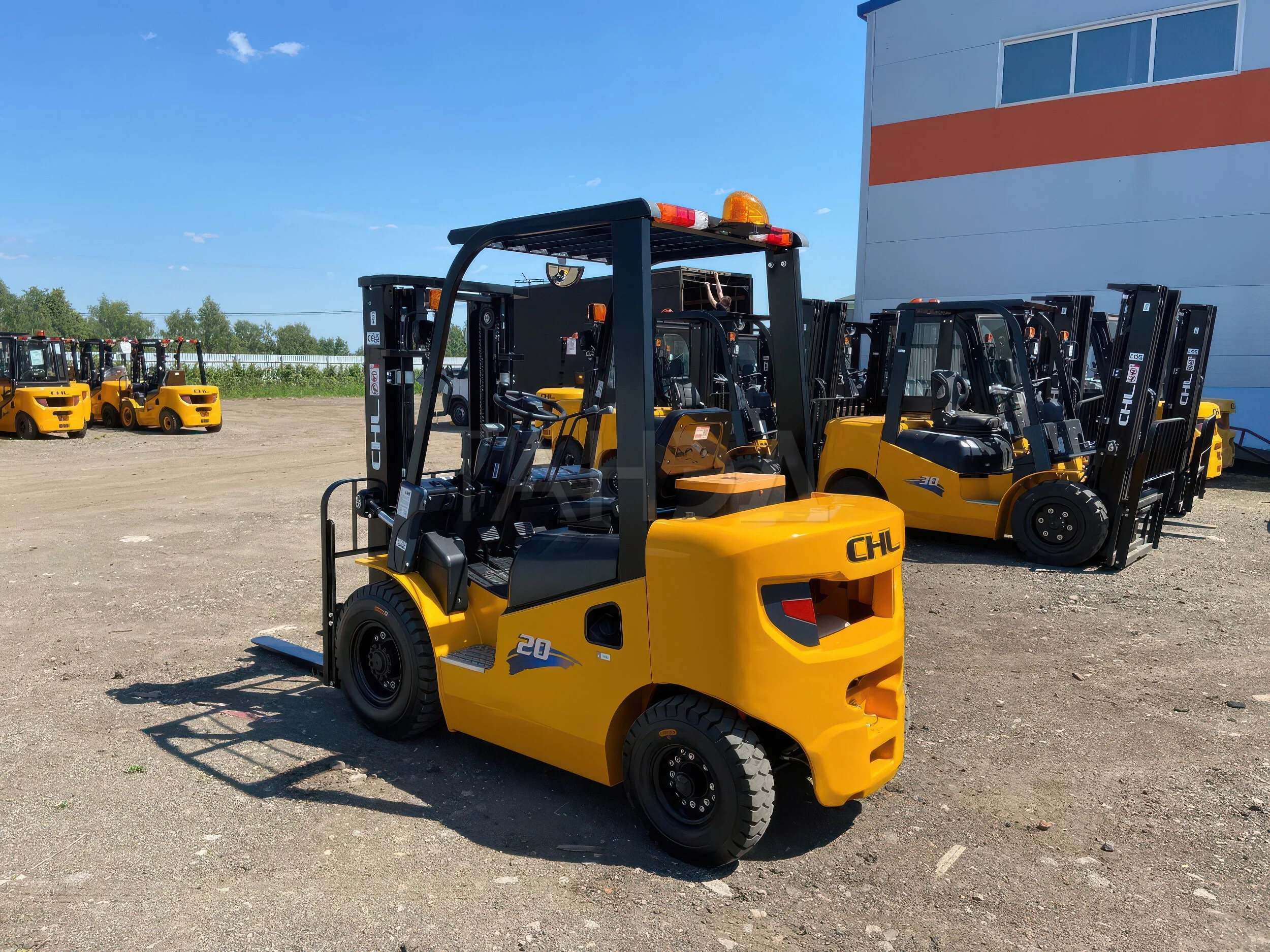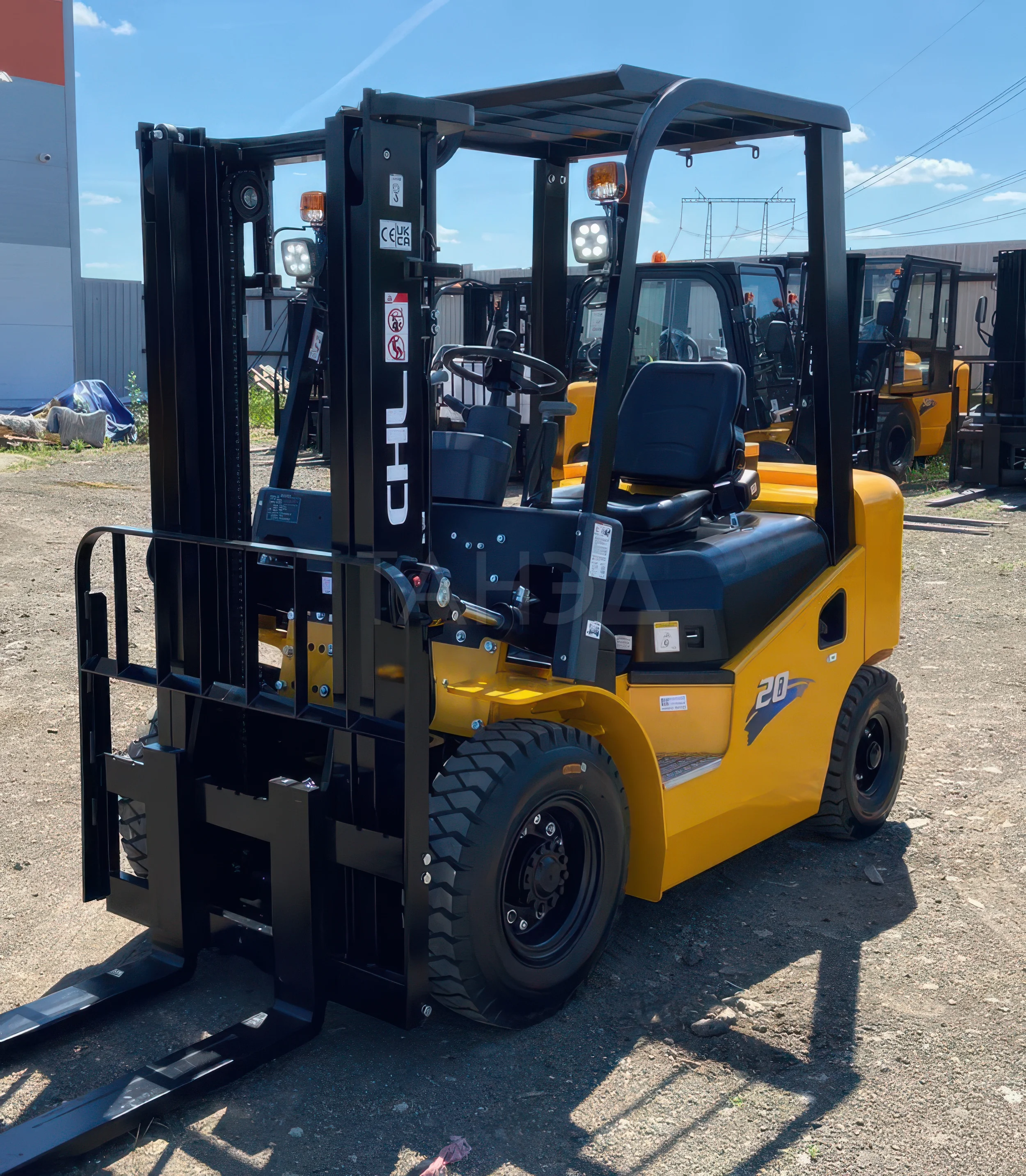 Дизельный вилочный погрузчик CHL CPCD20 K2-серии с максимальной грузоподъемностью 2000 кг и высотой подъема 3000-7500 мм. Силовым агрегатом служит надежный, экологичный дизель Xinchang 490BPG.