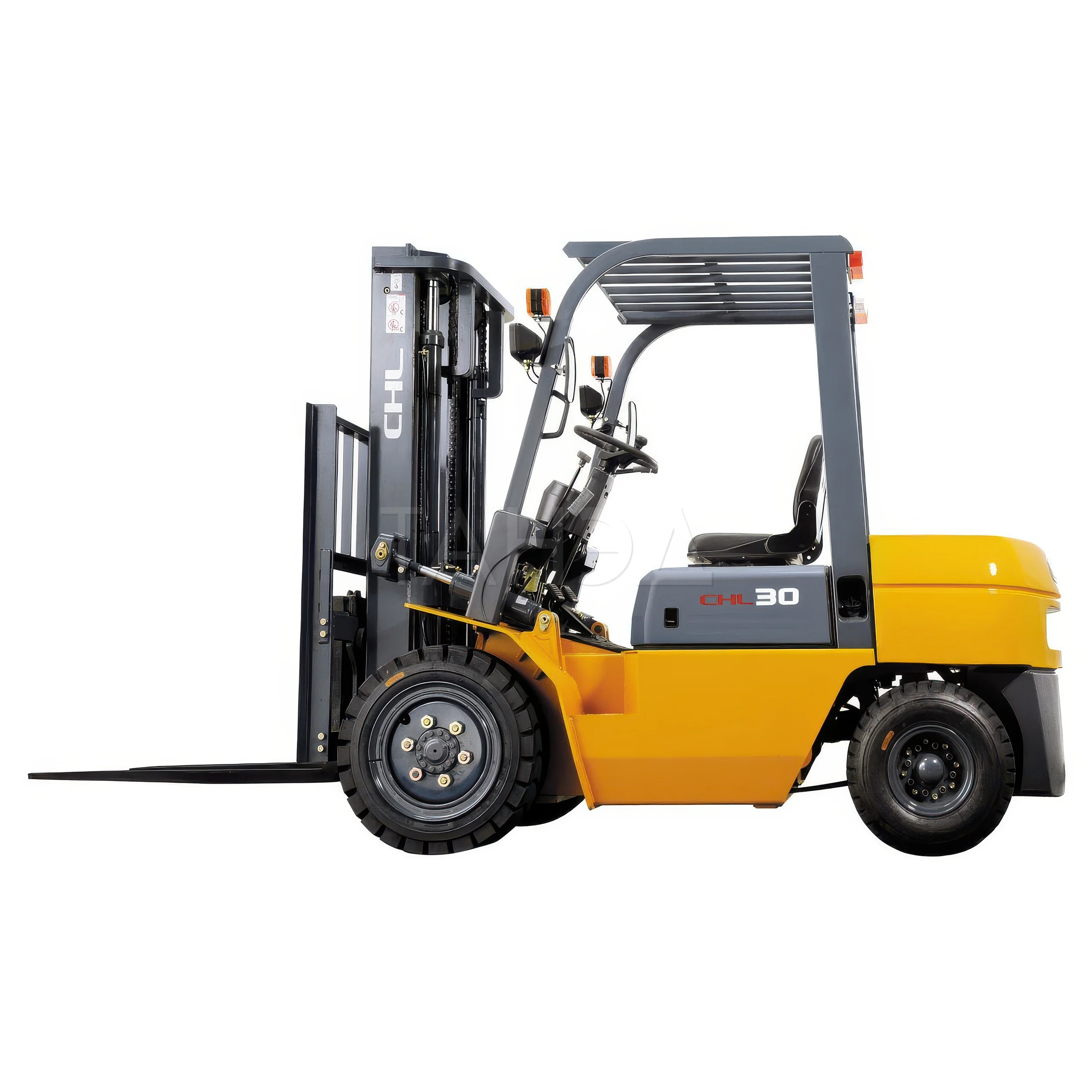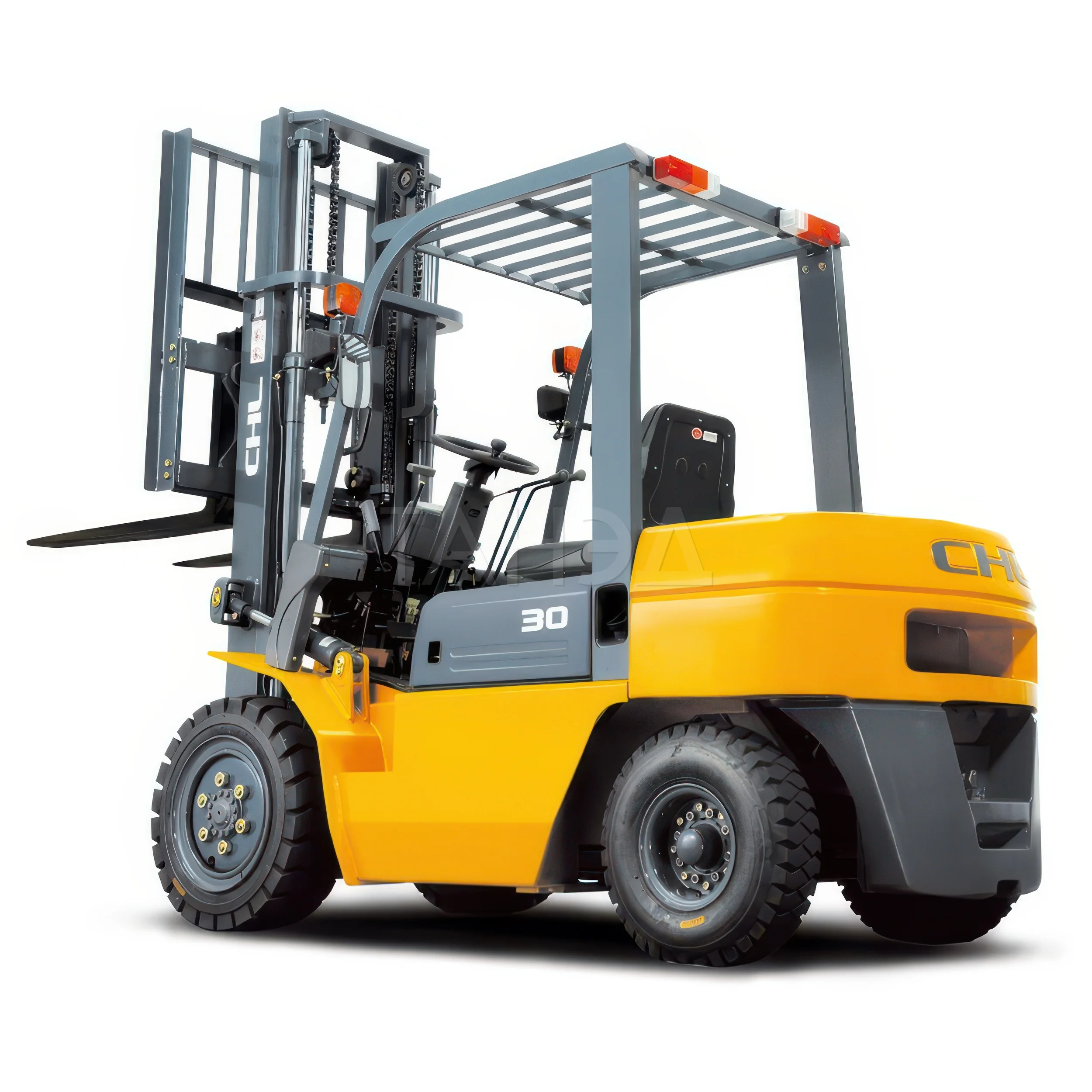 Дизельный вилочный погрузчик CHL CPCD30 HG3-серии с максимальной грузоподъемностью 3000 кг и высотой подъема 3000-7000 мм. Силовой агрегат – простой в обслуживании, экологичный дизель QUANCHAI V32-50C42.