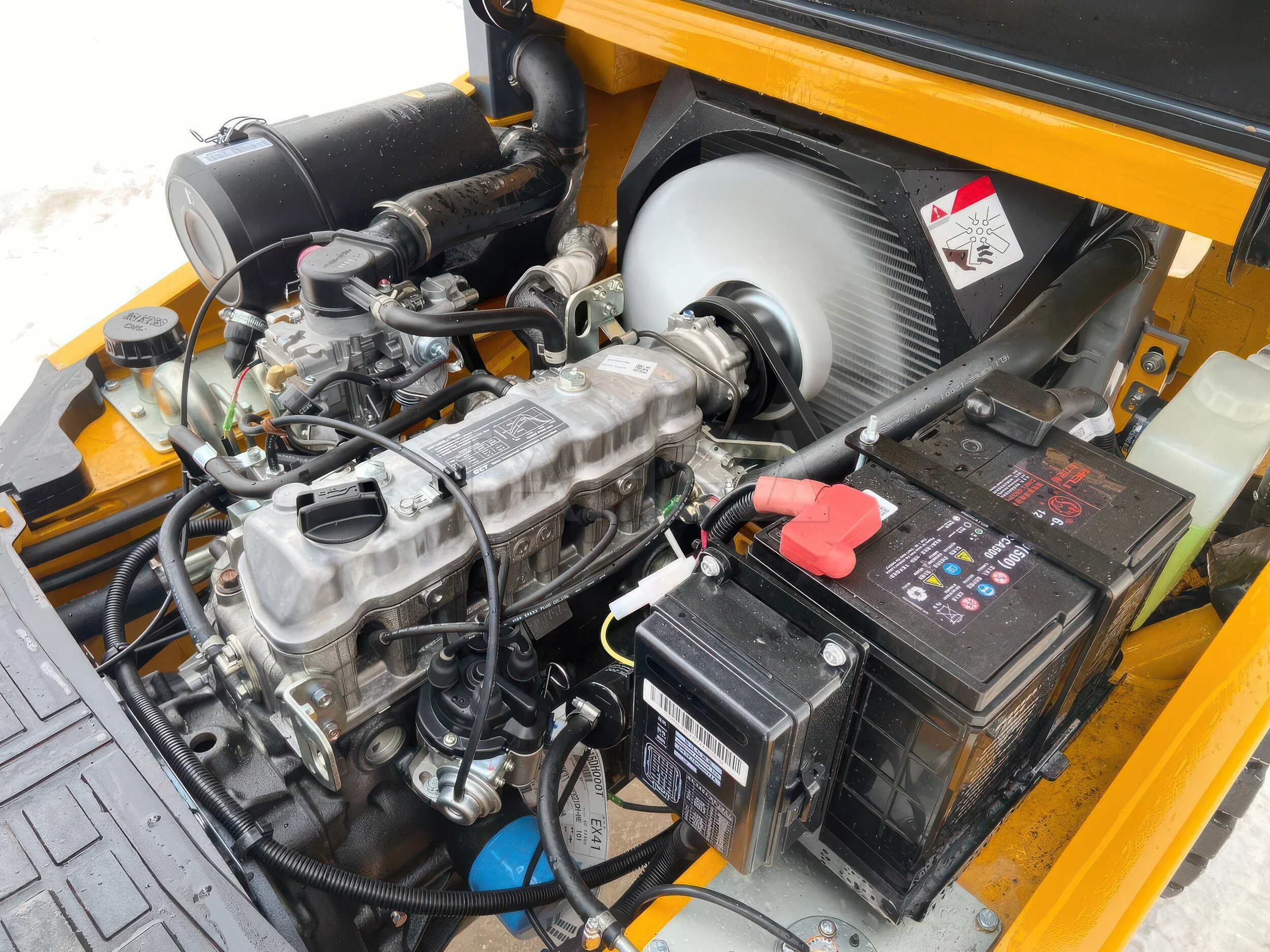 Для удобства обслуживания, к основным узлам обеспечен удобный доступ – снимаются нижние панели, передняя и задняя, у капота двигателя большой угол открывания. Погрузчик можно запускать по паролю и по карте.