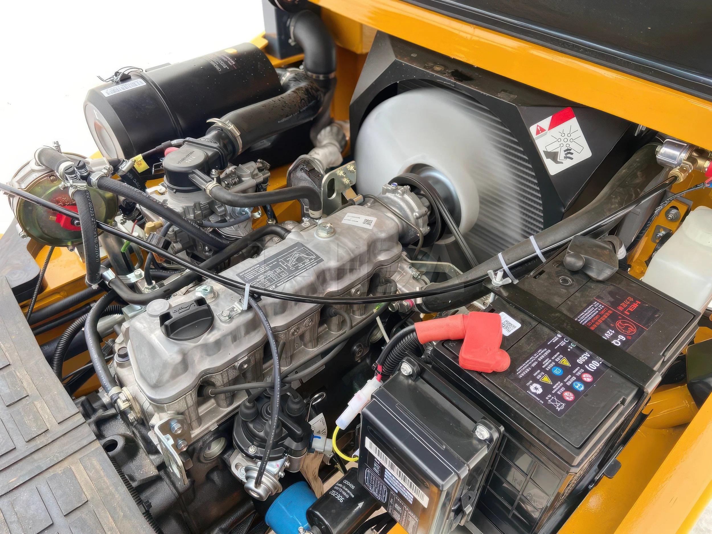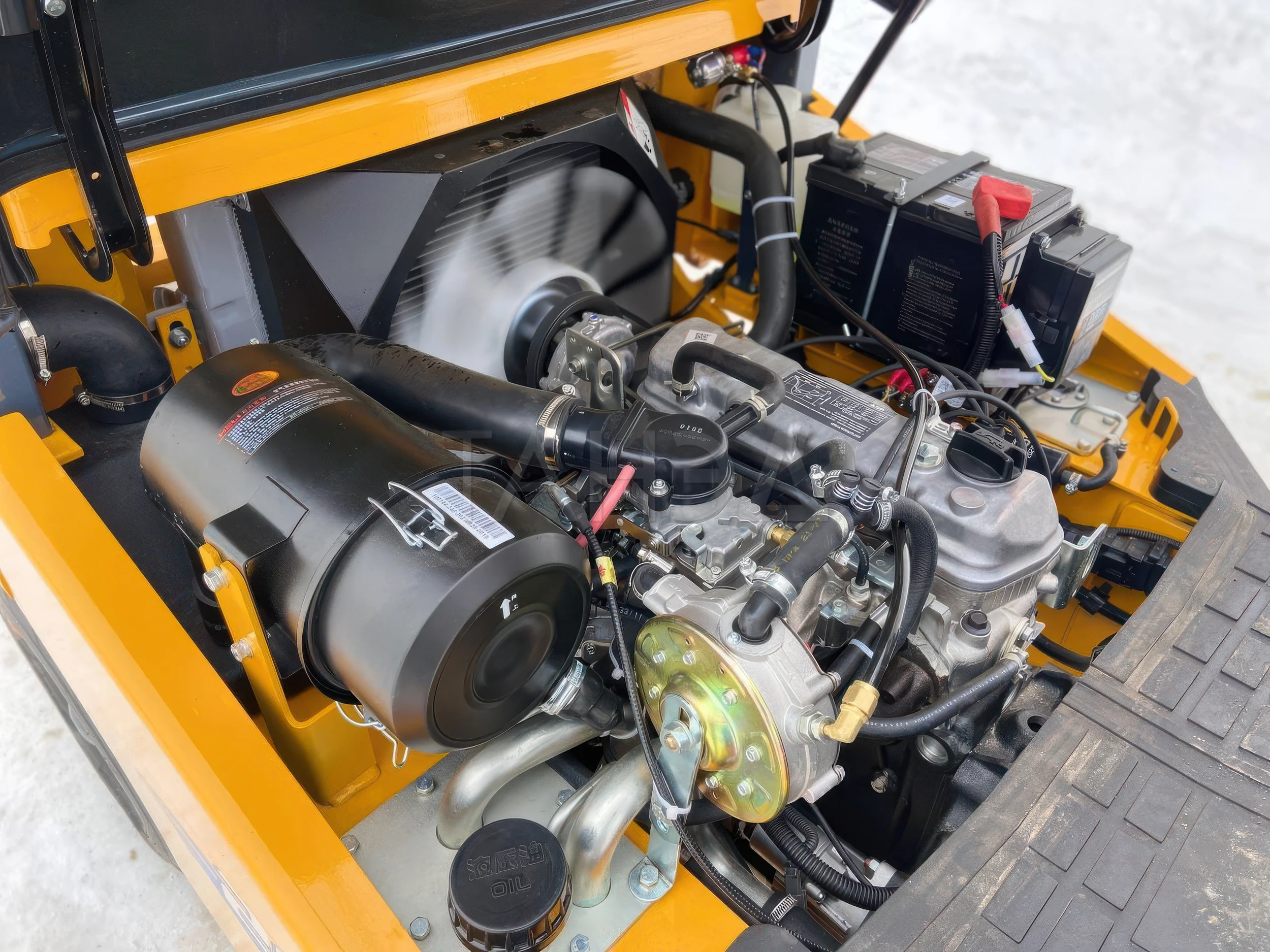 Комплектуют технику бензиновым двигателем GCT GK21 или GCT GK25, в зависимости от грузоподъемности модели. Силовой агрегат работает на бензине и газе (пропан-бутане), что сокращает до минимума риск простоев из-за закончившегося топлива. Двигатель обычно запускают на бензине, поскольку этот процесс проще и предсказуемее, а уже после прогрева переключают на газ, так как его эксплуатация обходится дешевле и экономичнее.