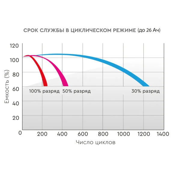 - Источники резервного энергоснабжения – высокая цикличность разрядов (до 1300 циклов при глубине разряда 30%) и способность работать в температурном диапазоне от -25 °C до +55 °C.