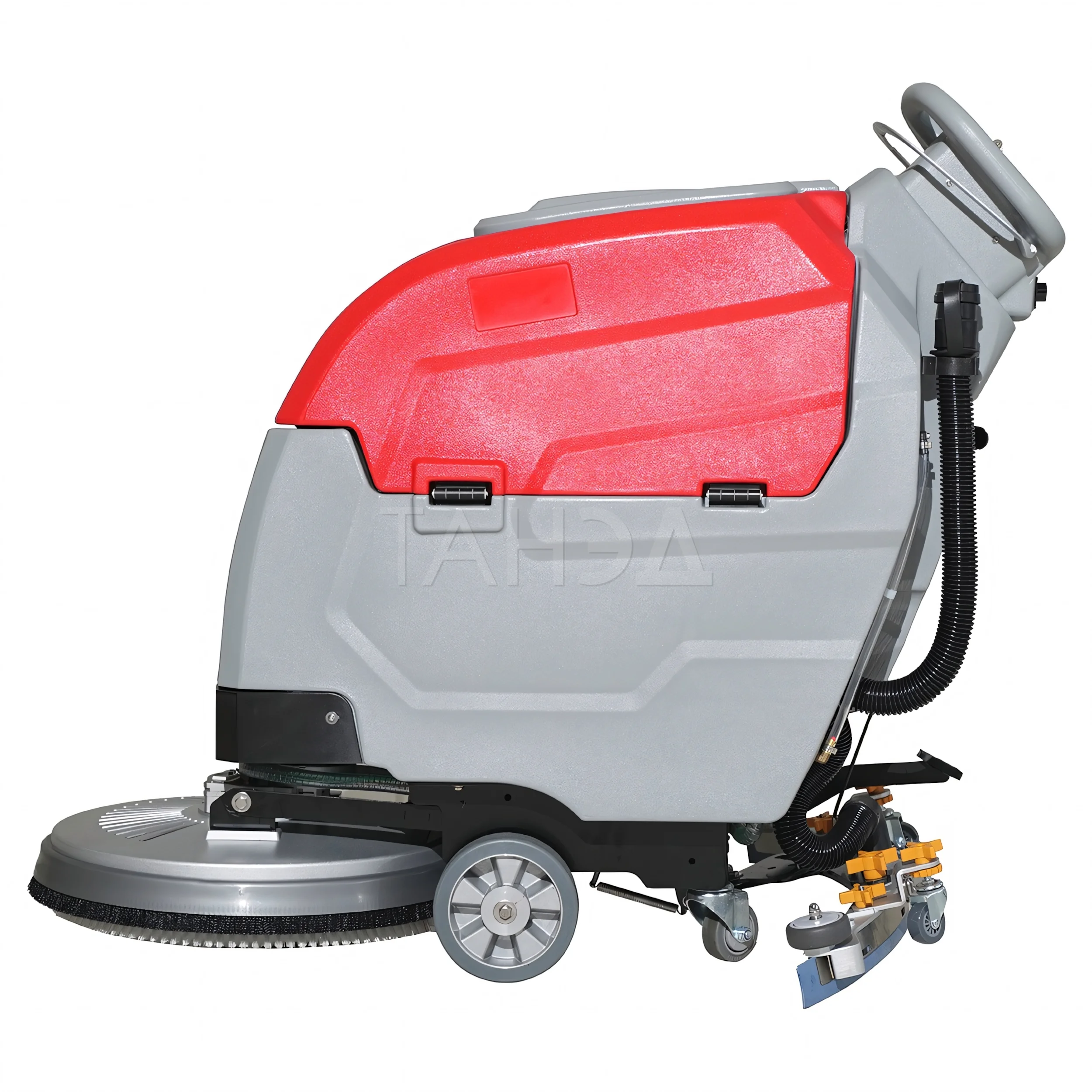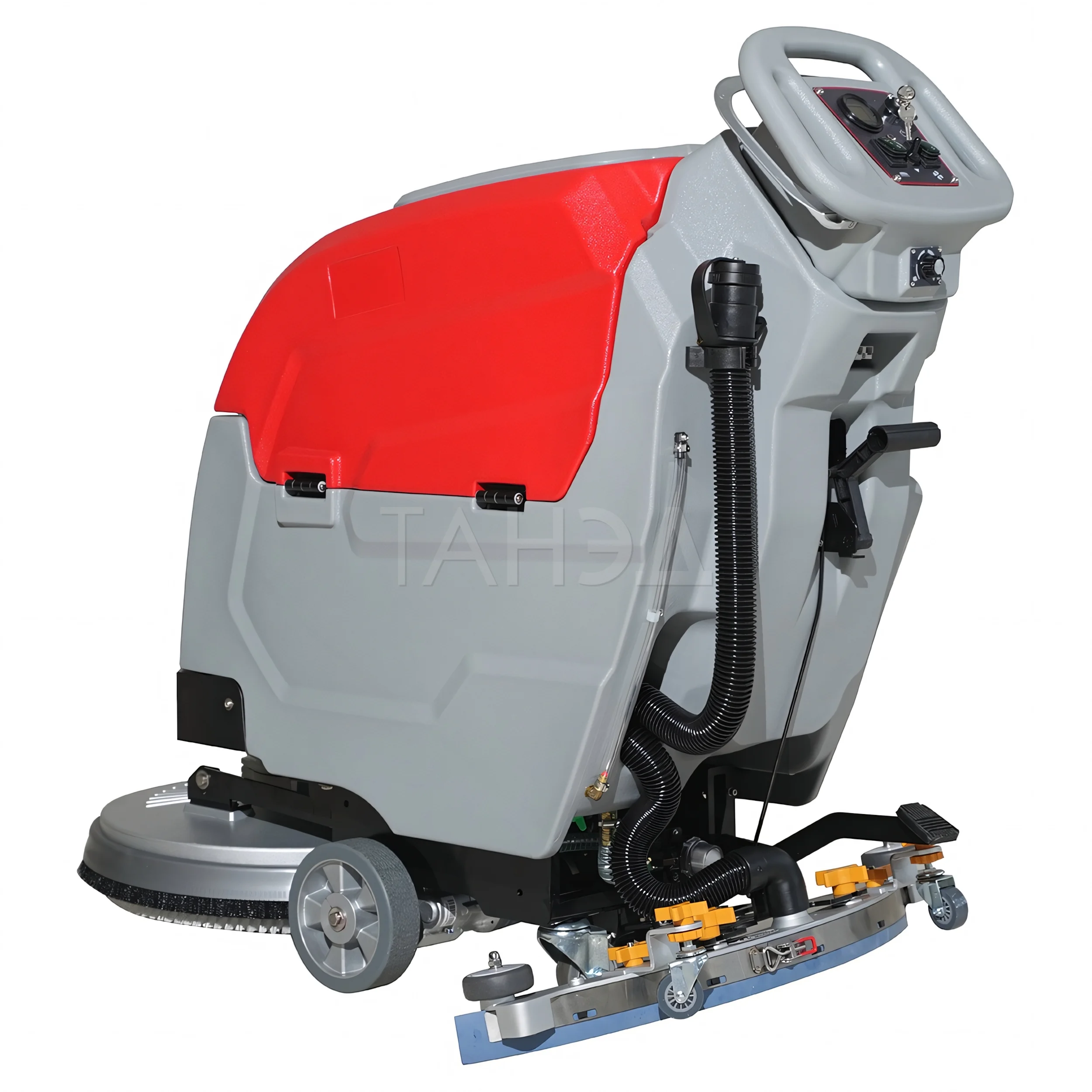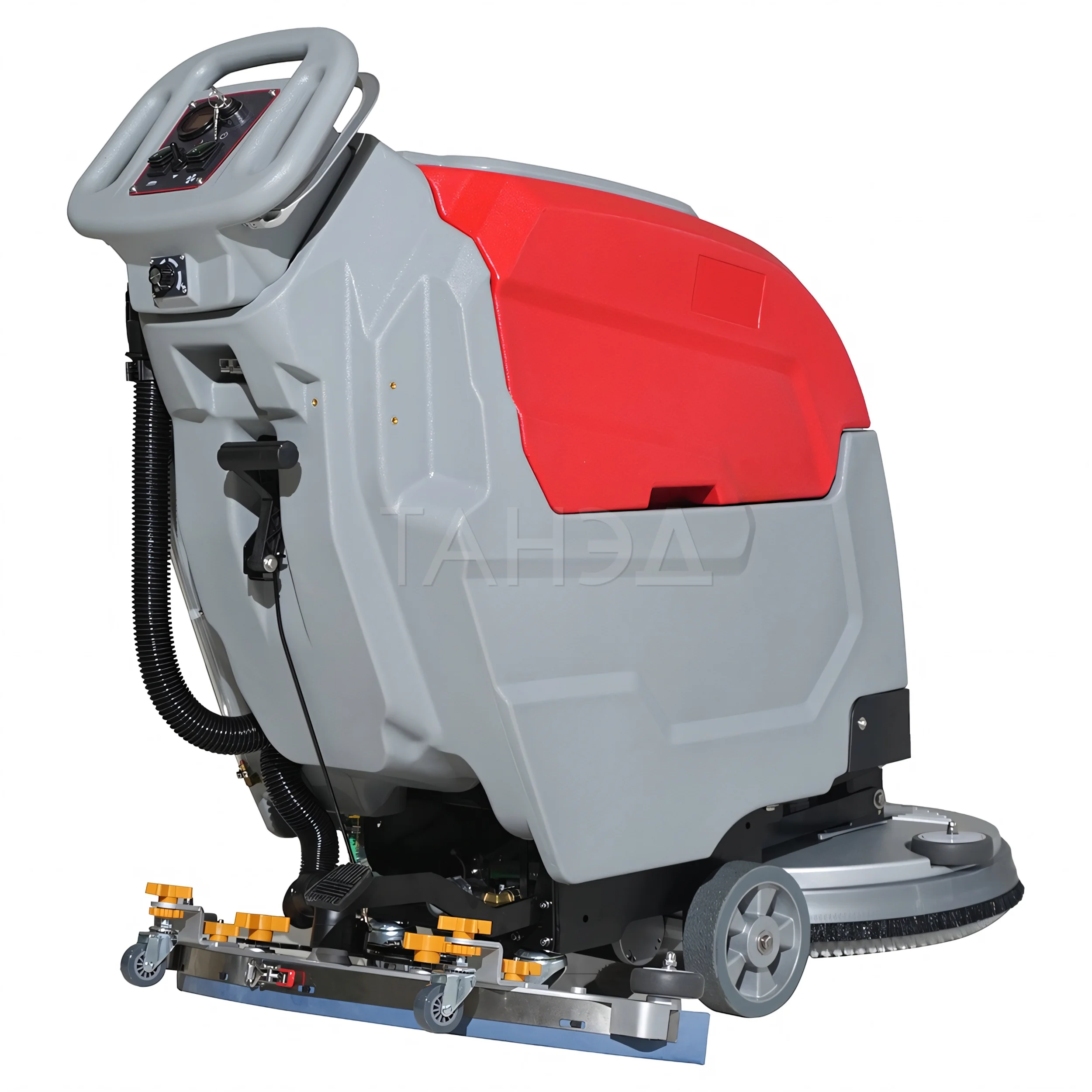 Машины оснащены двумя баками — для чистой и грязной воды. Подача раствора регулируется оператором во время работы. Интенсивность подачи зависит от степени загрязнения и типа покрытия.