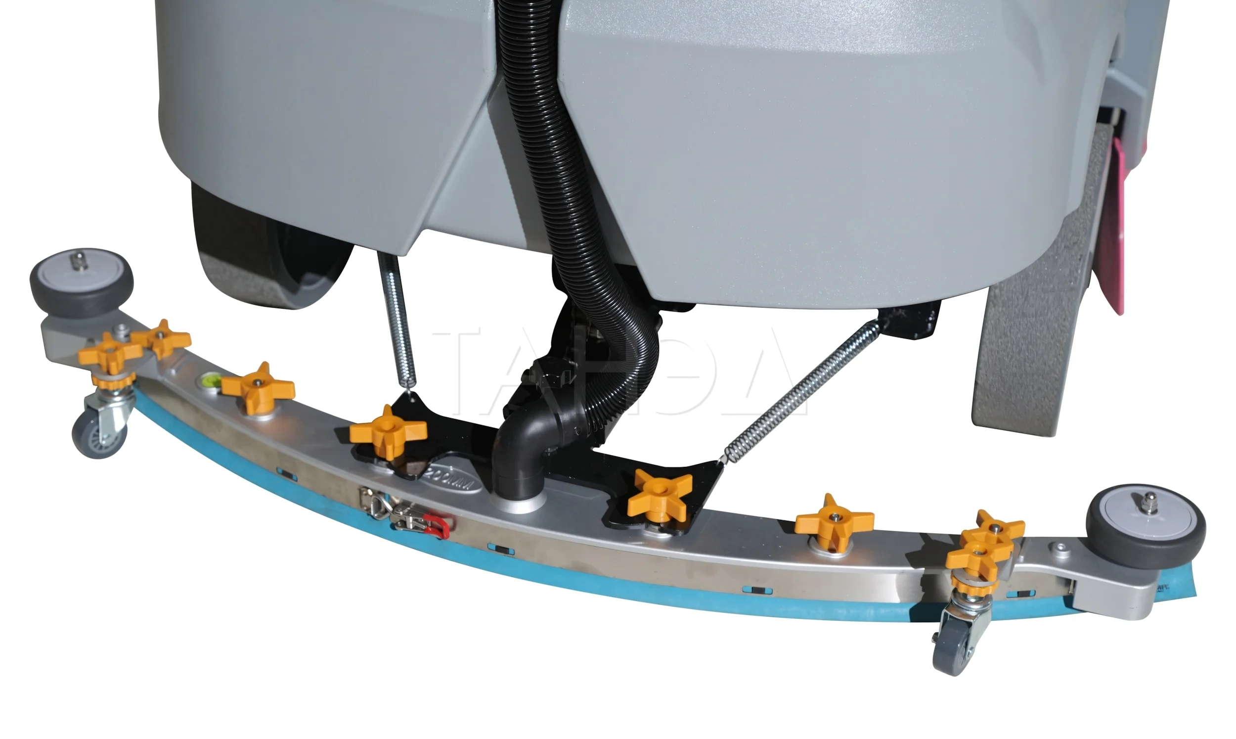 После обработки поверхности жидкость собирается всасывающей системой. Всасывающая балка расположена в задней части оборудования. Резиновые скребки собирают воду и направляют ее в систему всасывания. Жидкость поступает в бак для грязной воды. После заполнения бак очищается через сливной патрубок или шланг.