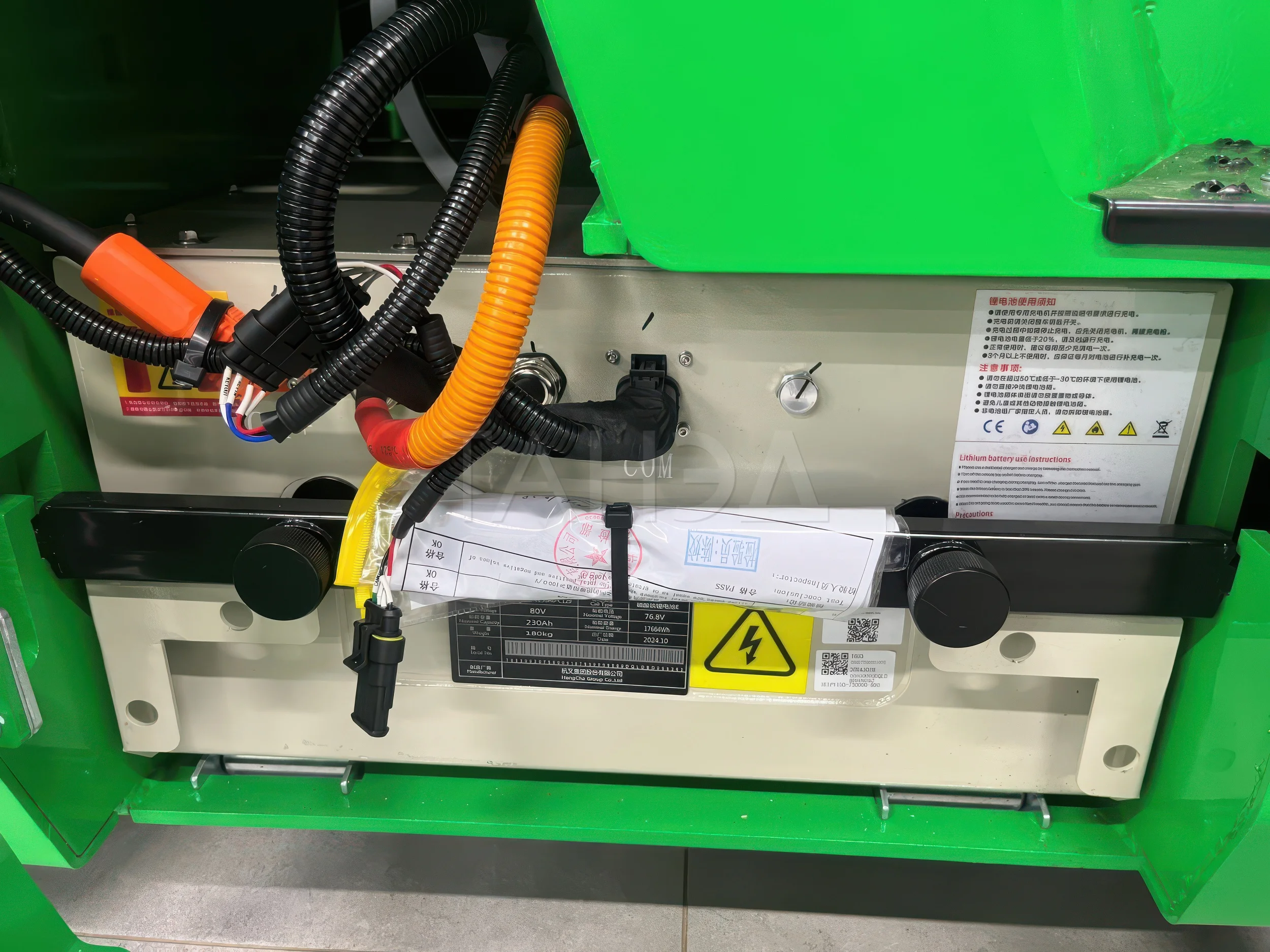 Погрузчики оснащают тяговым электромотором и шестеренчатым гидронасосом, создающим давление в гидросистеме для управления рабочими органами. За питание электродвигателей отвечает литий-ионная аккумуляторная батарея. К достоинствам АКБ Li-Ion относят: