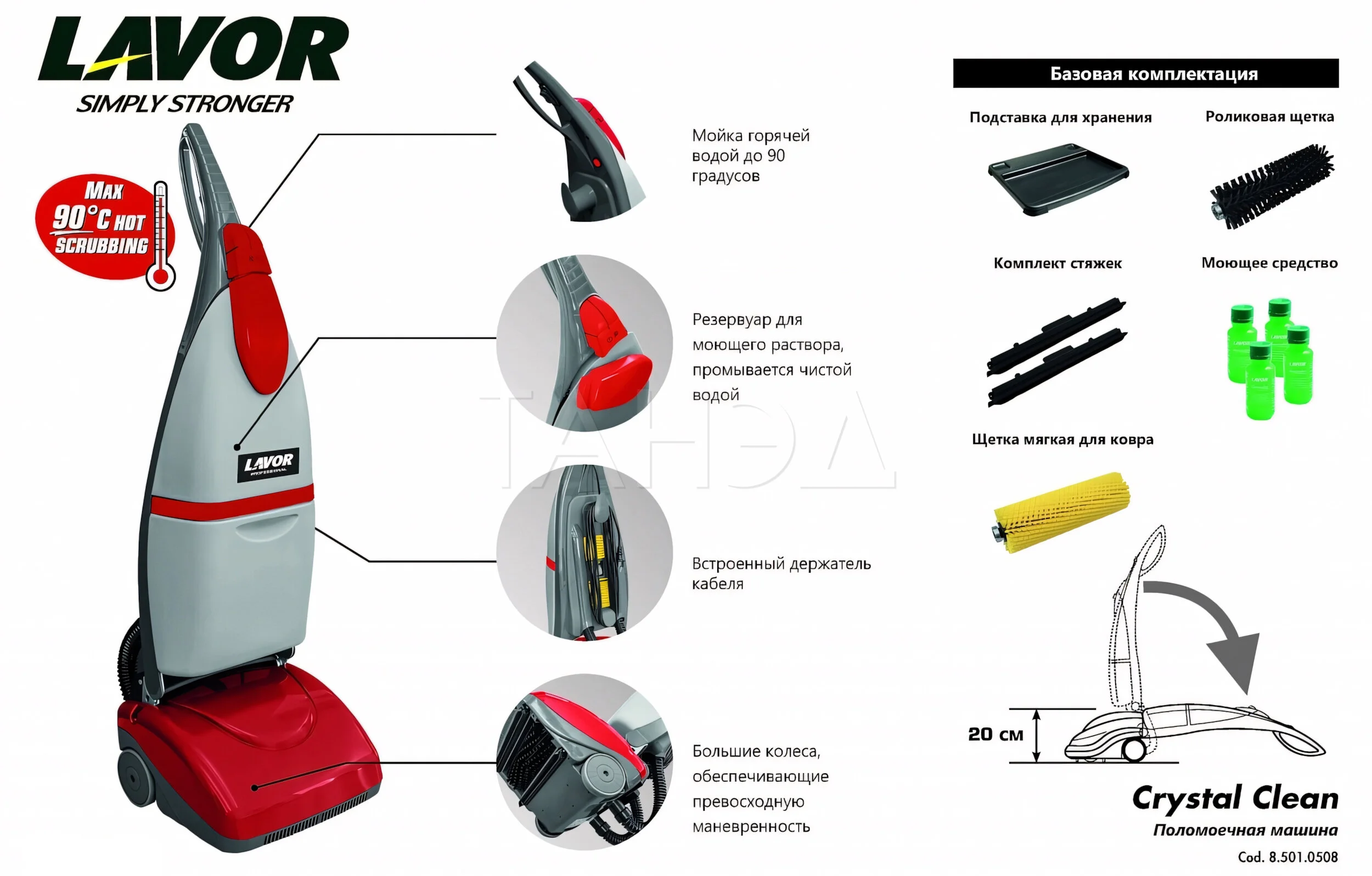 CRYSTAL CLEAN — версия с функцией нагрева воды. Применяется при необходимости удаления загрязнений, требующих повышенной температуры моющего раствора.