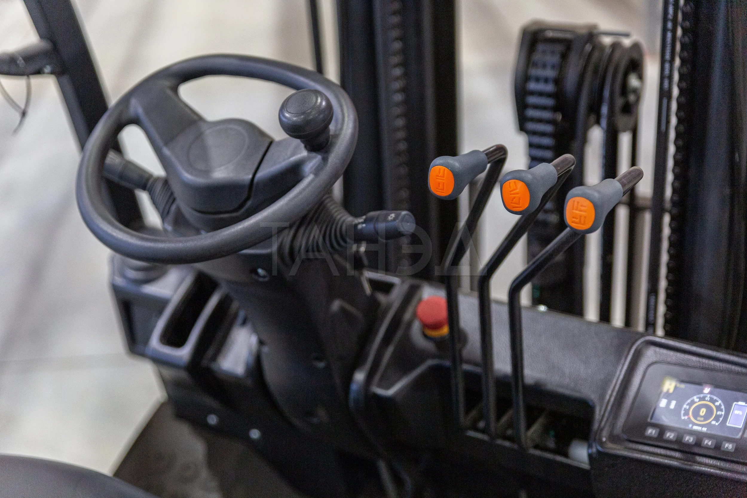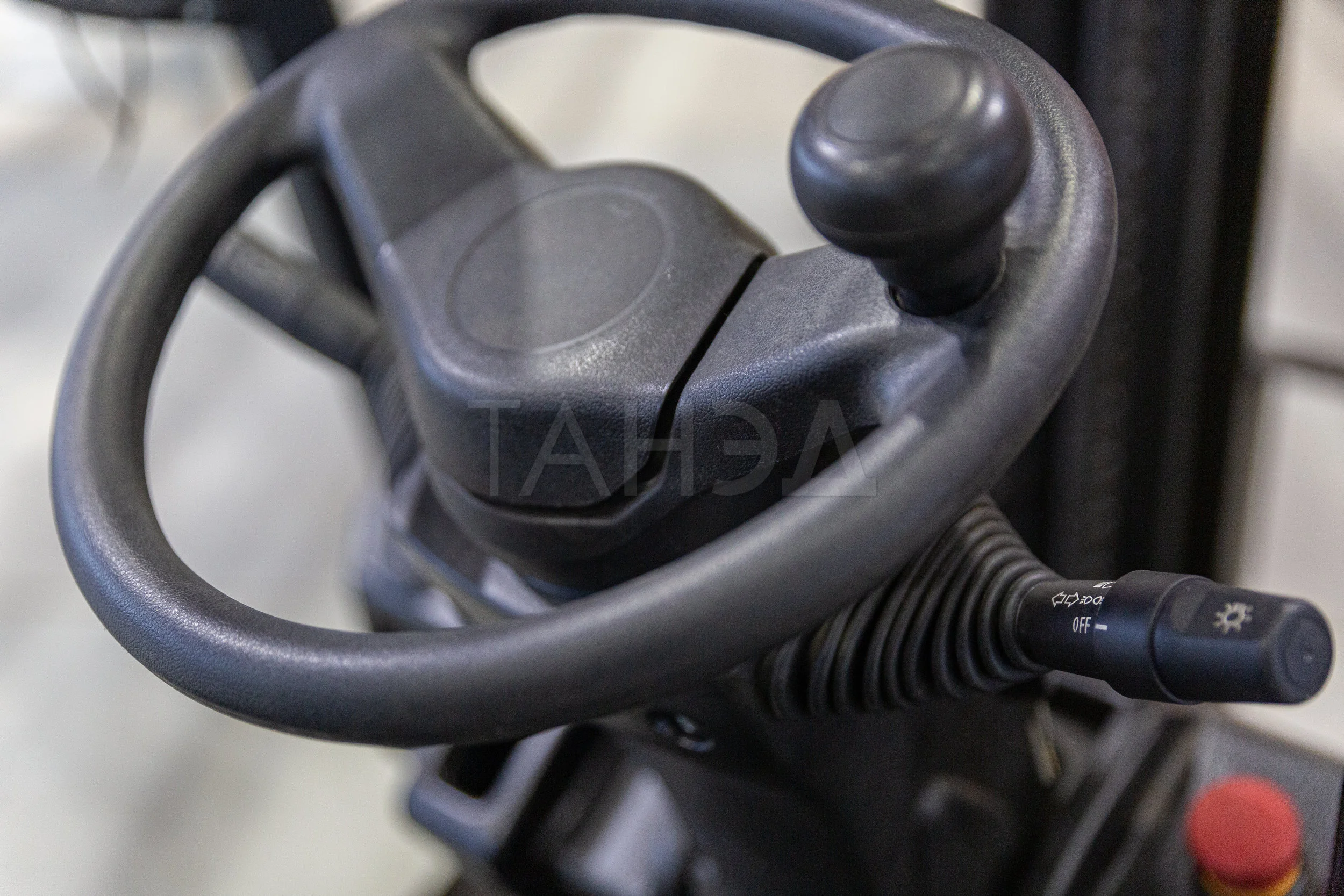 - Эргономика. Просторная кабина с регулируемым сиденьем, интуитивной панелью управления, LED-освещением и зеркалами заднего вида снижает утомляемость оператора. Система обнаружения присутствия и гидроусилитель руля повышают удобство.
