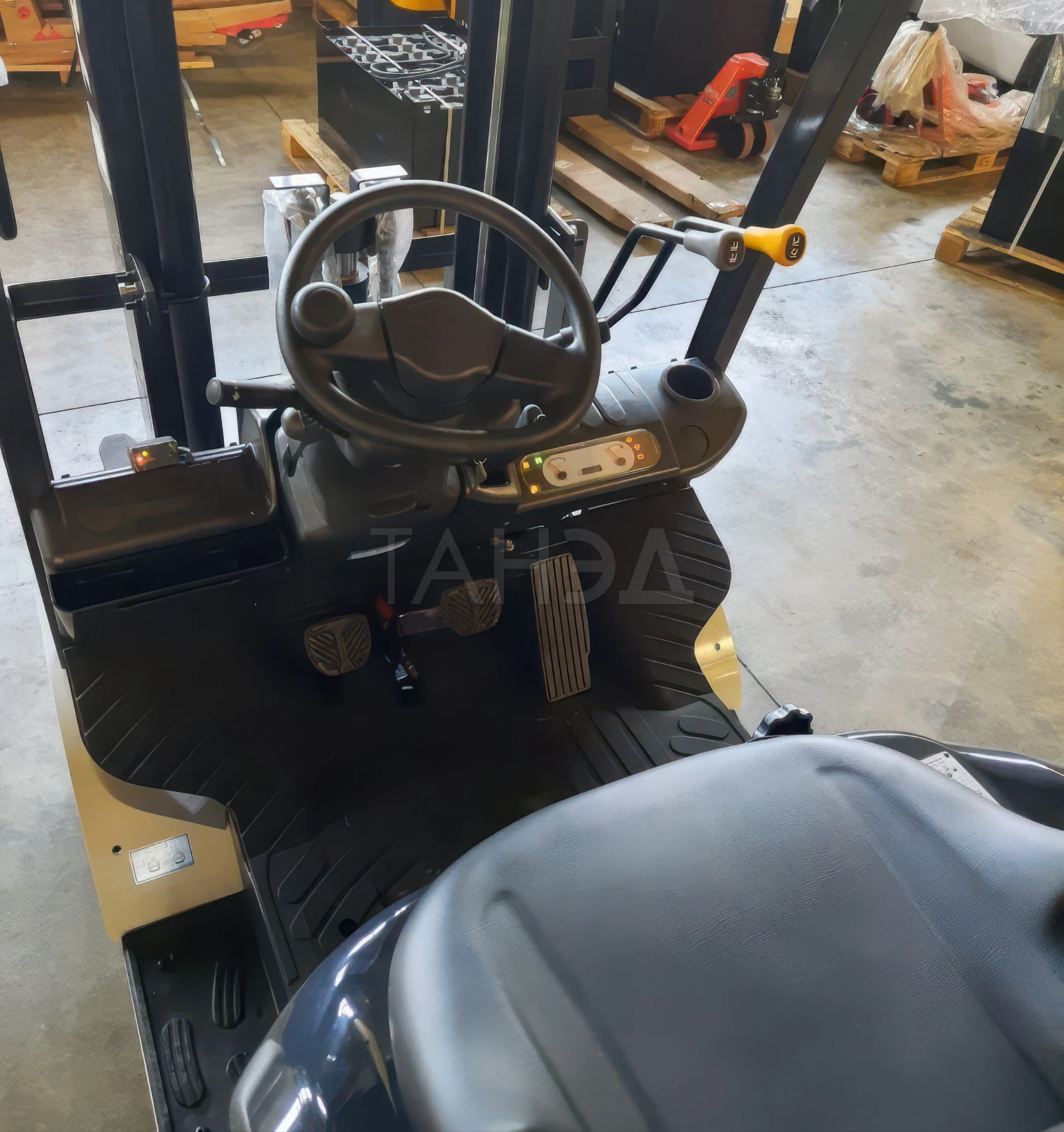 В первую очередь — впечатляющий диапазон грузоподъемности: от 1,5 до 5 тонн как для небольшого склада, так и для крупного производства. Высота подъема вил у стандартных моделей достигает 3 метров, можно выбрать вариант с мачтой, поднимающей груз до 7 метров — для многоуровневых стеллажей.