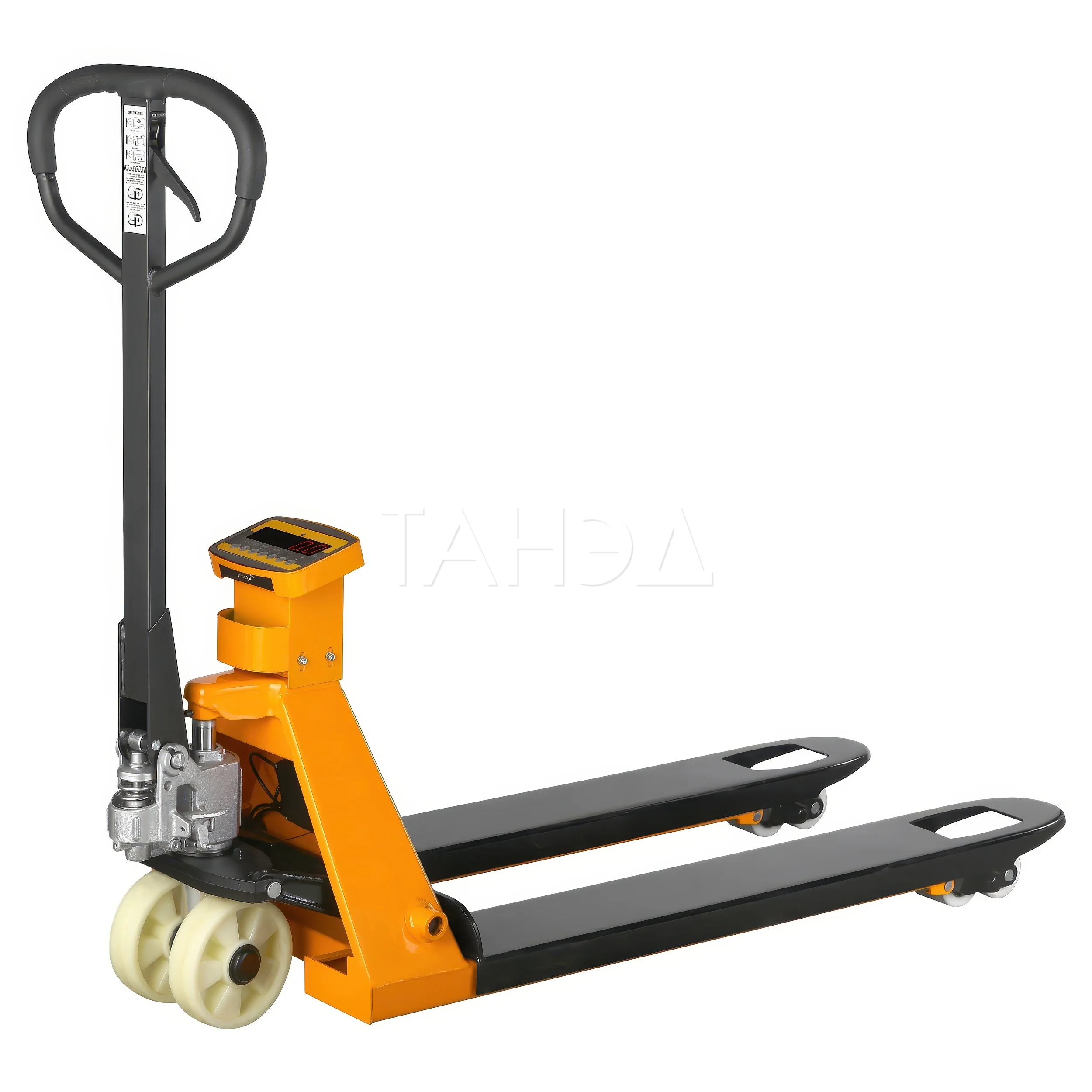 Грузоподъемность гидравлической тележки TOR AC-CW2 (G) (PU) – 3000 кг. Длина вил составляет 1150 мм. Модель оснащена встроенными весами для взвешивания груза.