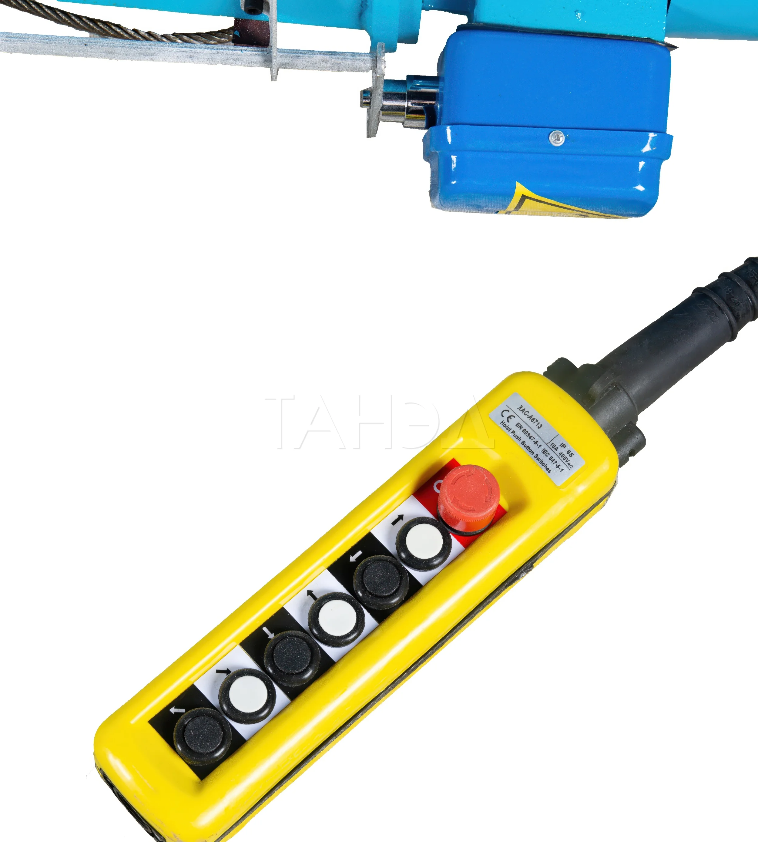 - Улучшенная безопасность. Тали оснащены 6-кнопочным пультом с аварийной кнопкой на безопасном напряжении (24 В, 36 В или 42 В). Регулируемый концевой выключатель предотвращает превышение пределов подъема, обеспечивая точность и безопасность.