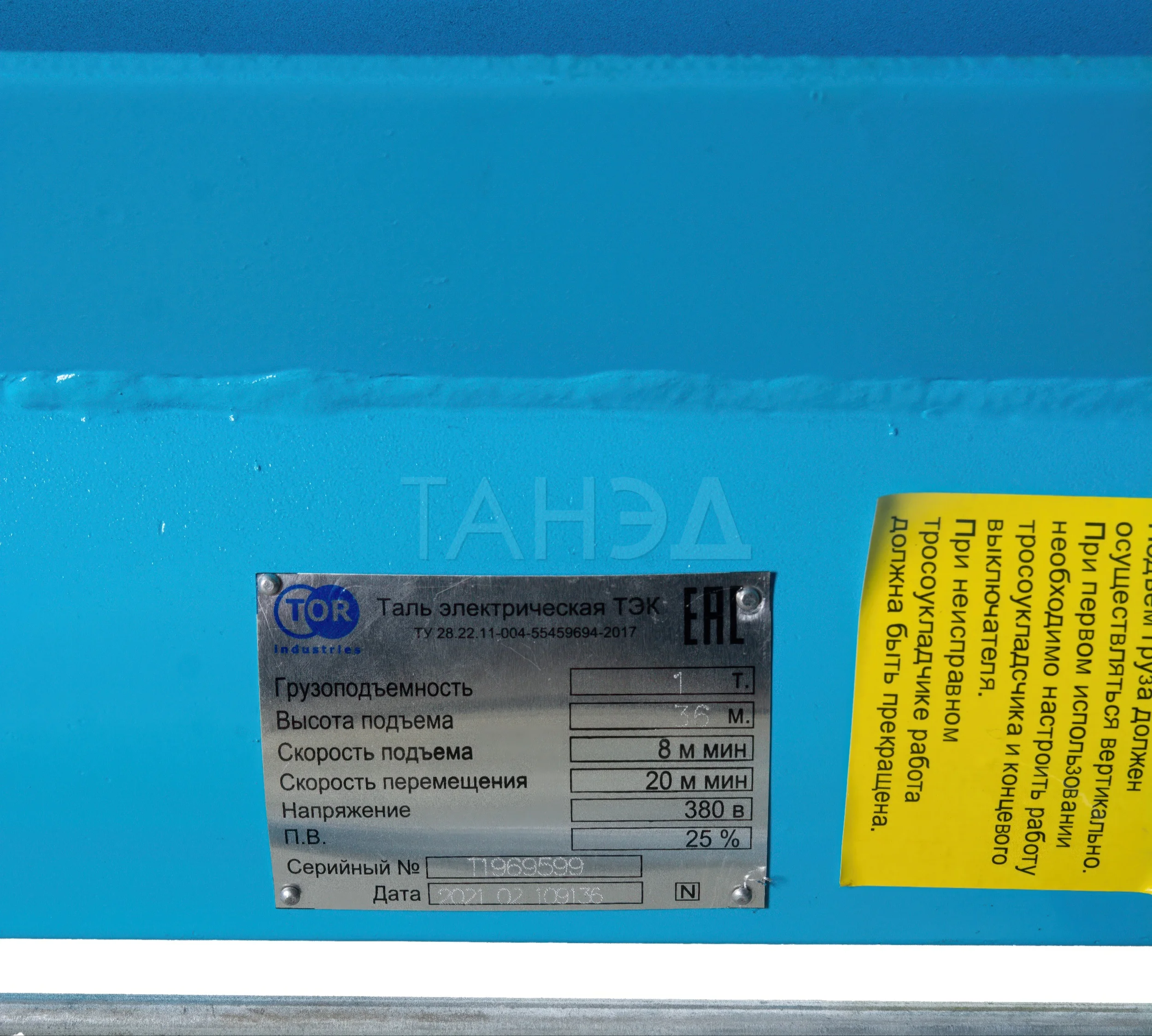 TOR ТЭК CD PRO 2 т, 24 м, 380 В. Таль PRO на 2 т с подъемом 24 м. Передвижная, с усиленным корпусом, для высоких складов, с прочным канатом и точным управлением.