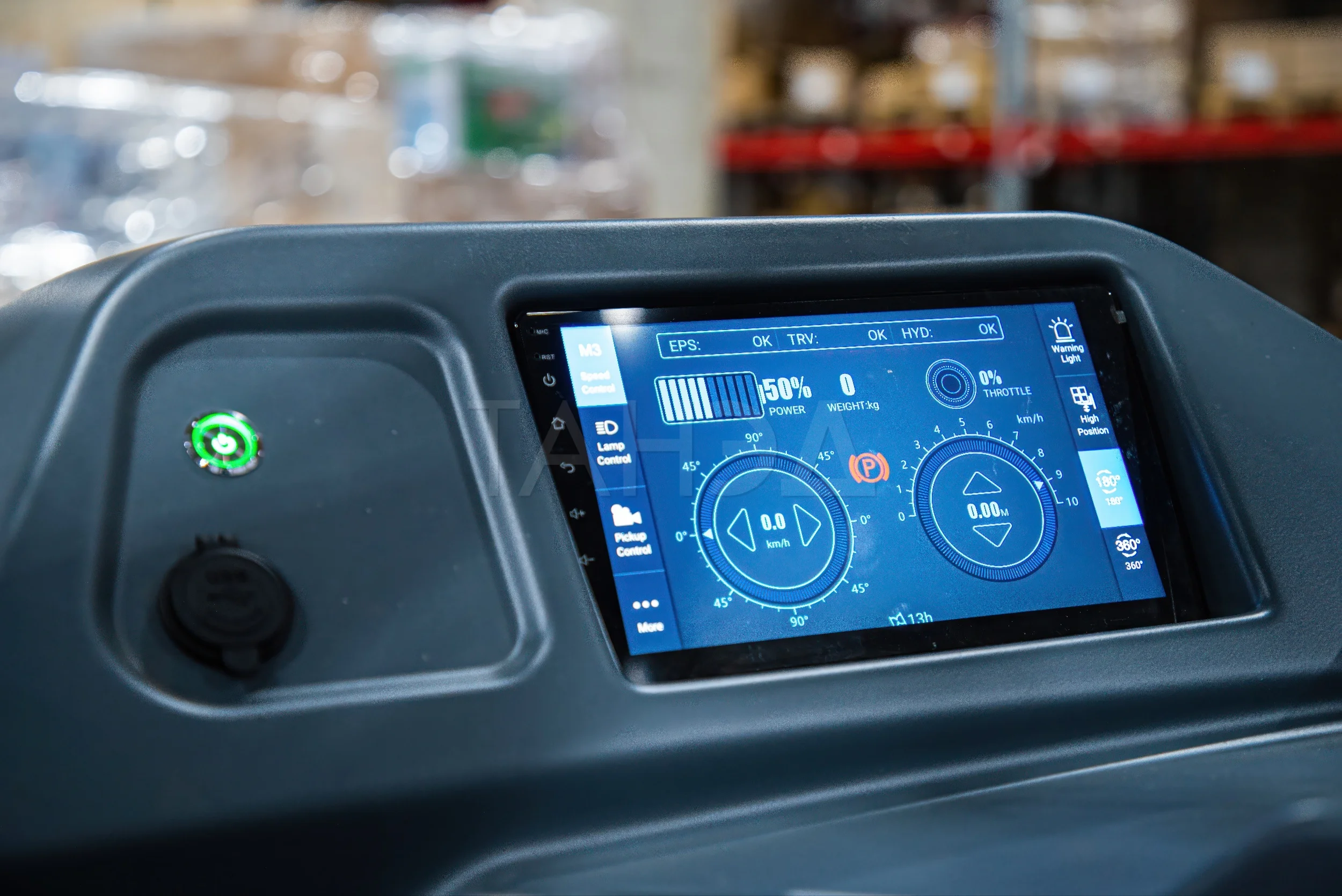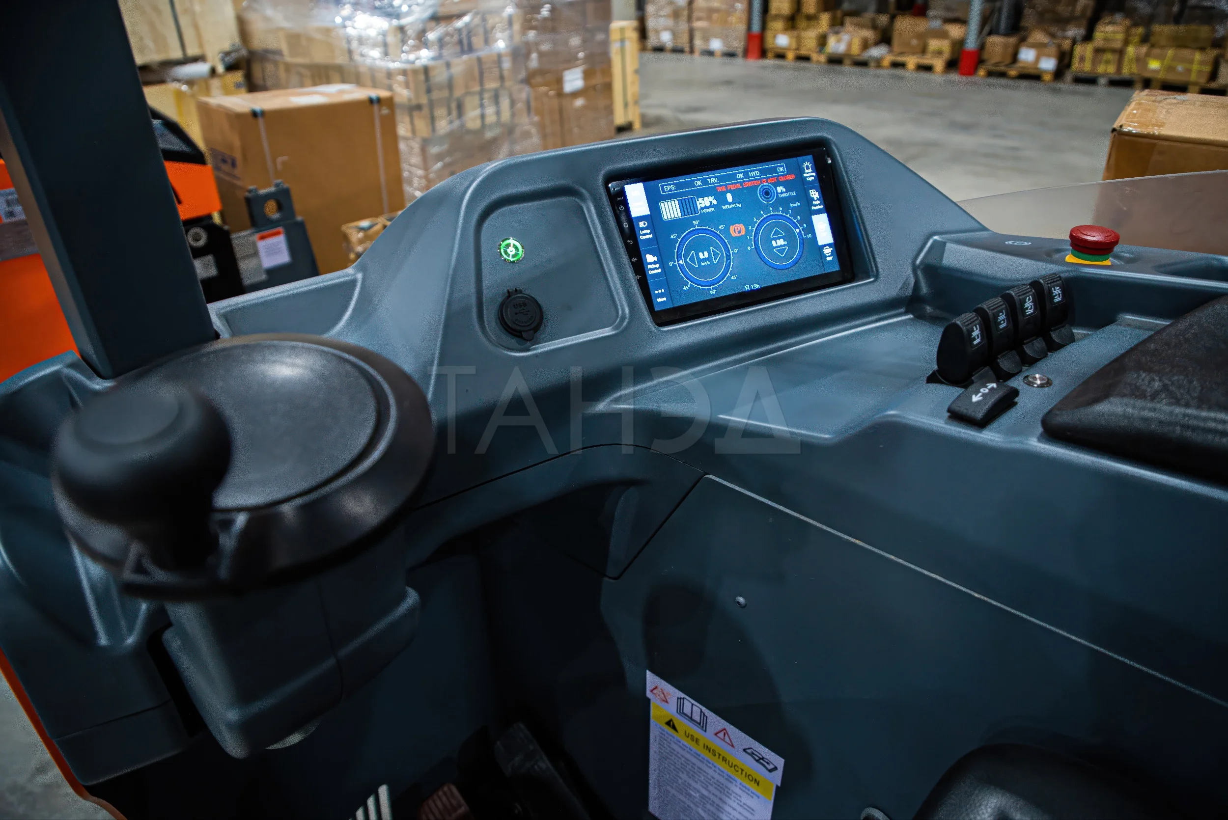 У кабины эффективная амортизация, с обеих сторон предусмотрены поручни. Сиденье, спинка, рулевое управление регулируются для комфорта оператора. В кабине установлен сенсорный многофункциональный дисплей, продумана эргономика органов управления. К основным агрегатам обеспечен быстрый доступ, на замену батареи тратится минимум времени.