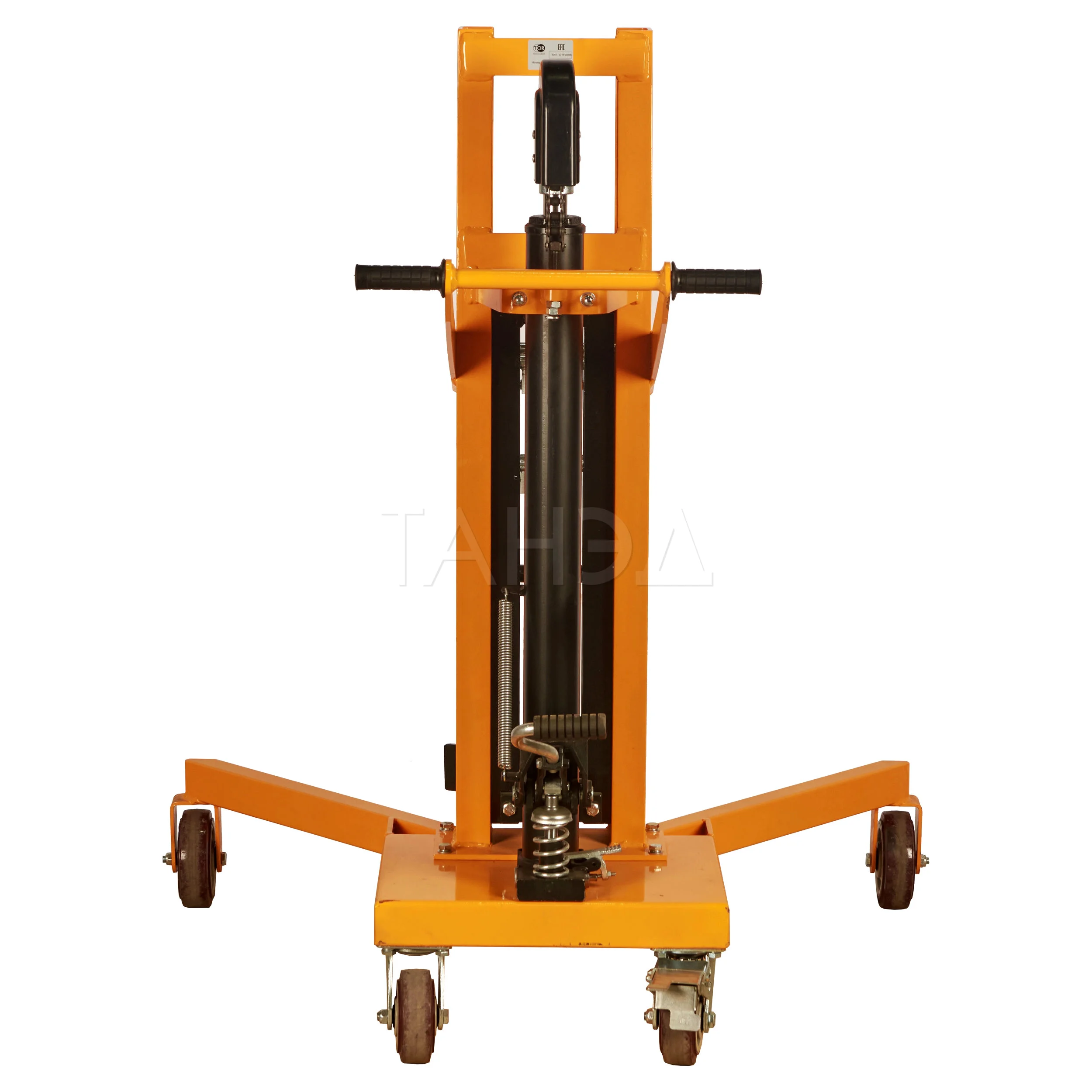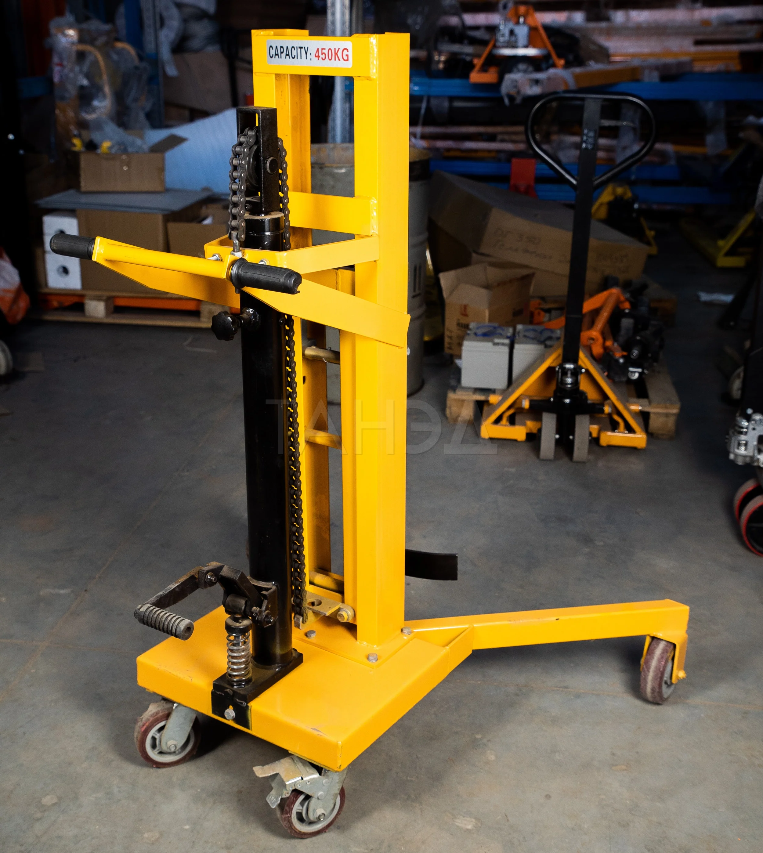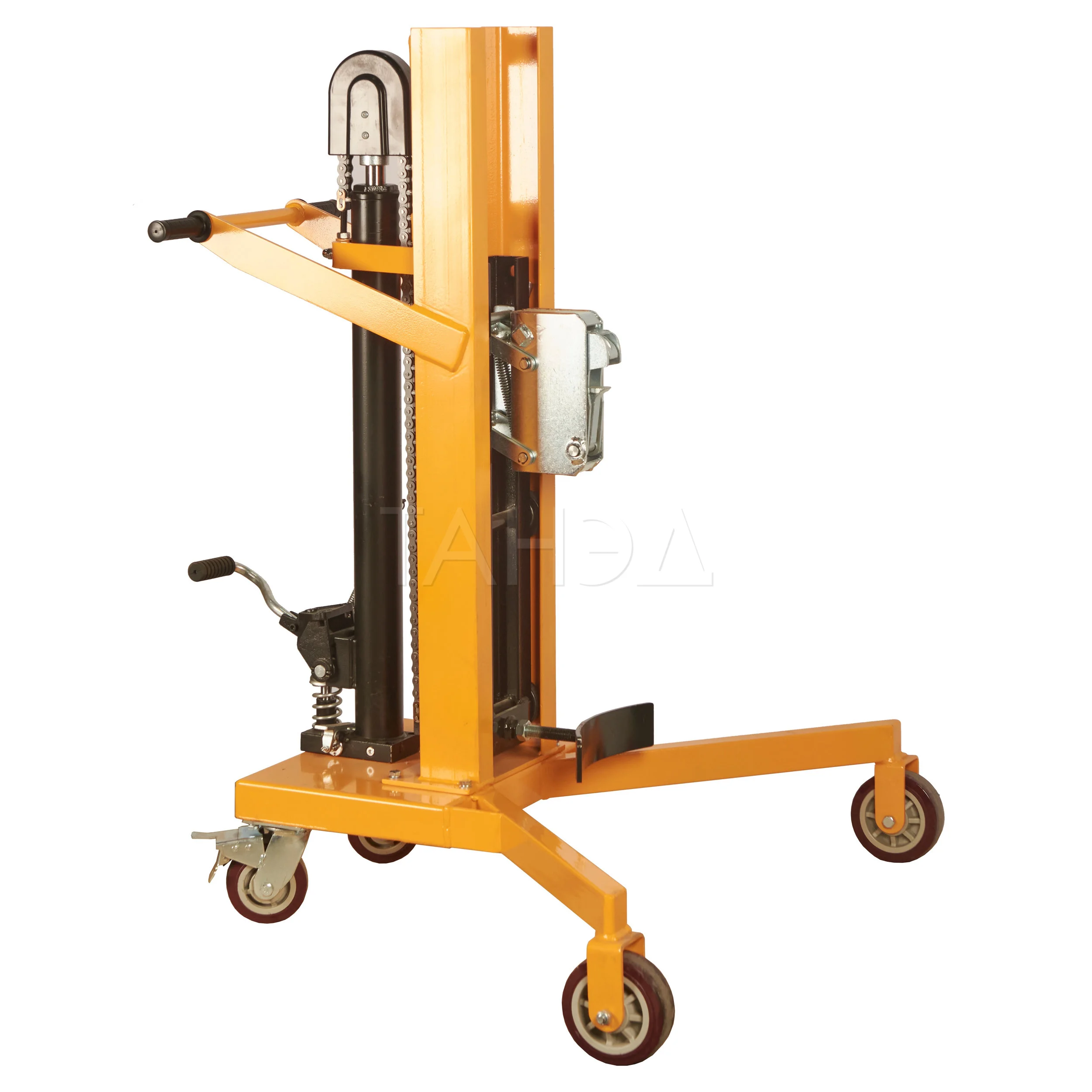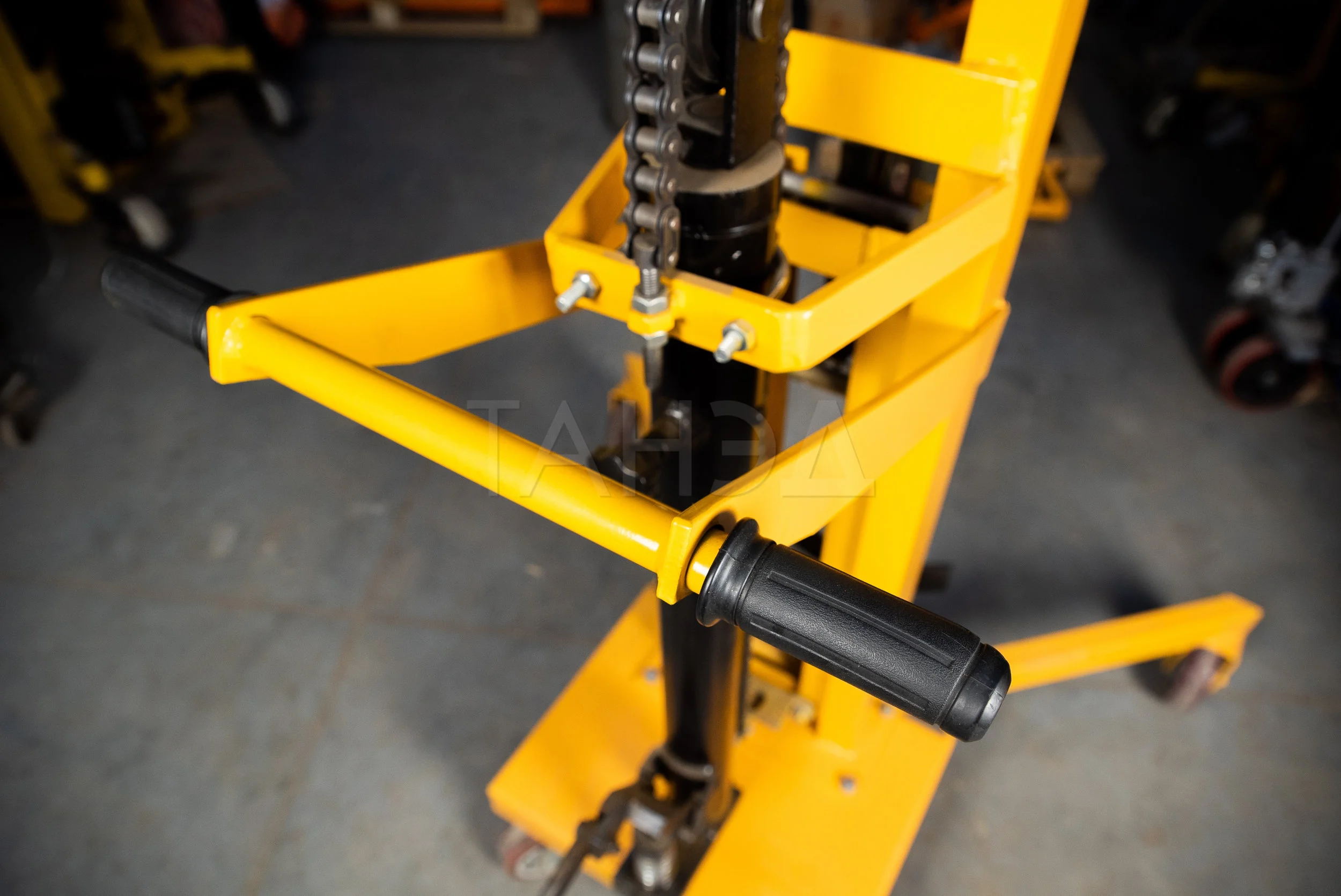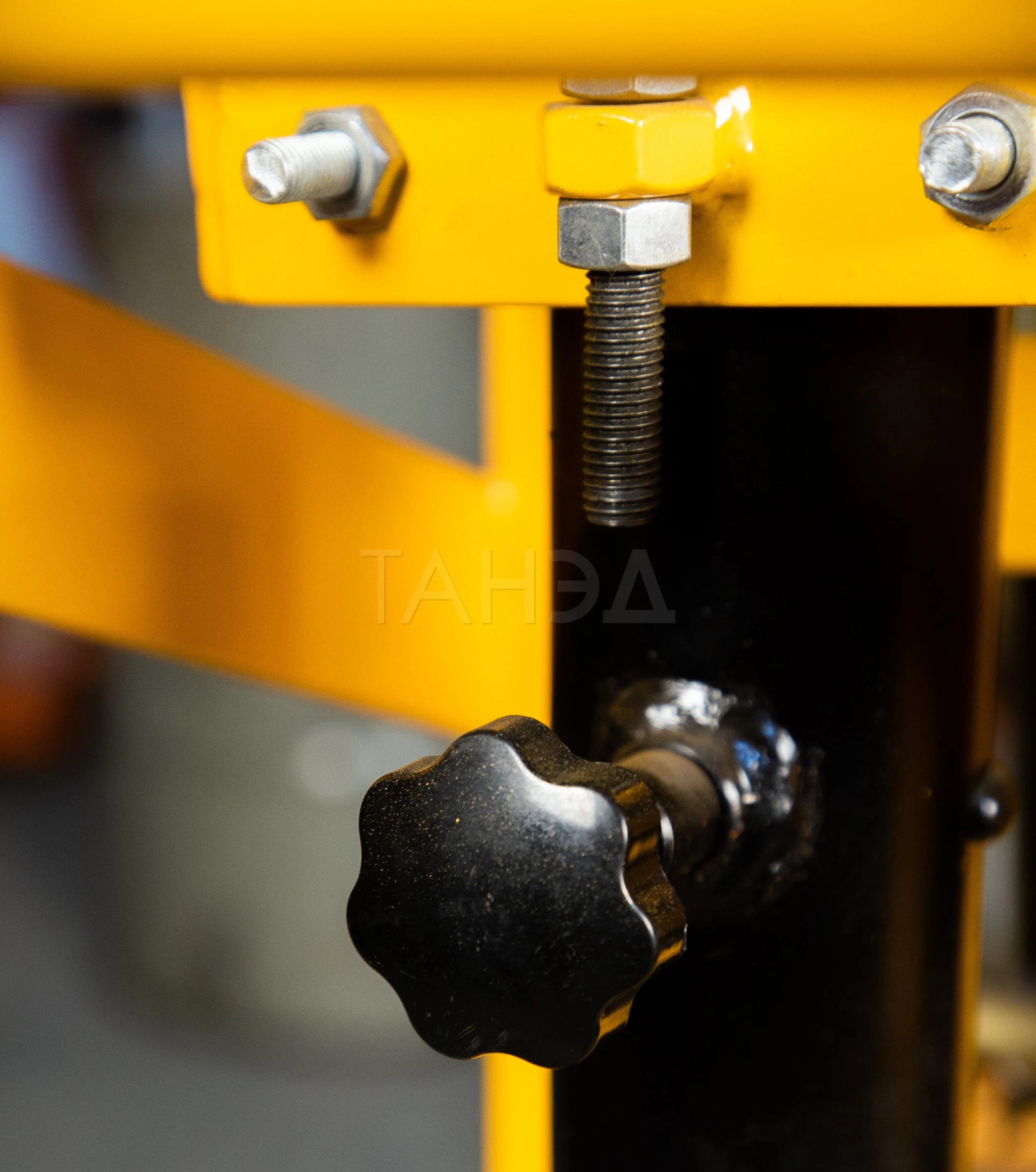Систему подъема. У моделей DT, DTF есть гидравлический подъемник. Он поднимает цилиндрическую емкость на высоту 600-1120 мм (в зависимости от модели), что упрощает слив содержимого или установку емкости на оборудование.