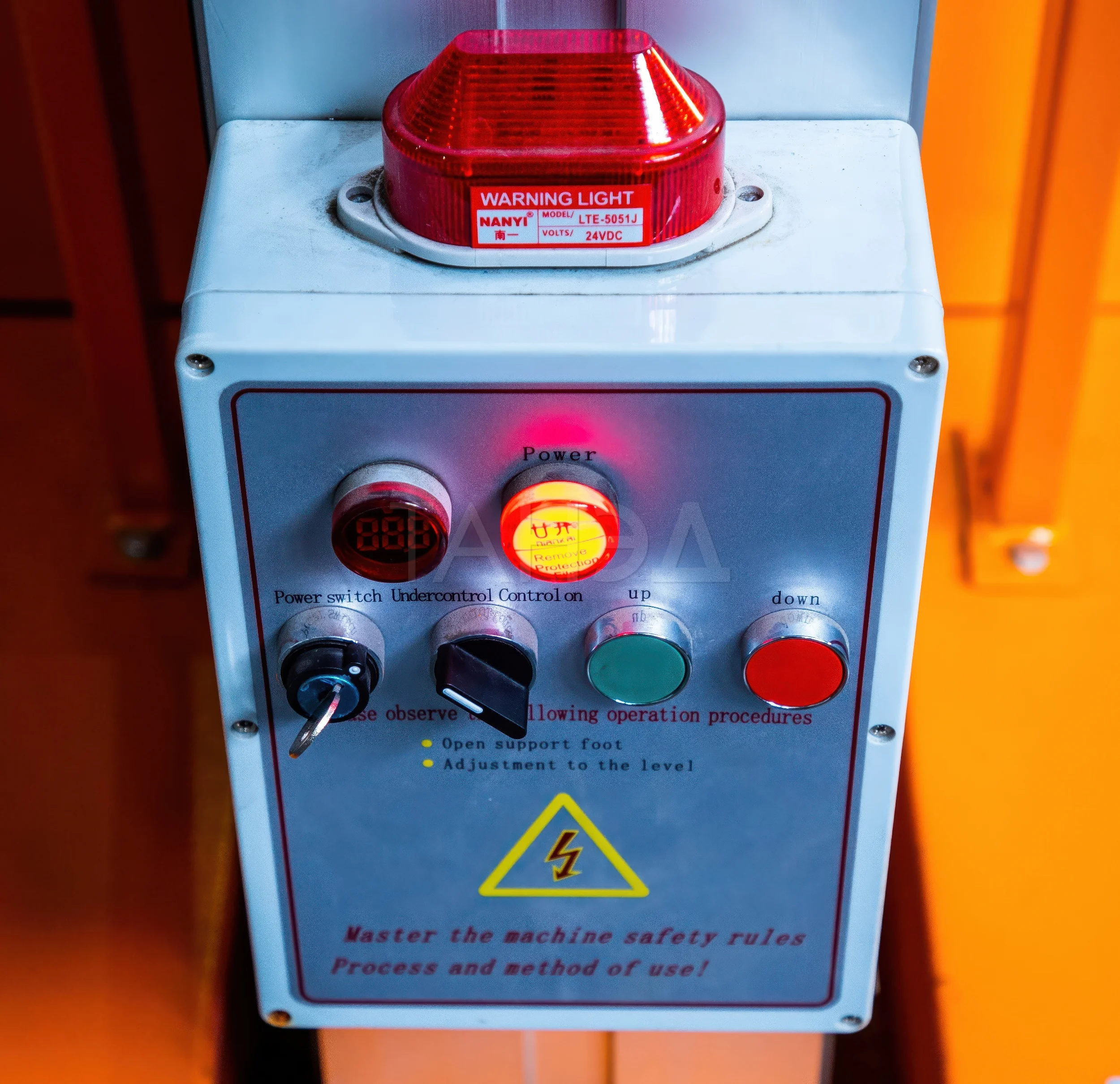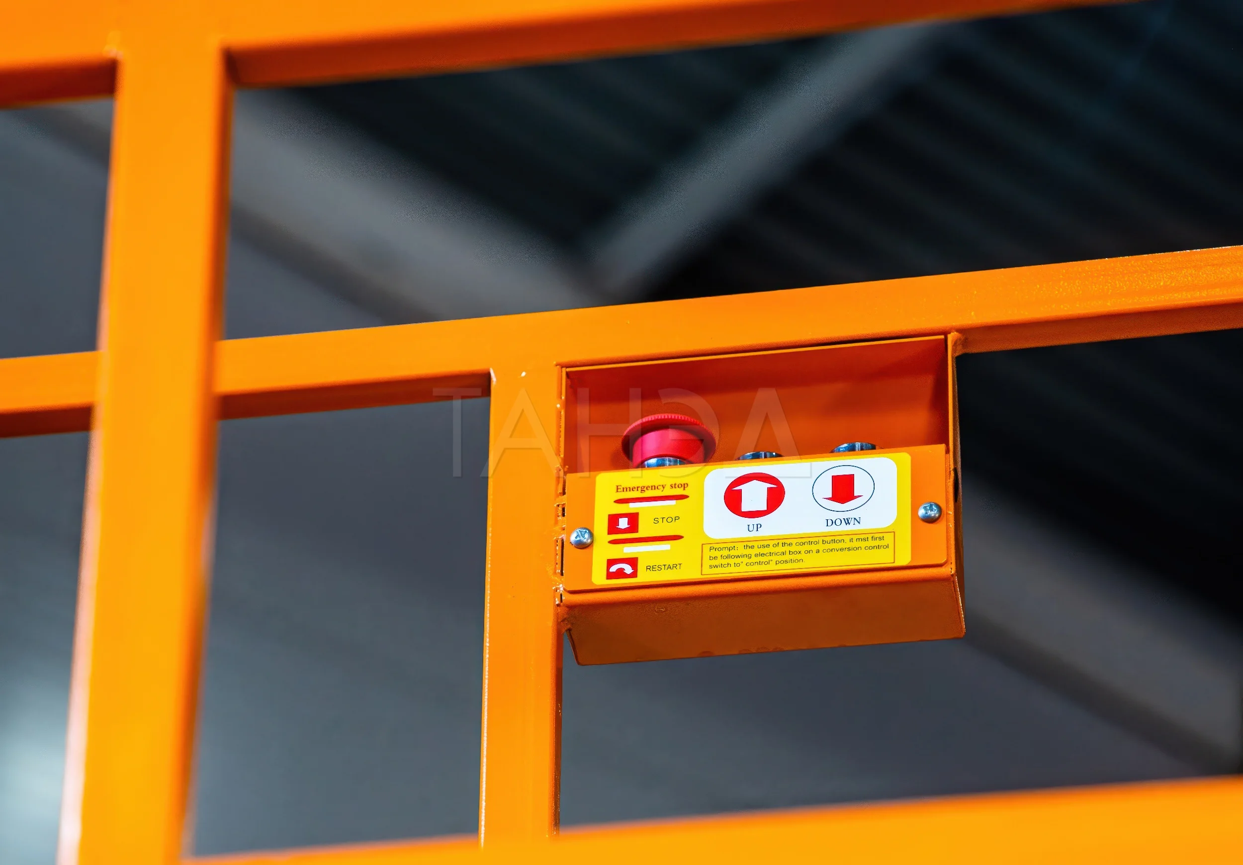- безопасность – предусмотрено защитное ограждение площадки, выносные опоры обеспечивают устойчивое положение, есть ограничитель перегрузки и аварийная кнопка;