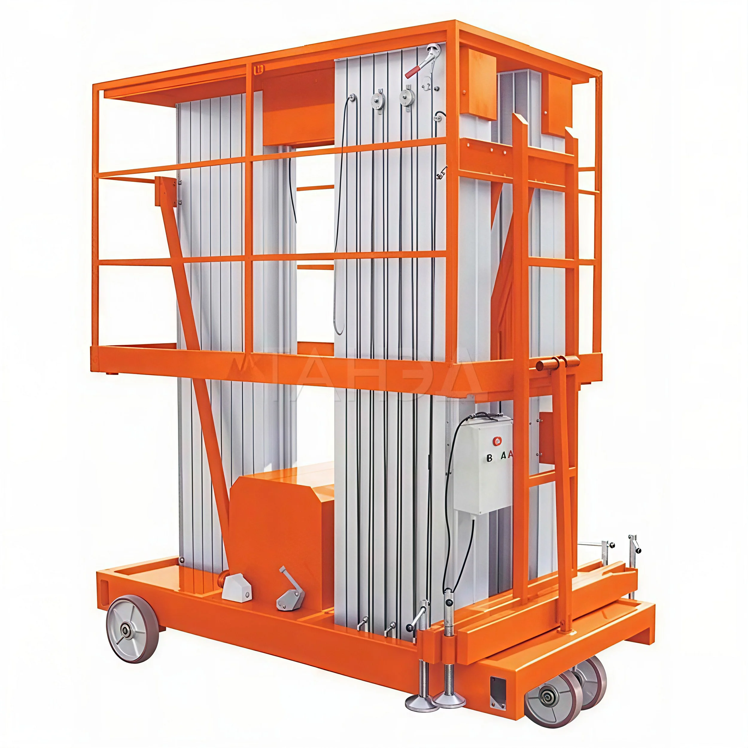 - безопасность – предусмотрено защитное ограждение площадки, выносные опоры обеспечивают устойчивое положение, есть ограничитель перегрузки и аварийная кнопка;