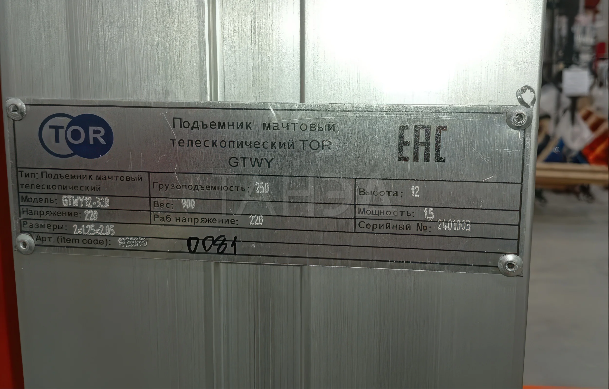 Доставка товара "Трехмачтовый телескопический подъемник TOR GTWY14-320 DC, 0.25 т, 14 м (G)"