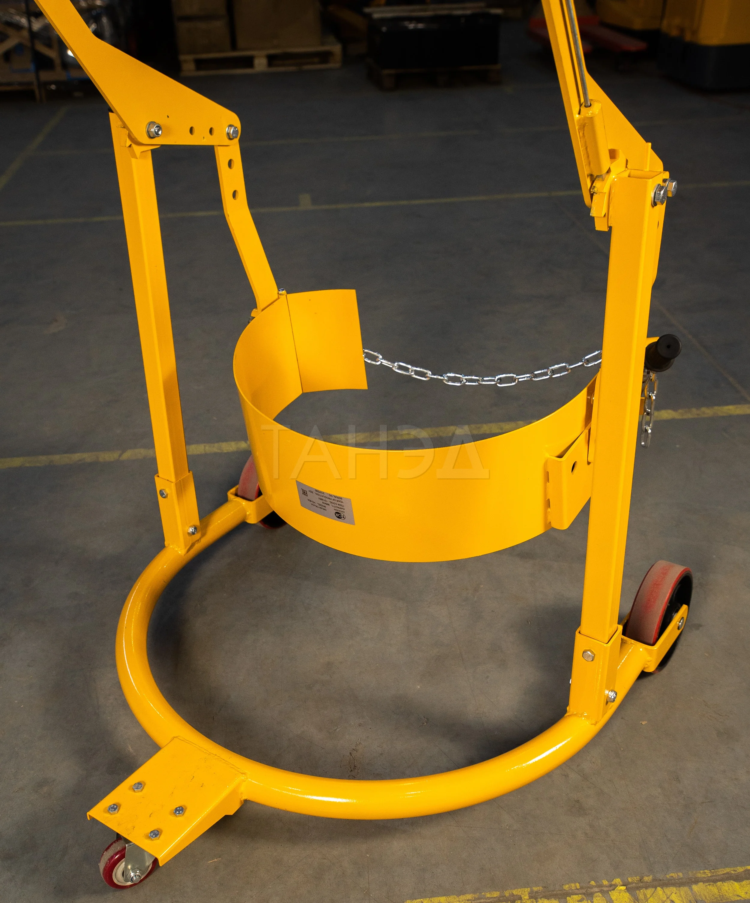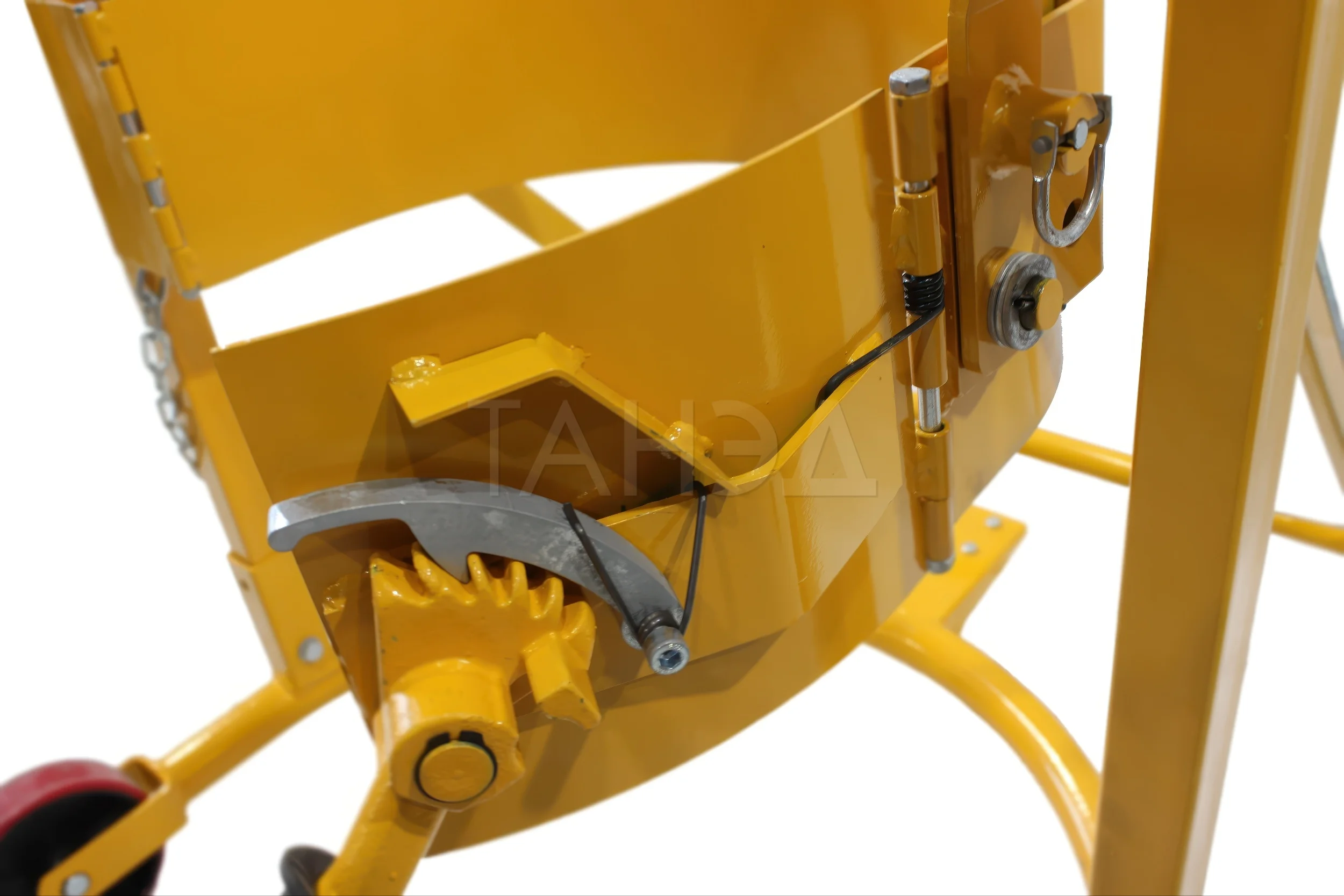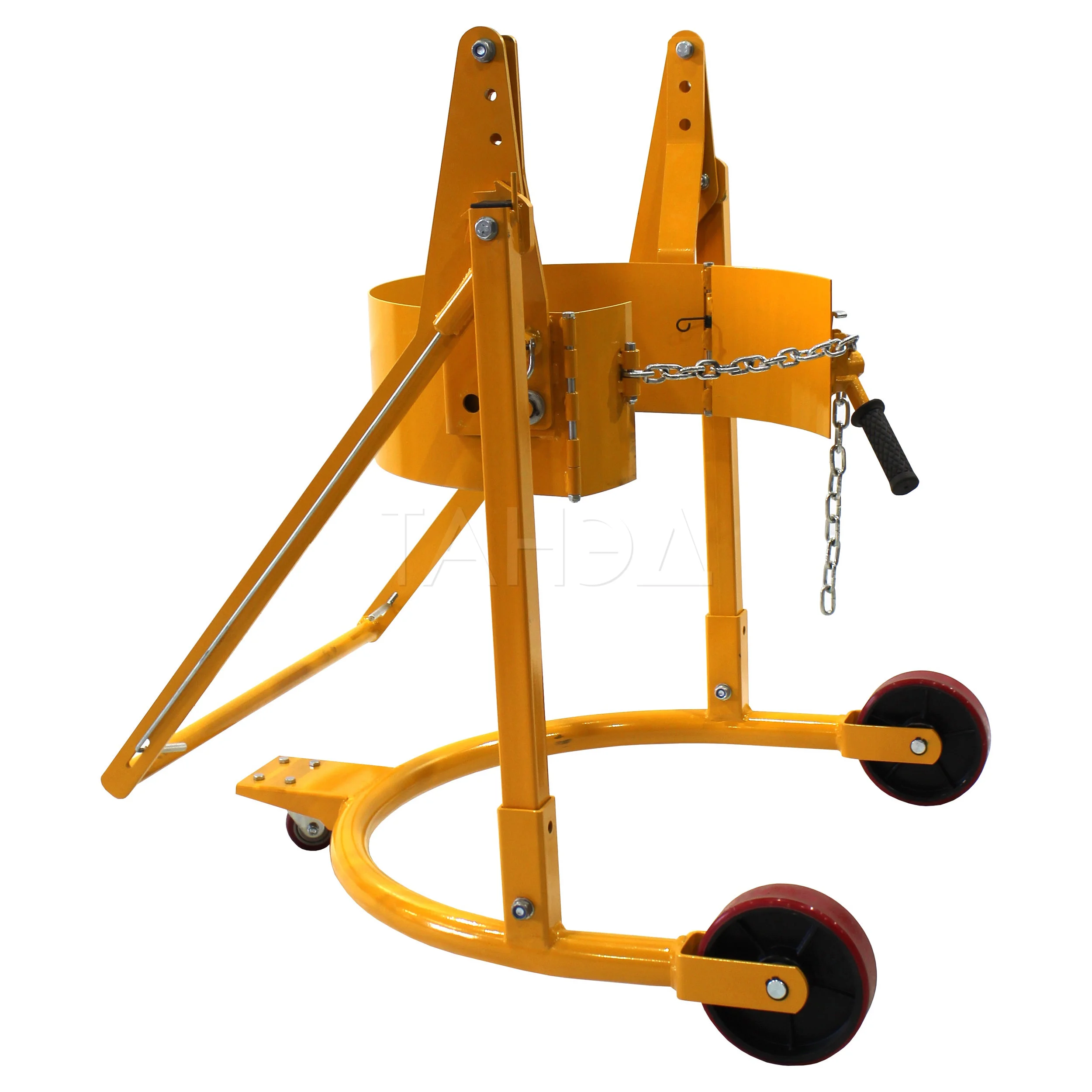 Систему подъема. У моделей DT, DTF есть гидравлический подъемник. Он поднимает цилиндрическую емкость на высоту 600-1120 мм (в зависимости от модели), что упрощает слив содержимого или установку емкости на оборудование.