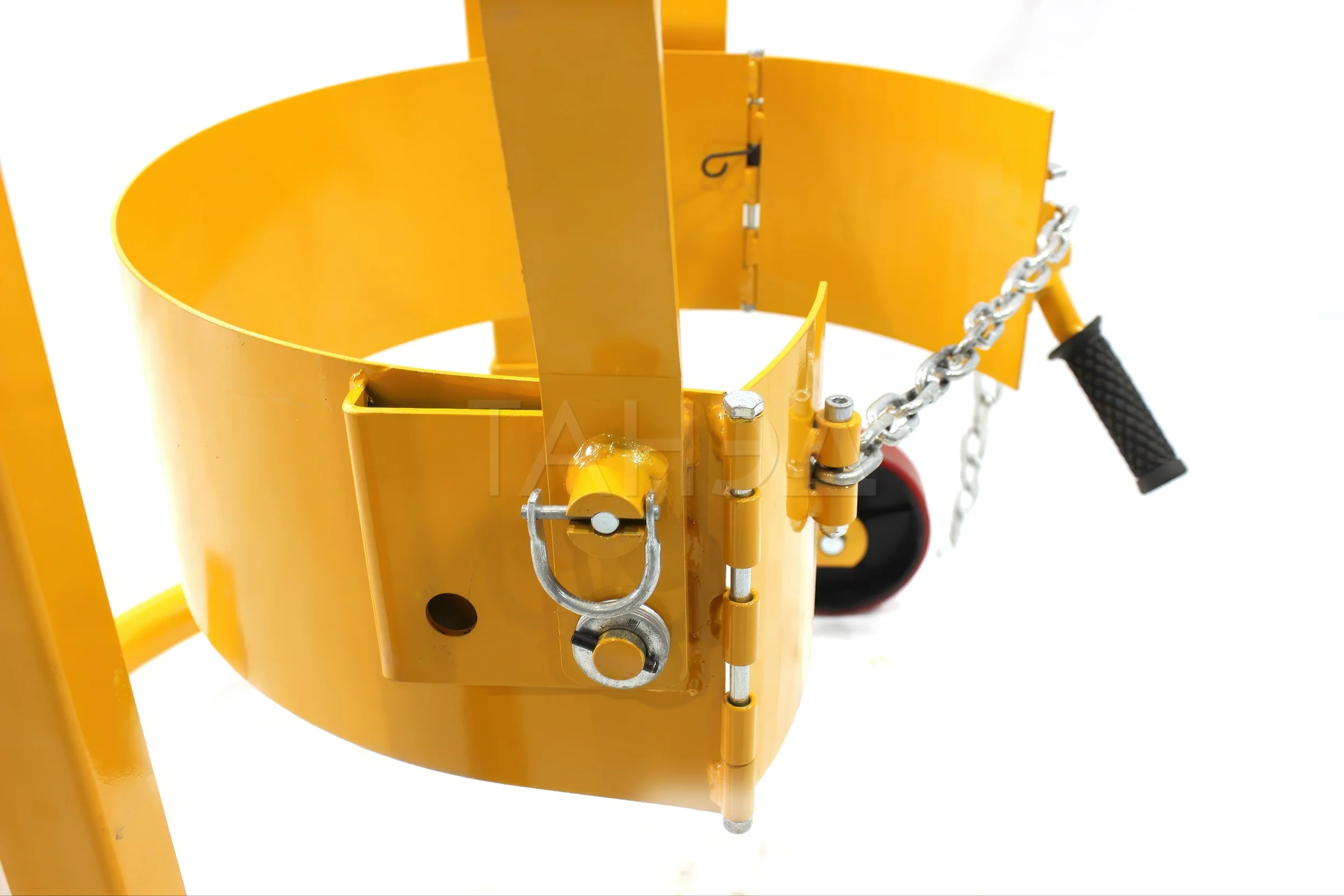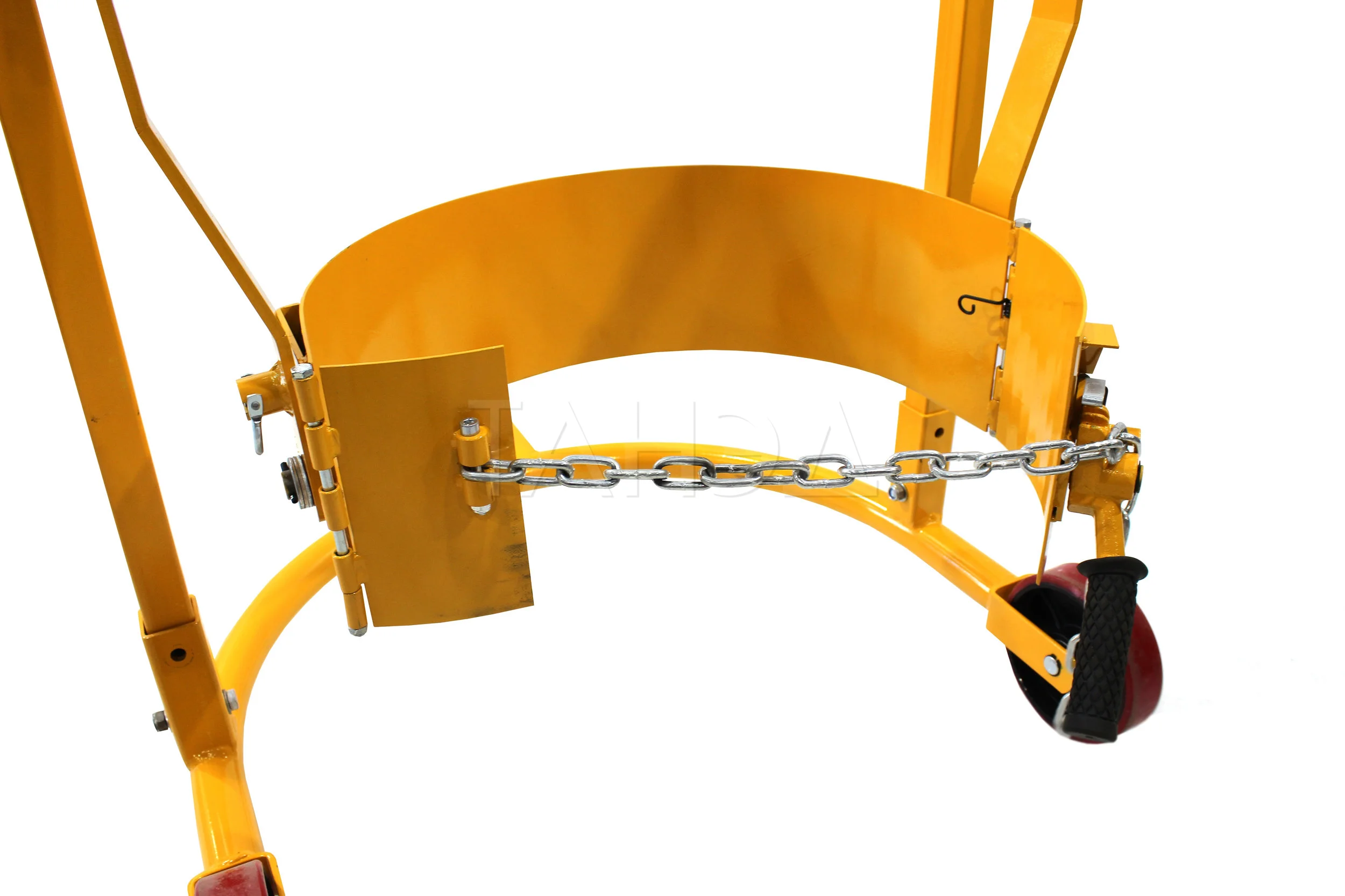 - у моделей КБ-2, HD-80A фиксация опоясывающая – бочку по окружности обхватывает специальная рама или цепь, что позволяет перевозить емкости по наклонным поверхностям.