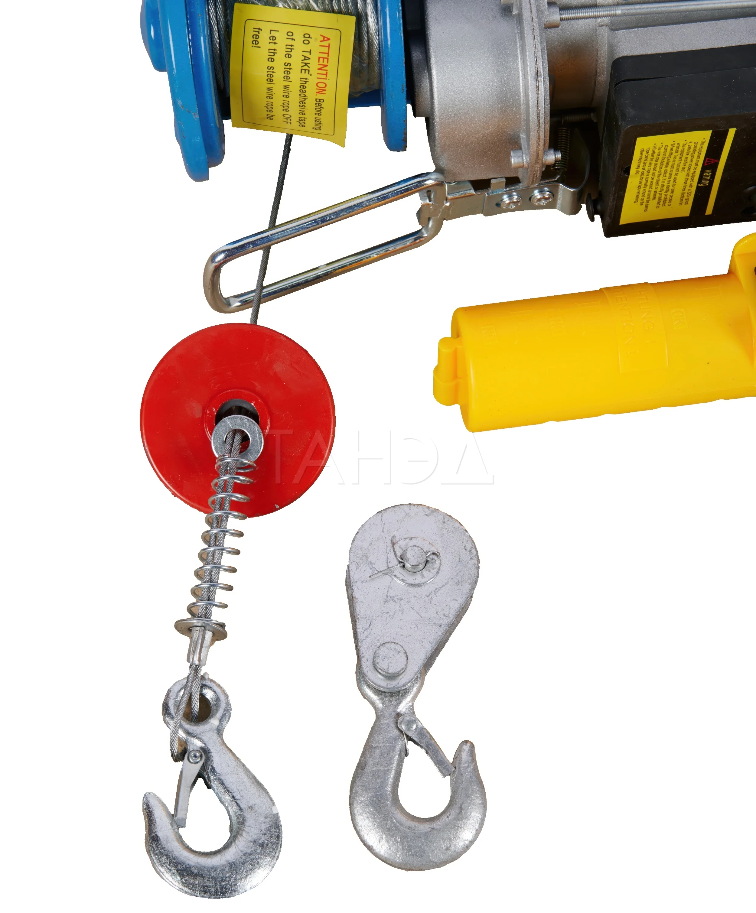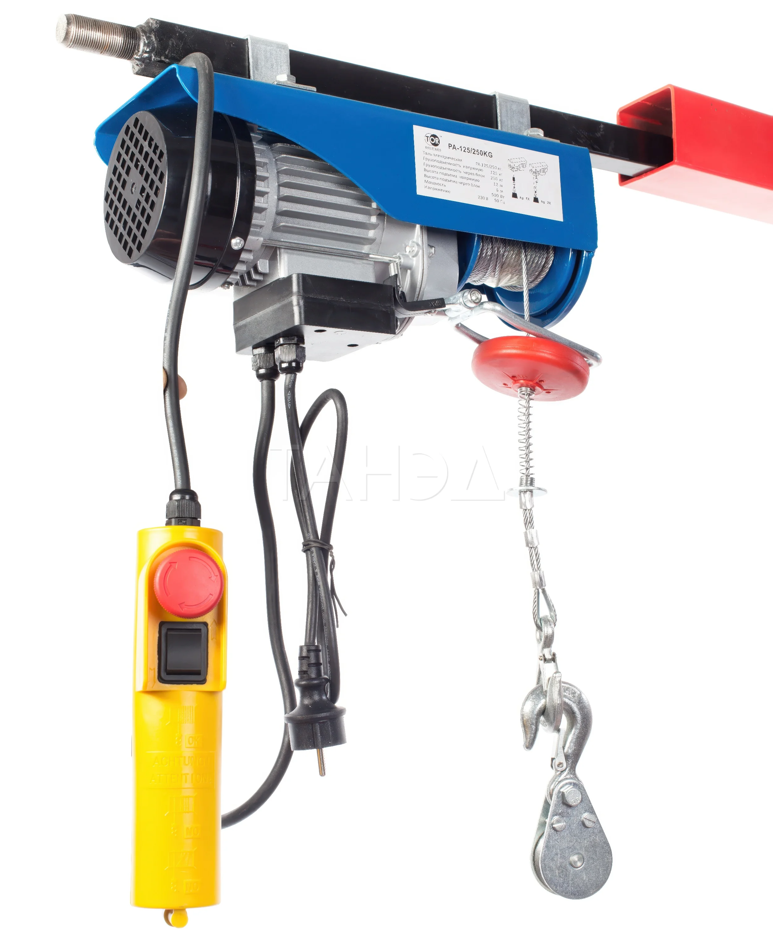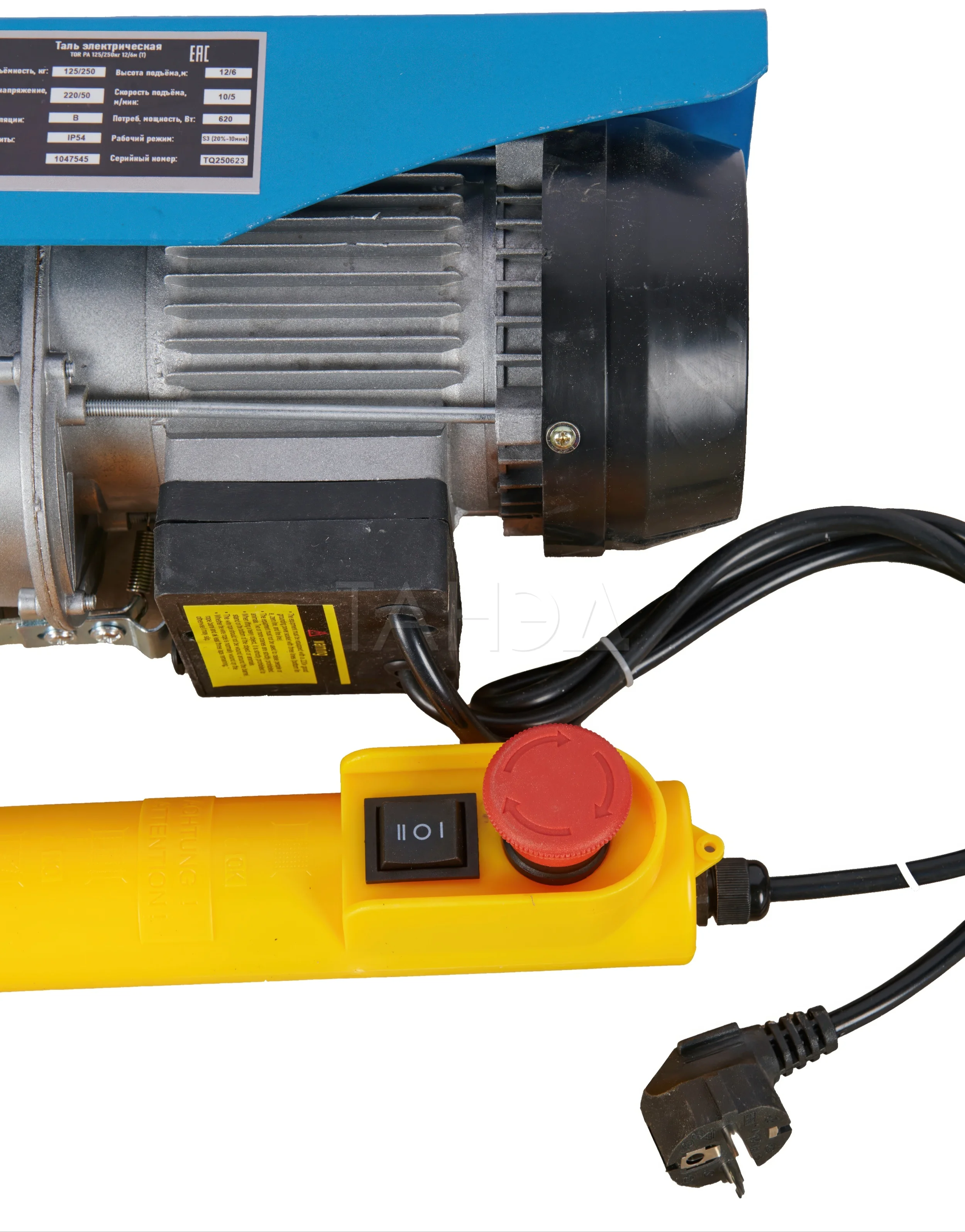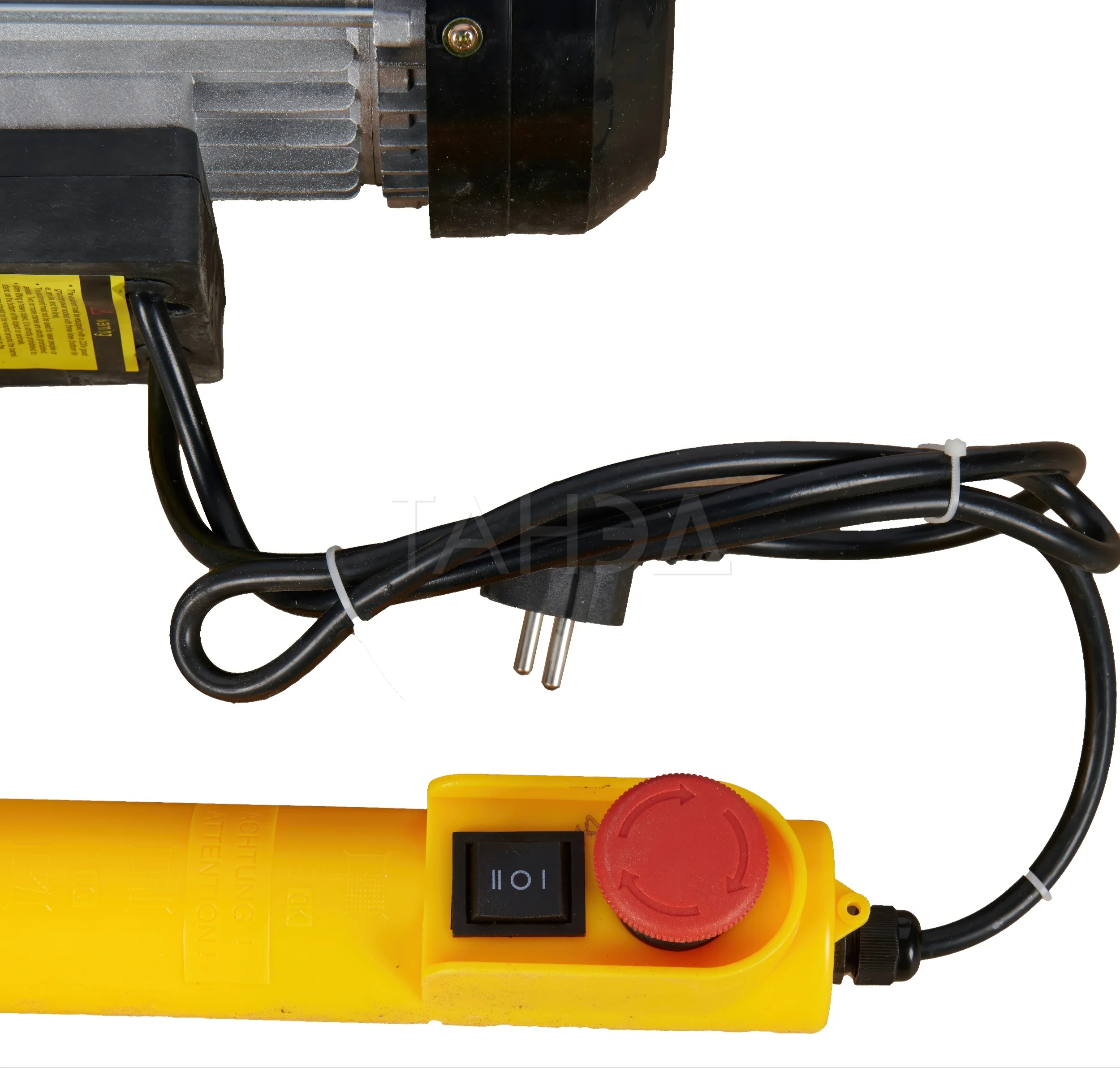 - универсальное подключение. Работа от стандартной бытовой сети 220 Вольт, что позволяет использовать таль практически в любых условиях;