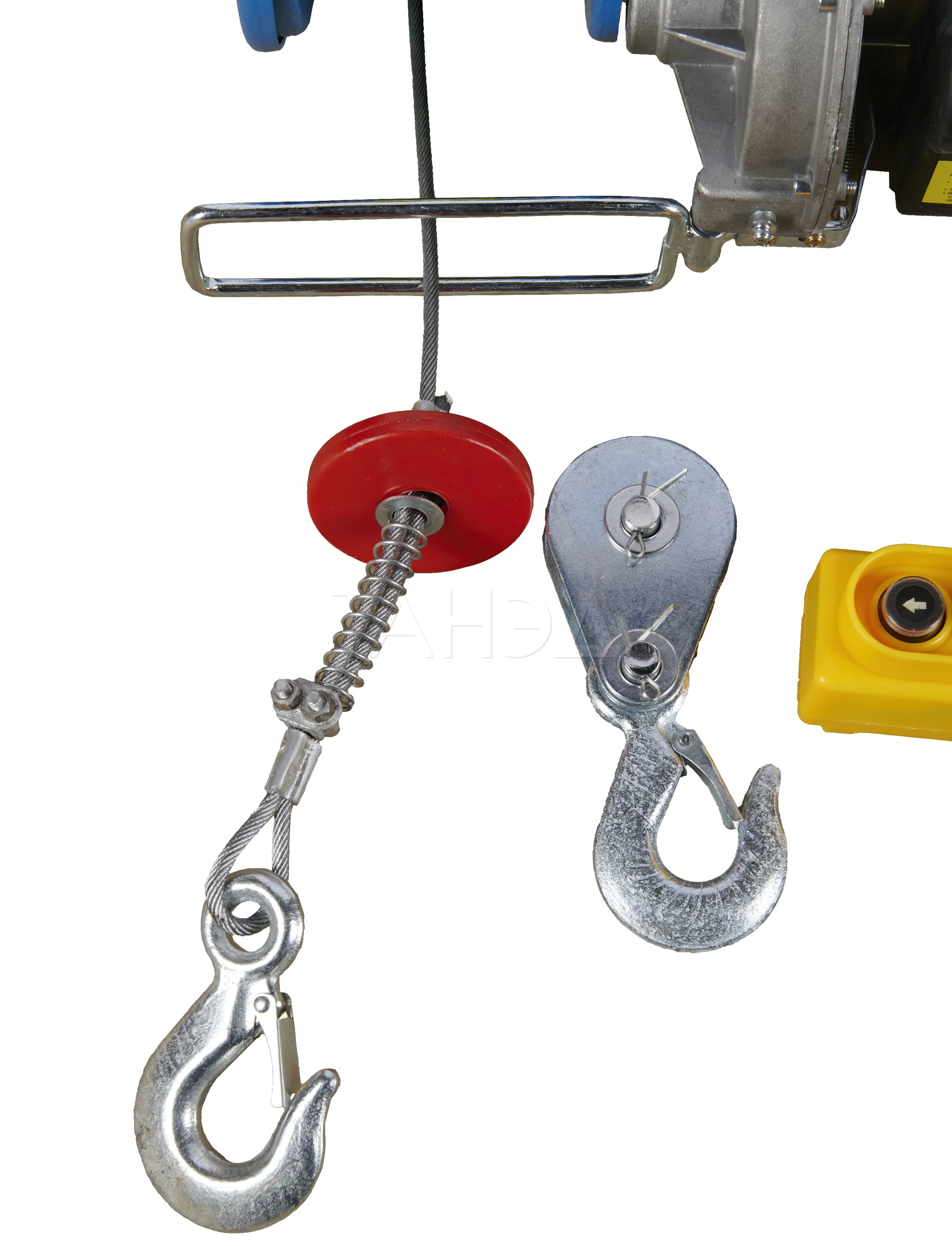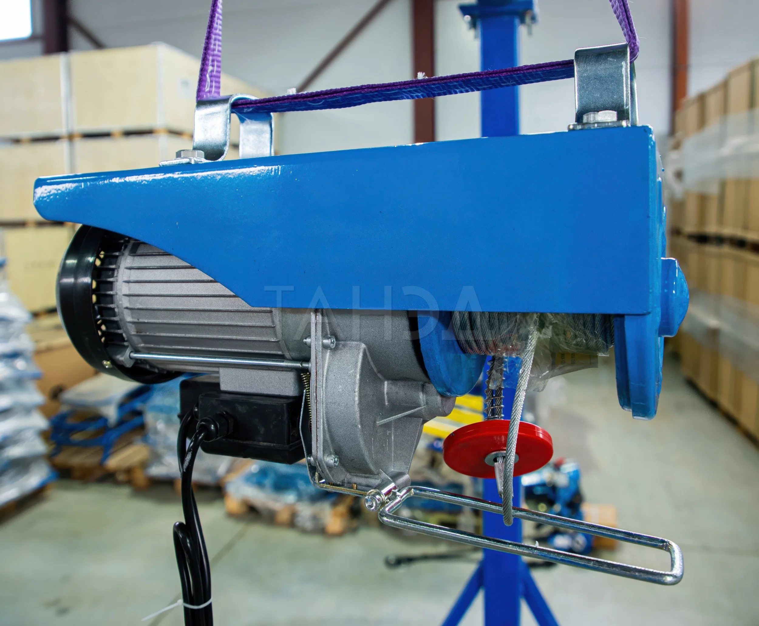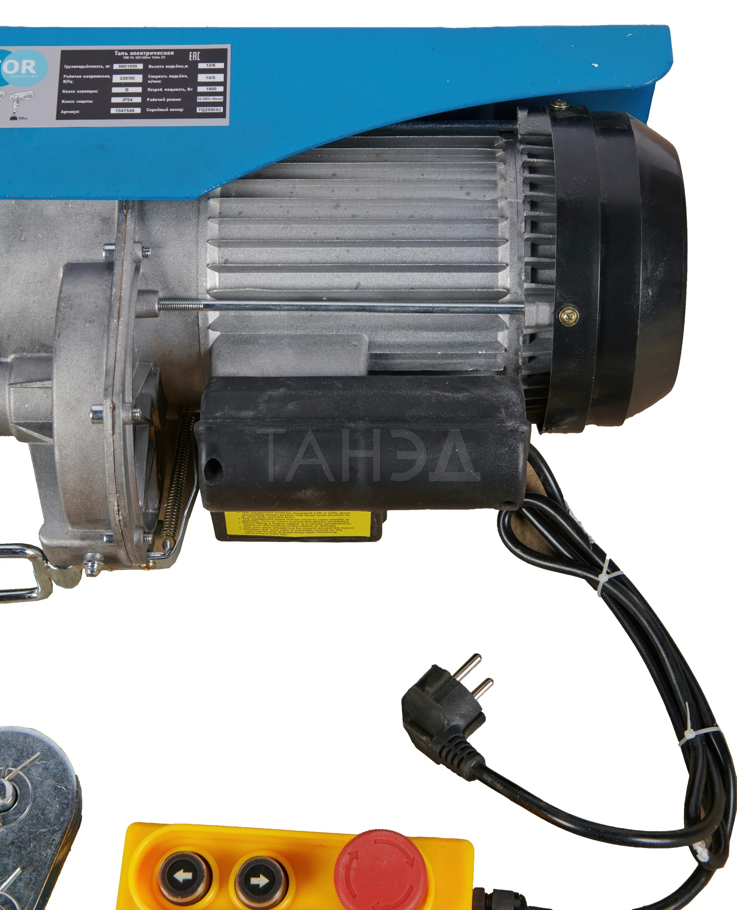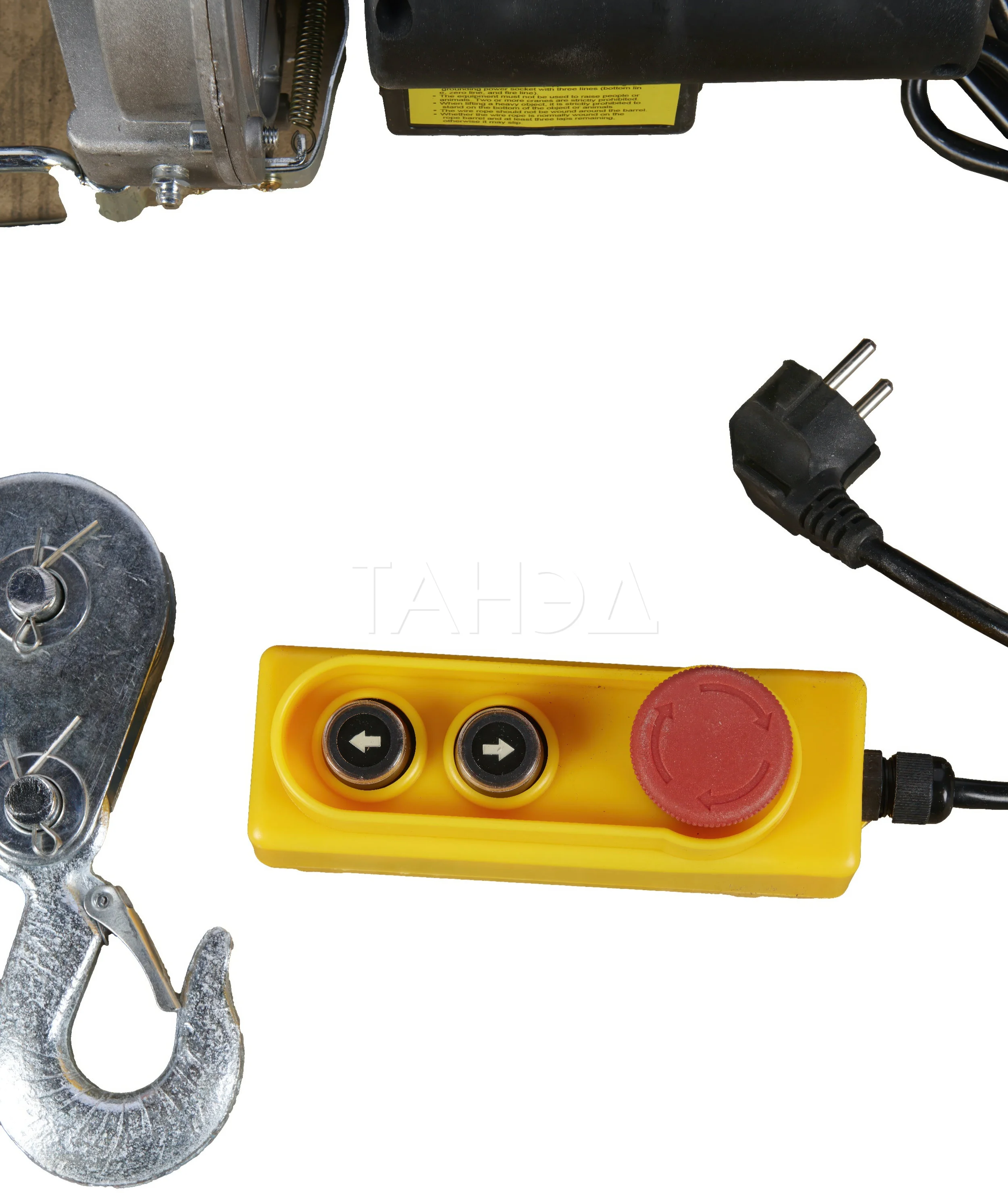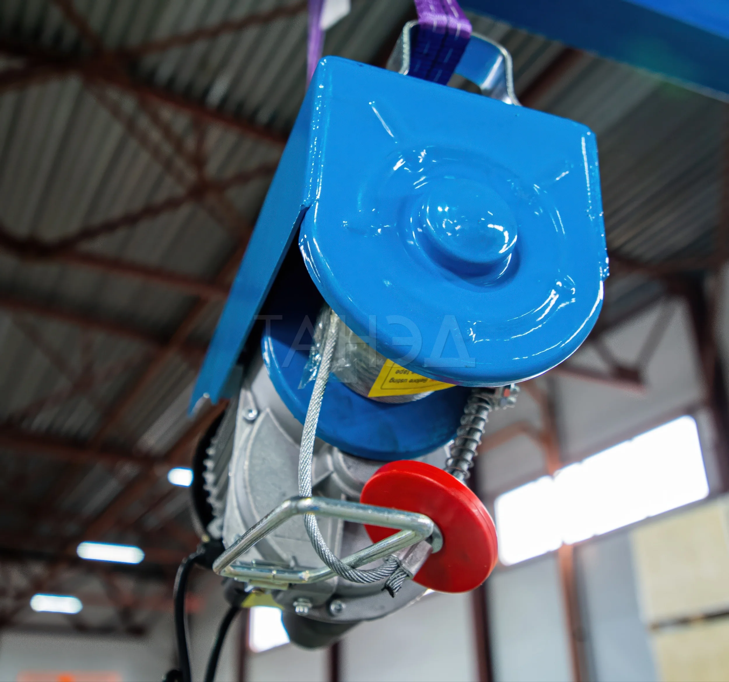 - универсальное подключение. Работа от стандартной бытовой сети 220 Вольт, что позволяет использовать таль практически в любых условиях;