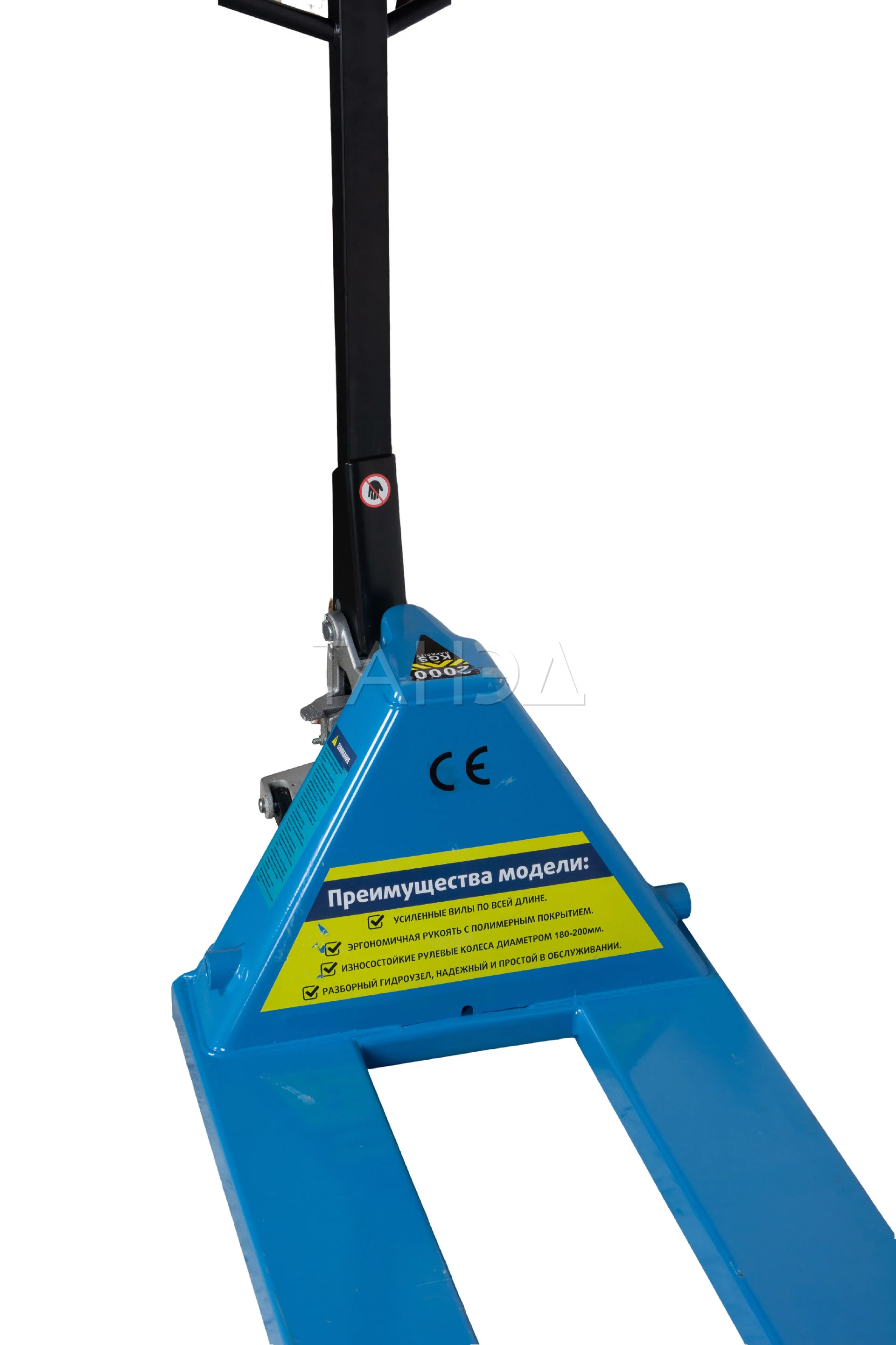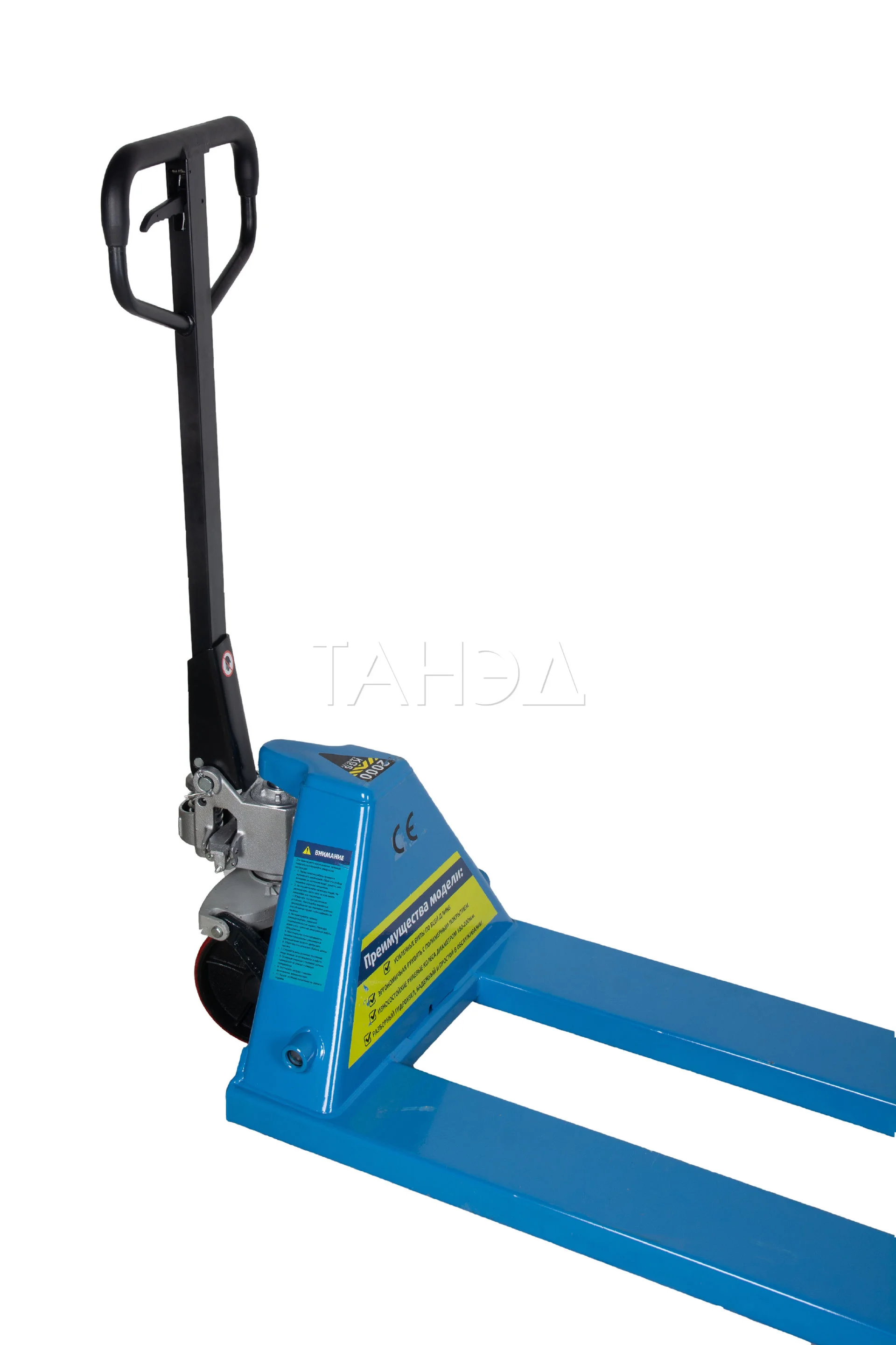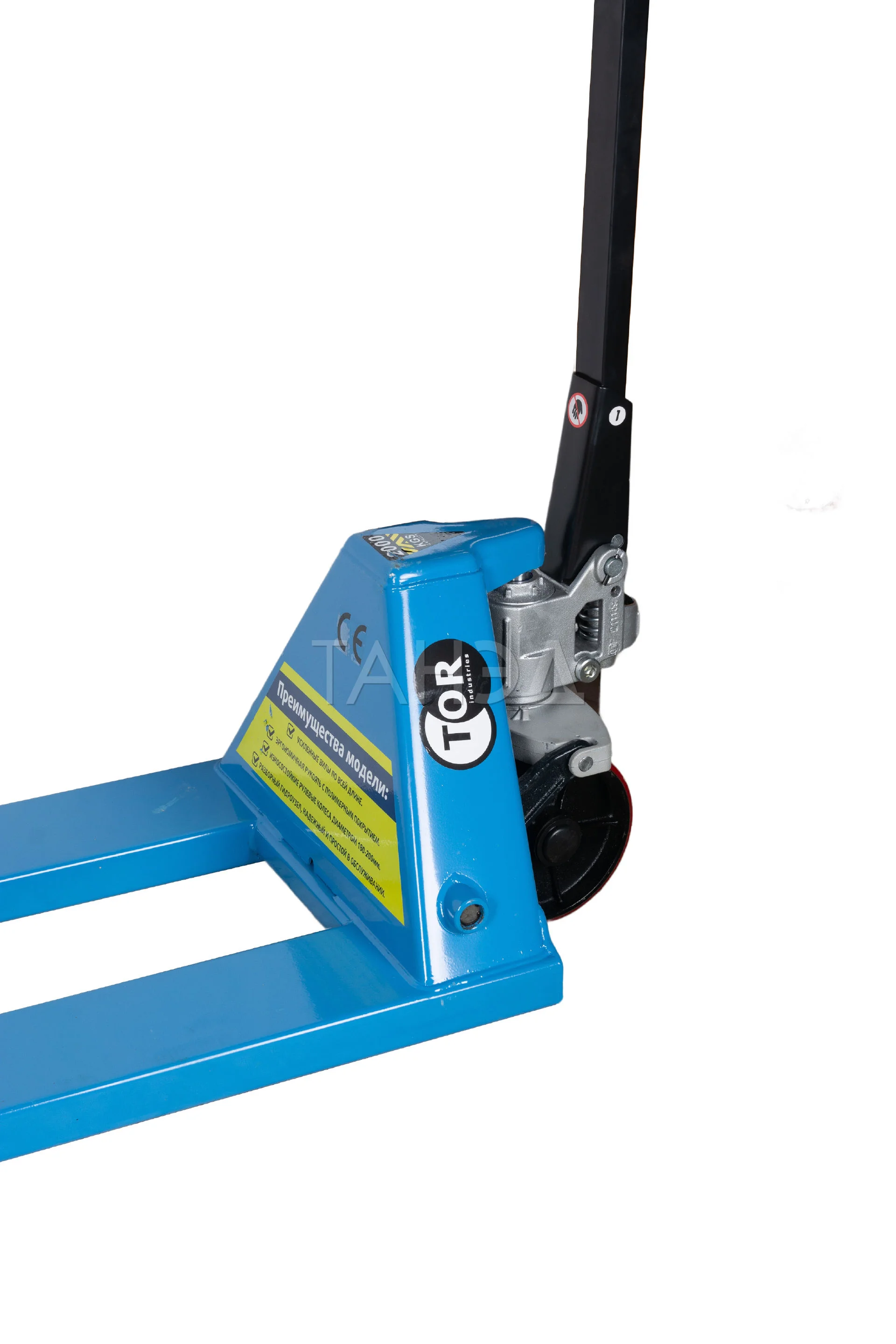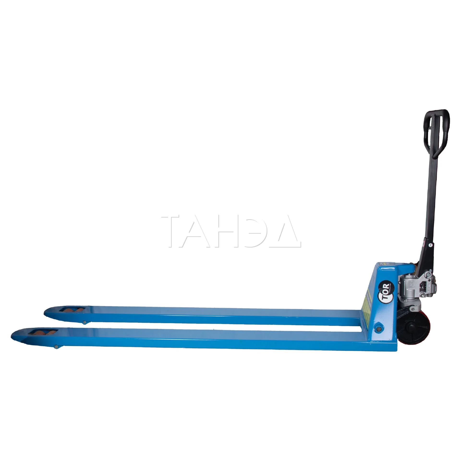 Ручная гидравлическая тележка TOR RHP. Грузоподъемность: 2500 кг. Длина вил: 2000 мм. Удлиненные вилы идеально подходят для работы с объемными грузами. Материал колес: полиуретан.
