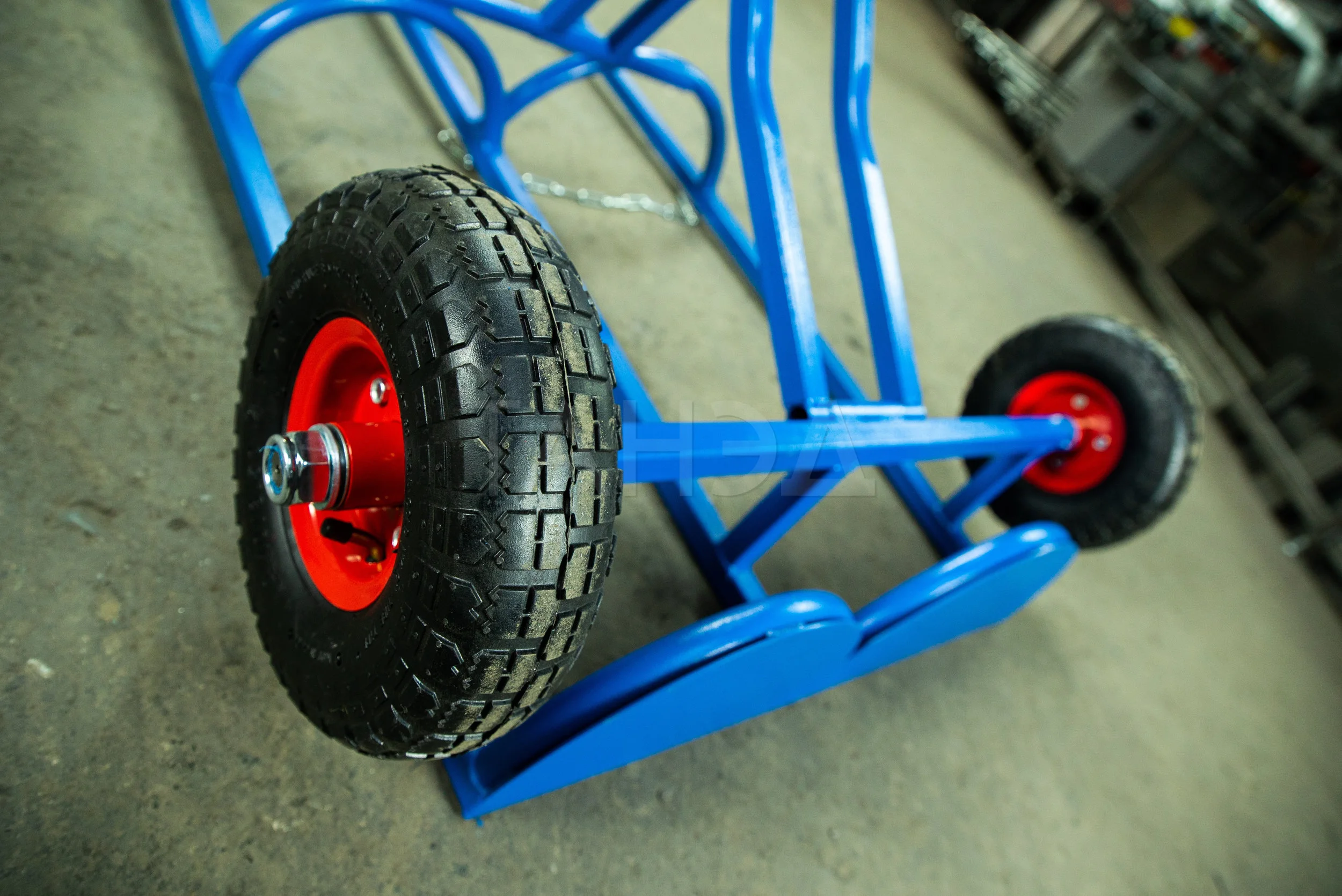 - Колесная база. Тележки оснащаются колесами диаметром 250 мм. Используются два вида колес: