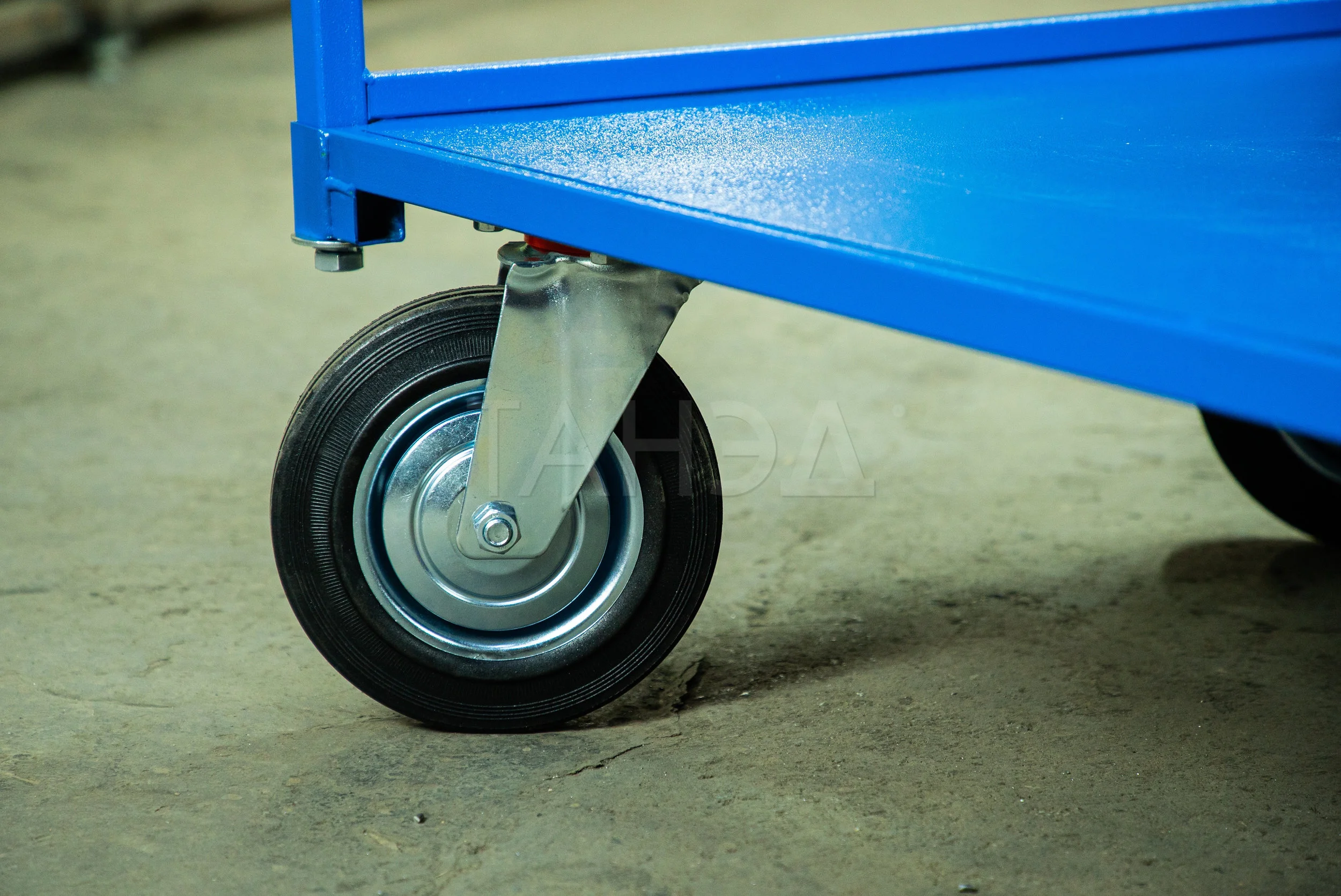 - Колесная база. Тележки в стандартном исполнении четырехколесные, удлиненные – шестиколесные, что позволяет распределить нагрузку и обеспечивает максимальную устойчивость. Диаметр колес зависит от модели оборудования и составляет от 125 до 200 мм. Изготовлены колеса из прочной резины, которая не повреждает напольное покрытие, амортизирует на неровностях, обеспечивая плавный ход.