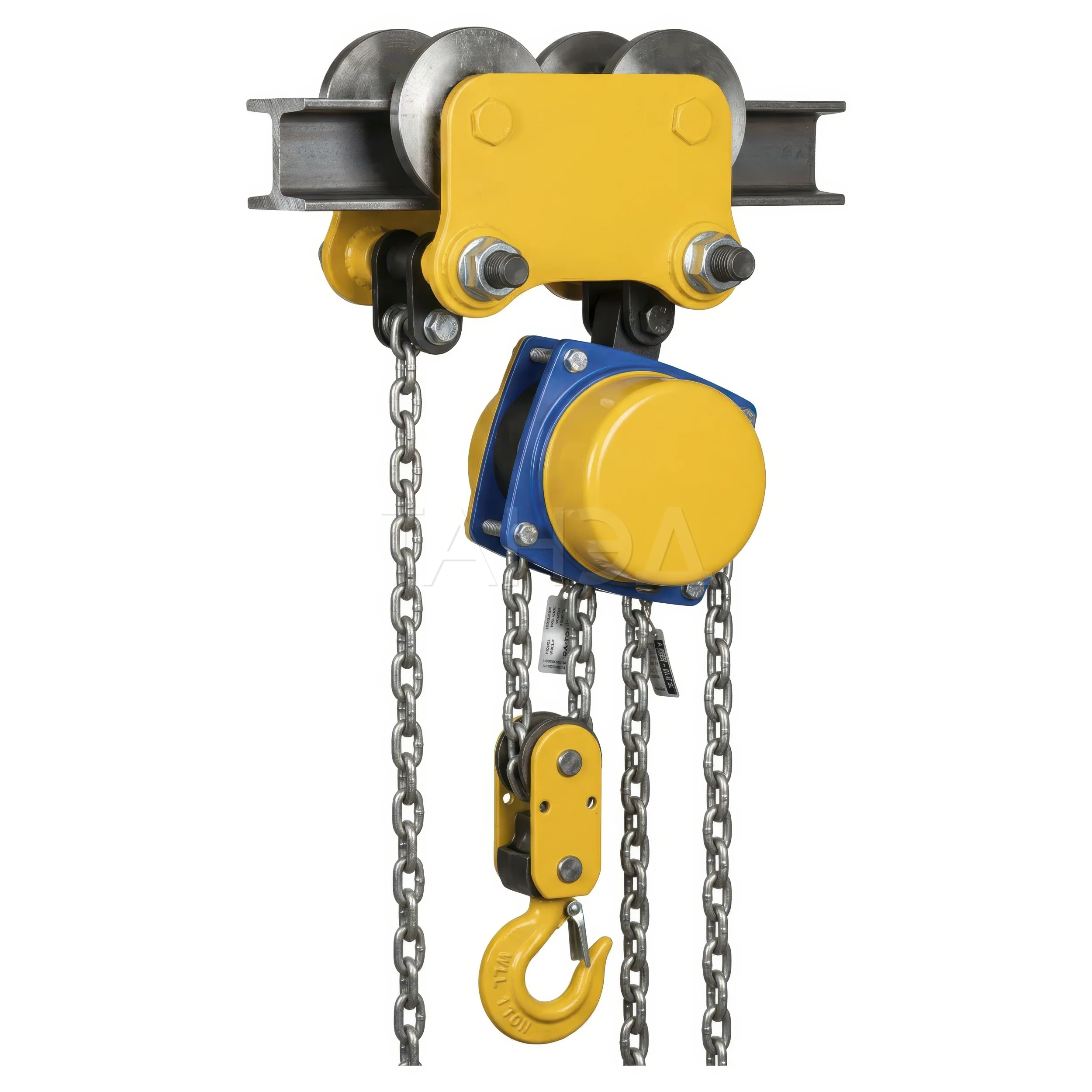 Все тали серии относятся к передвижному типу и комплектуются тележкой для перемещения по двутавровой балке. Конструкция рассчитана на стабильное движение под нагрузкой.