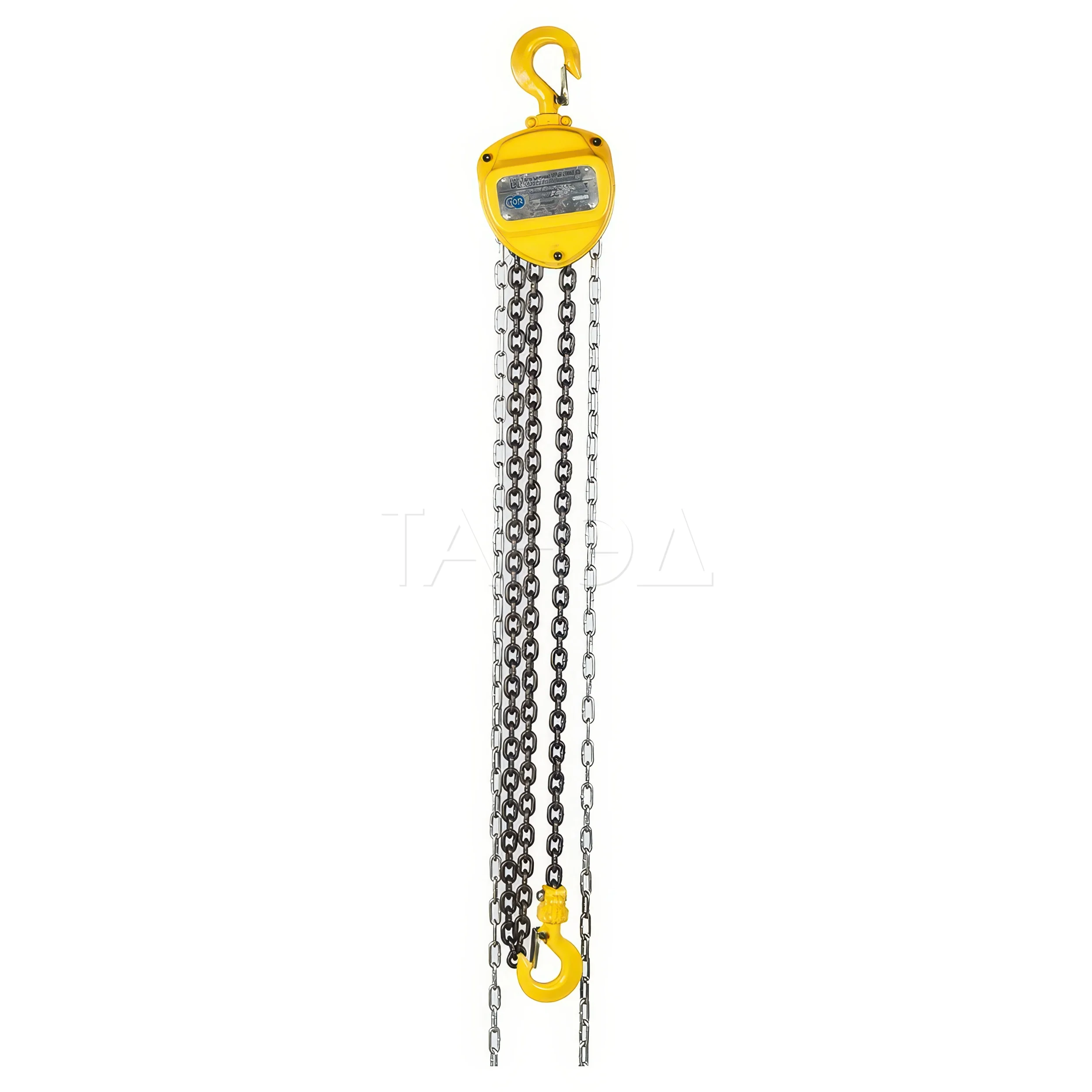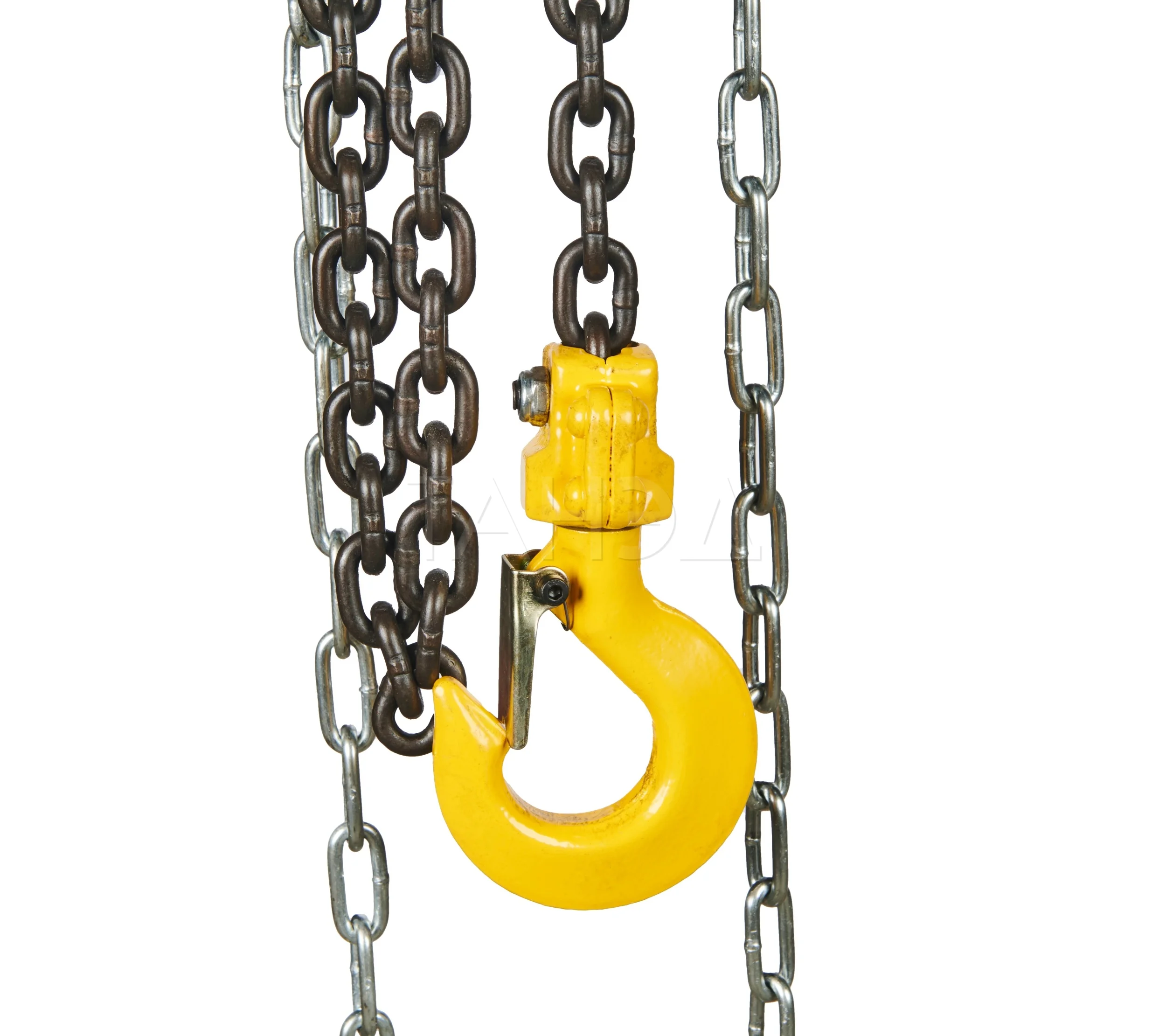 Грузозахватный элемент здесь - калиброванные стальные цепи высокой прочности. Для моделей малой грузоподъемности применяются цепи меньшего сечения, для средних и тяжелых — усиленные варианты, рассчитанные на повышенные нагрузки.