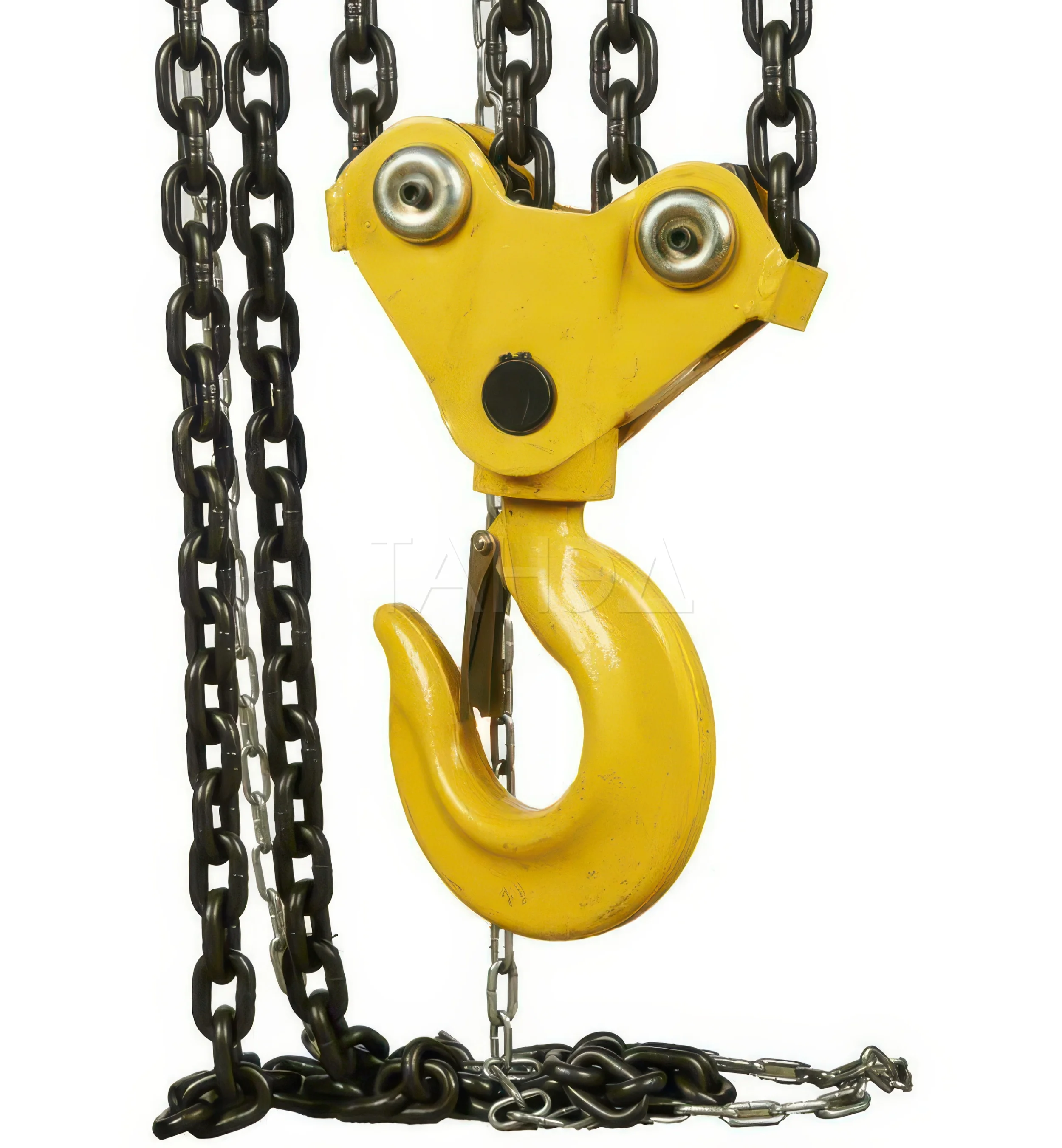Грузозахватный элемент здесь - калиброванные стальные цепи высокой прочности. Для моделей малой грузоподъемности применяются цепи меньшего сечения, для средних и тяжелых — усиленные варианты, рассчитанные на повышенные нагрузки.