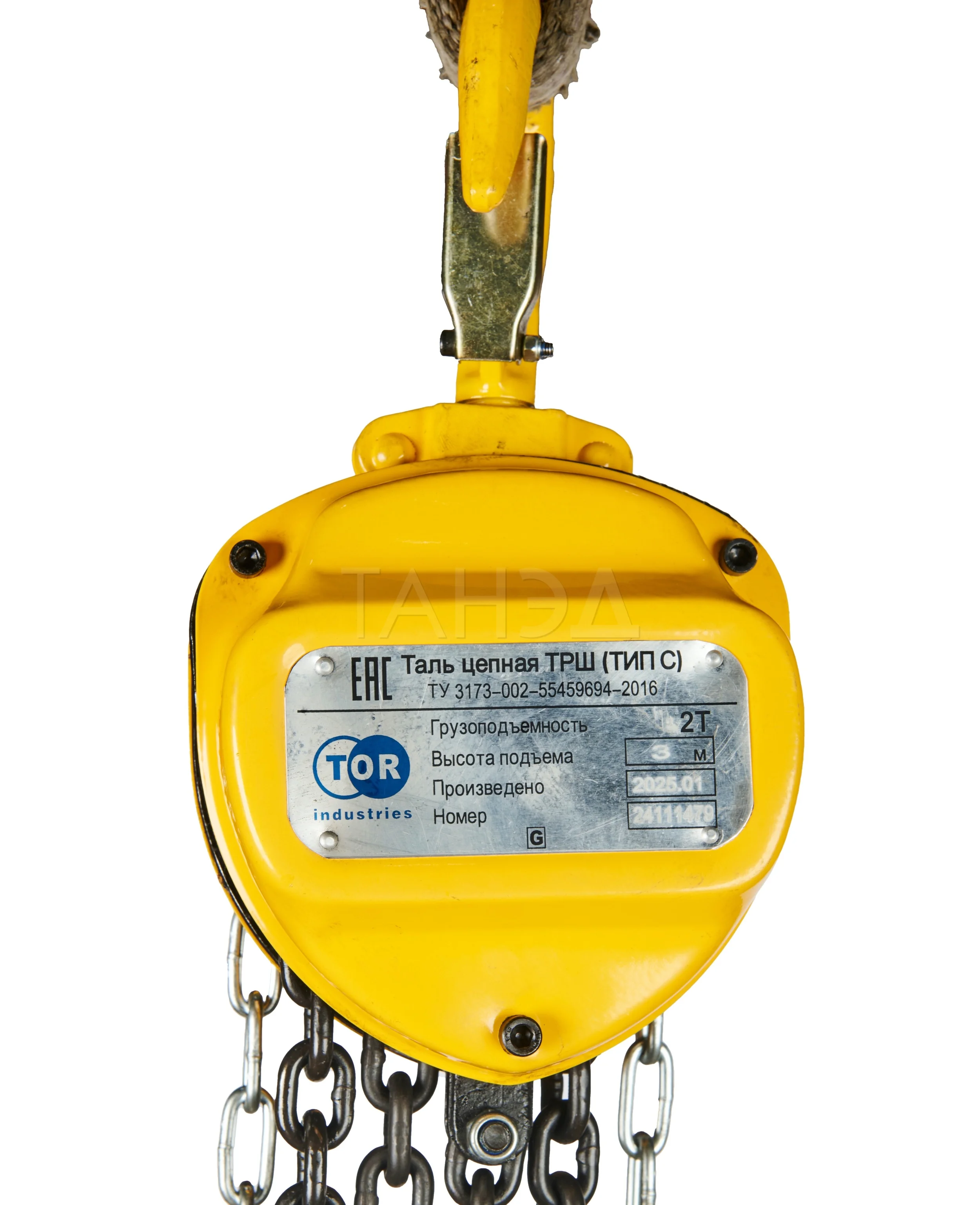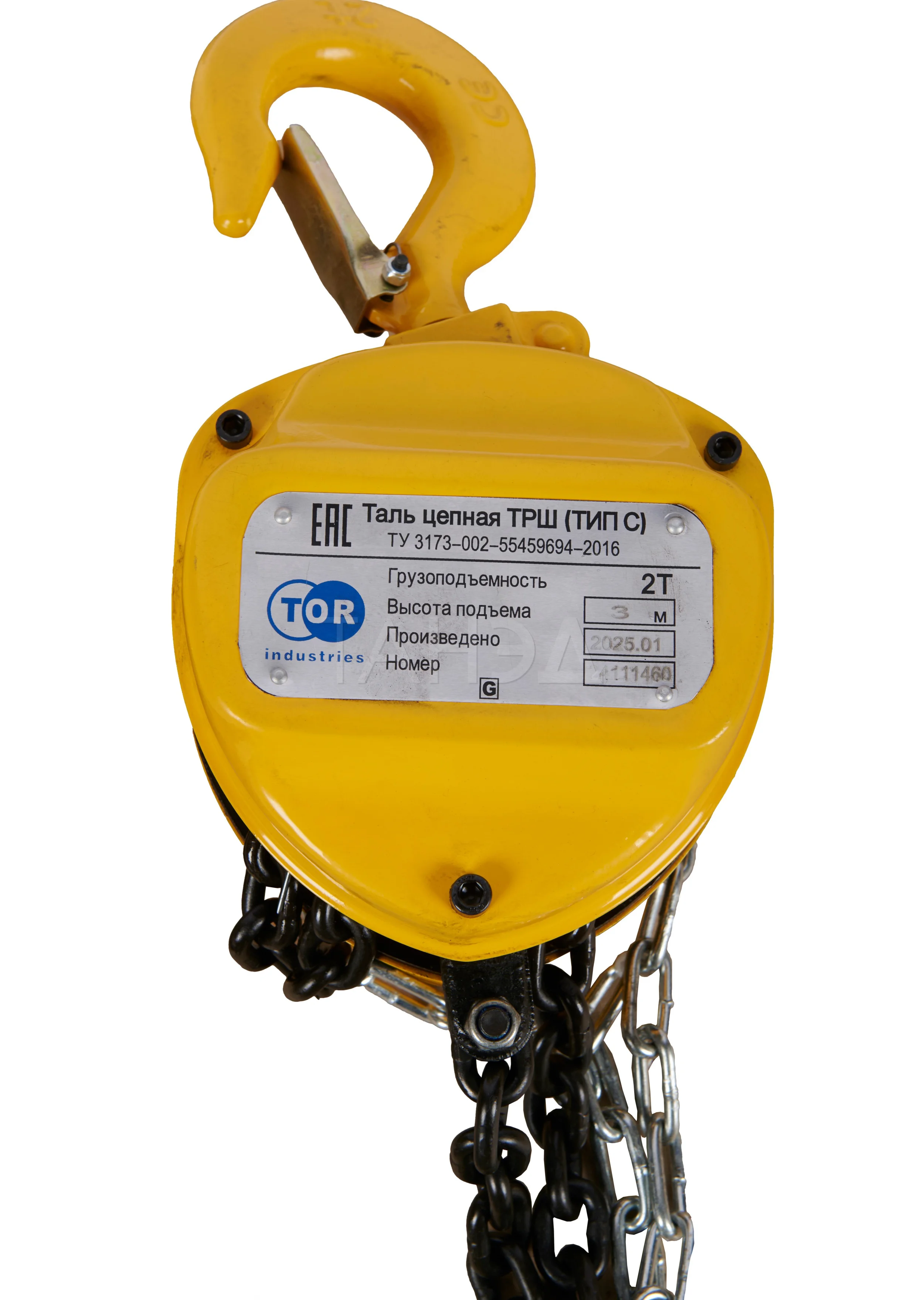 Таль ручная шестеренная TOR ТРШ C 2ТХ3М, 2 т, 3 м рассчитана на цеховые условия. Нагрузка до 2000 кг и высота 3 м подходят для перемещения тяжелых деталей и механизмов.