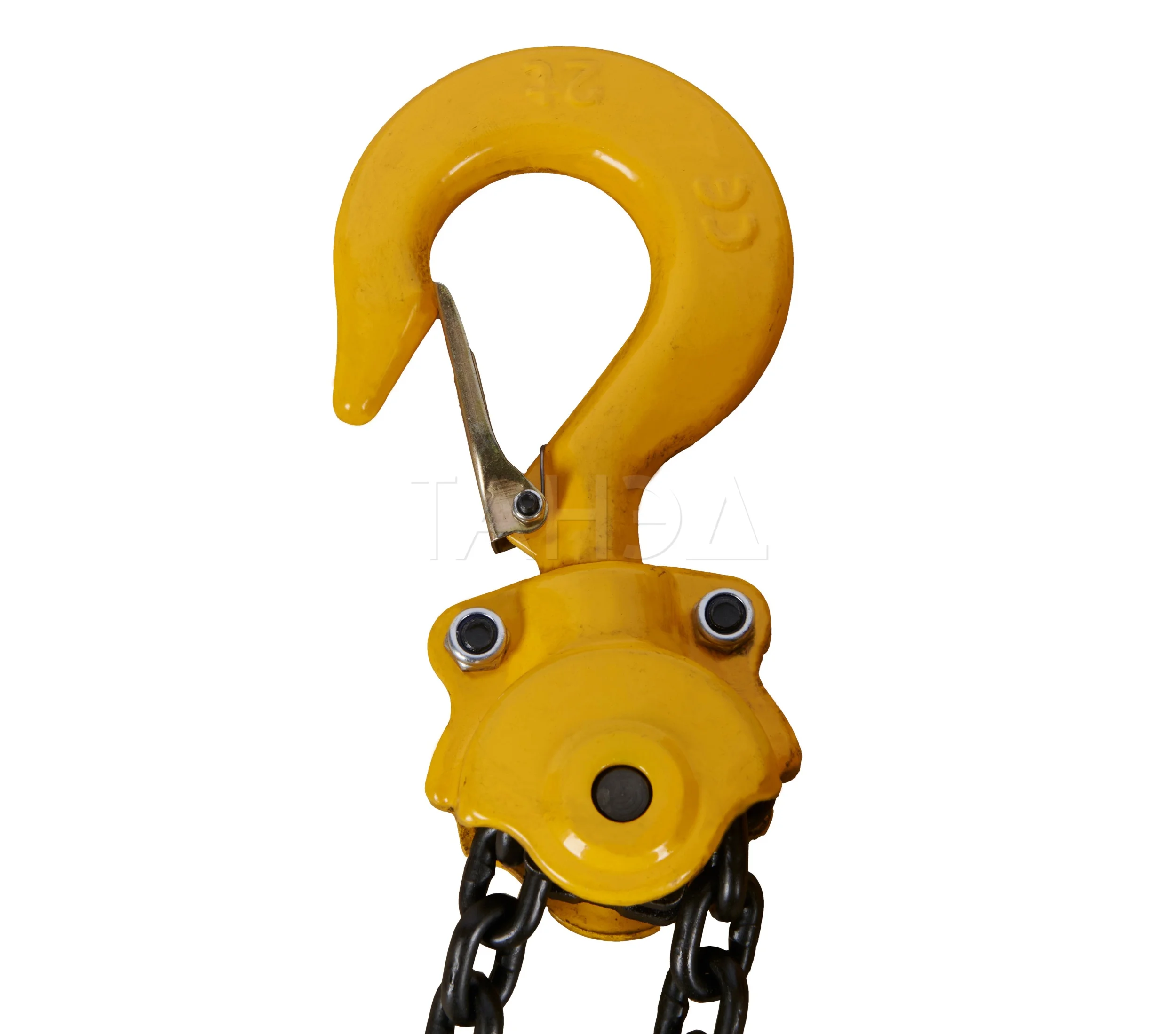 Модели имеют стационарное исполнение с прочной крюковой подвеской. Таль легко закрепляется на балке, монорельсе или ферме. Верхний и нижний крюки изготовлены из прочной стали и снабжены предохранительными защелками, которые исключают соскальзывание груза.