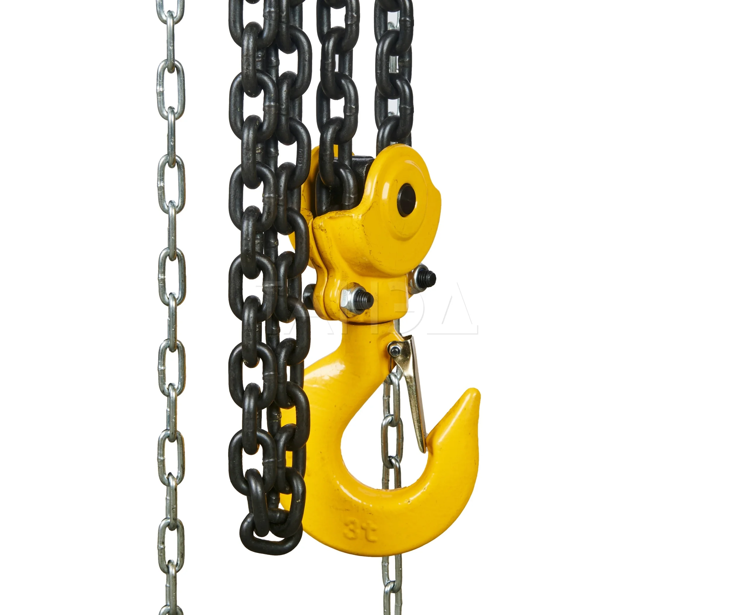 Грузозахватный элемент здесь - калиброванные стальные цепи высокой прочности. Для моделей малой грузоподъемности применяются цепи меньшего сечения, для средних и тяжелых — усиленные варианты, рассчитанные на повышенные нагрузки.