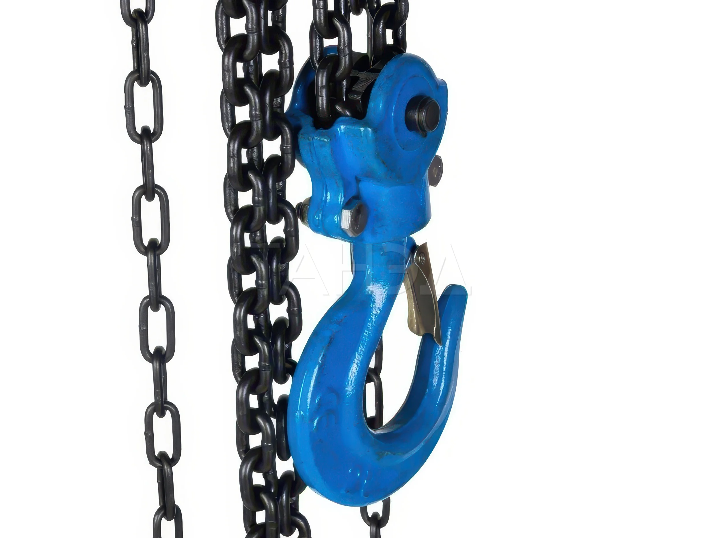 Грузозахватный элемент здесь - калиброванные стальные цепи высокой прочности. Для моделей малой грузоподъемности применяются цепи меньшего сечения, для средних и тяжелых — усиленные варианты, рассчитанные на повышенные нагрузки.