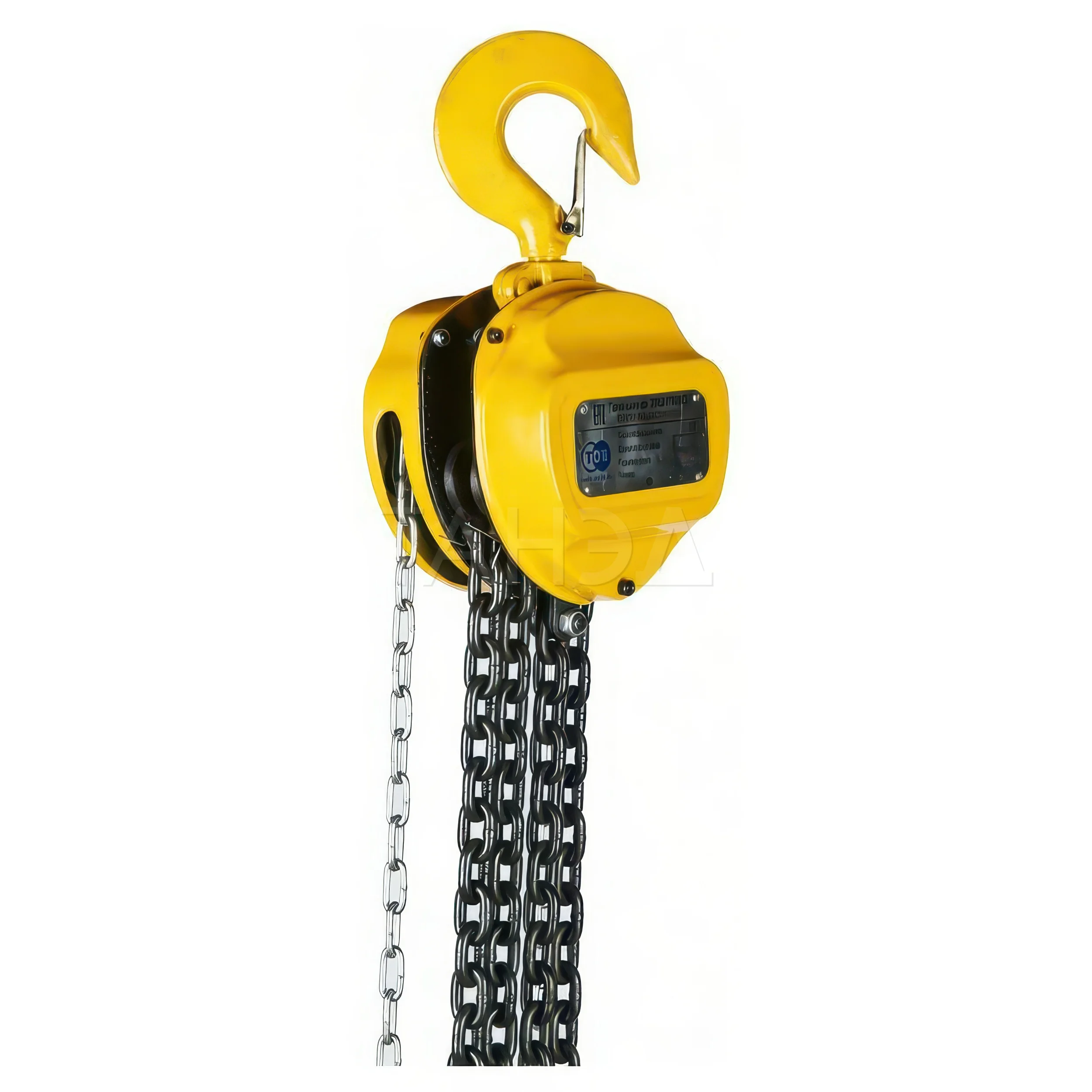 Грузозахватный элемент здесь - калиброванные стальные цепи высокой прочности. Для моделей малой грузоподъемности применяются цепи меньшего сечения, для средних и тяжелых — усиленные варианты, рассчитанные на повышенные нагрузки.