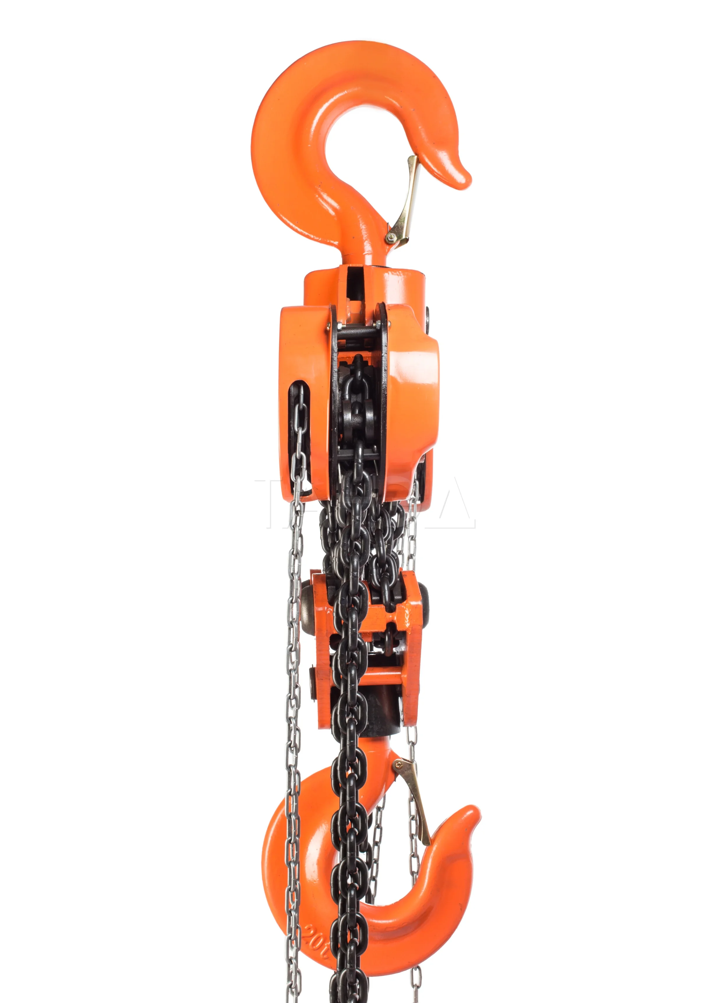 Грузозахватный элемент здесь - калиброванные стальные цепи высокой прочности. Для моделей малой грузоподъемности применяются цепи меньшего сечения, для средних и тяжелых — усиленные варианты, рассчитанные на повышенные нагрузки.