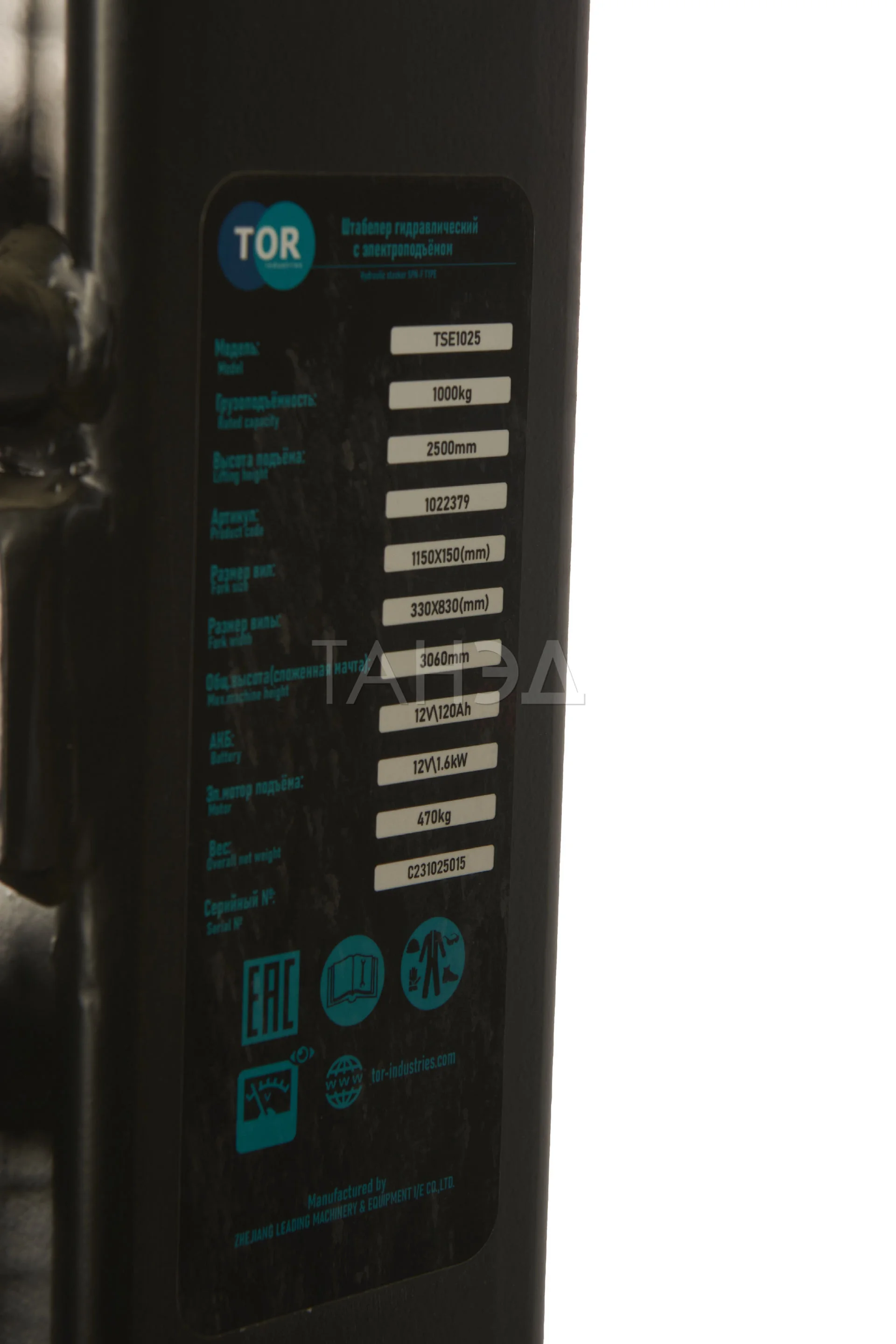 Штабелер гидравлический с электроподъемом 1.0 т 3.0 м TOR TSE1030