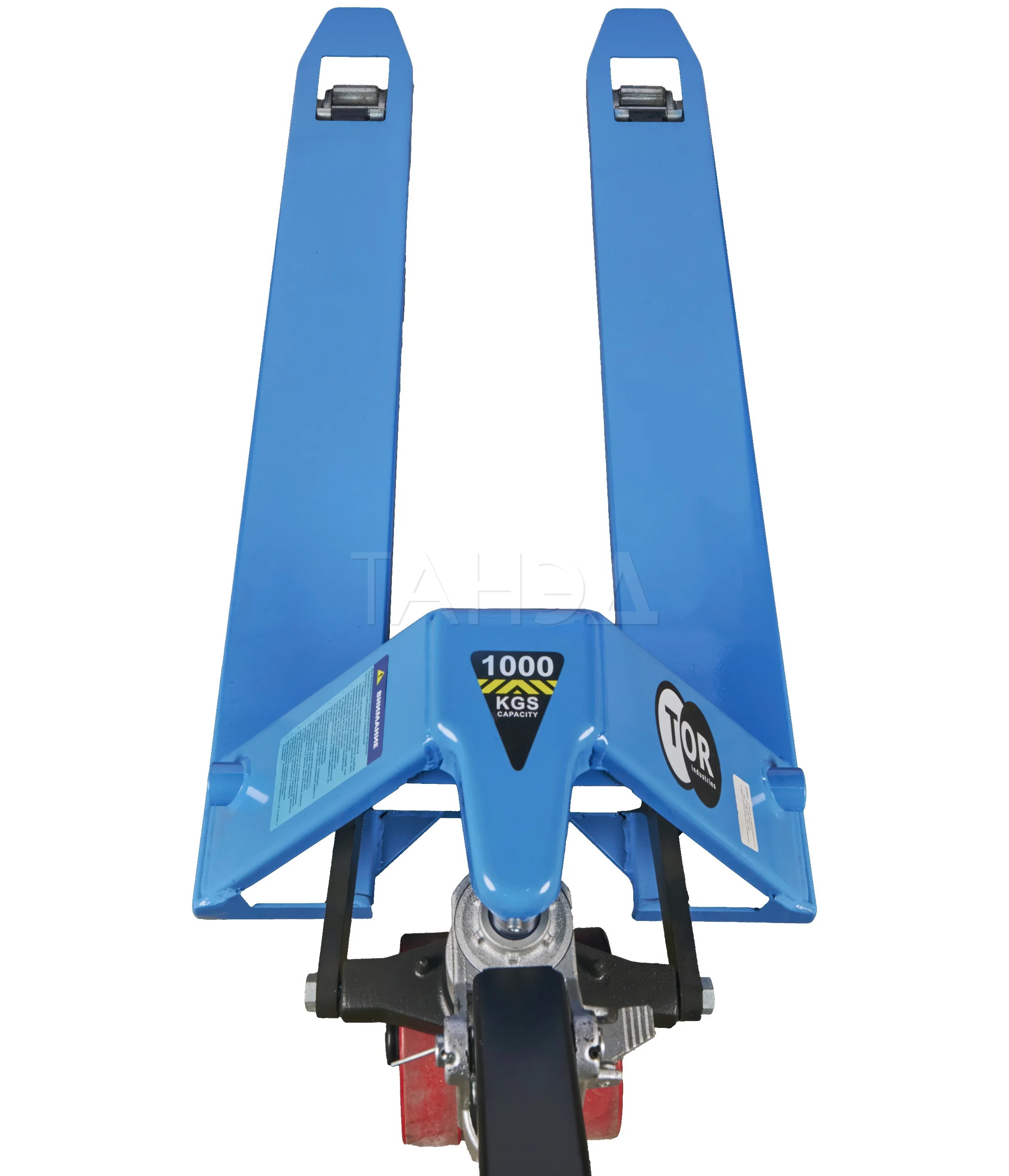 Грузоподъемность гидравлической тележки TOR WH-10L (35 мм) (PU) составляет 1000 кг. Длина вил стандартная – 1150 мм.