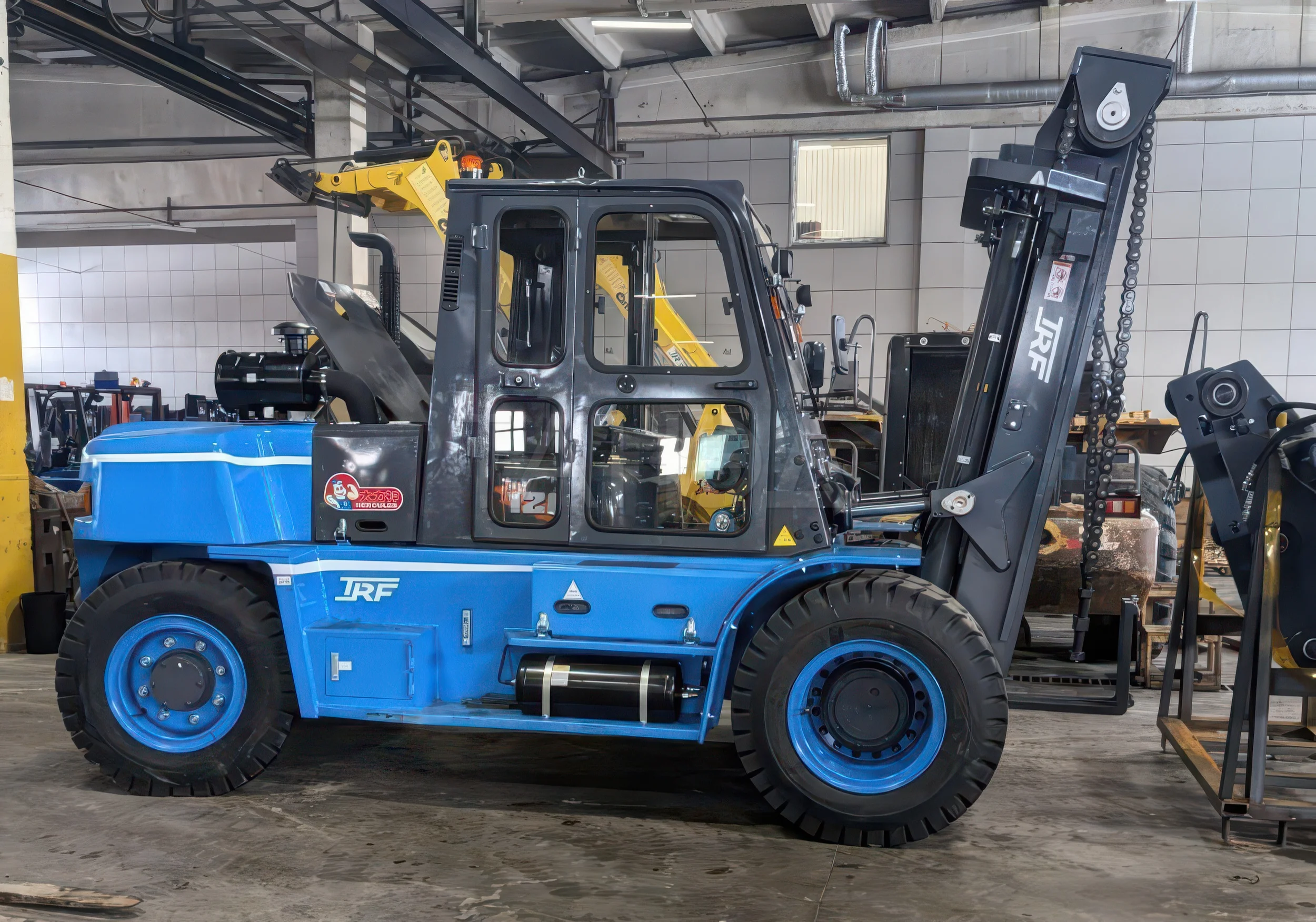 Дизельный погрузчик TRF D120-3X с максимальной грузоподъемностью 12000 кг. Высота подъема составляет 3000 мм. Оснащается надежным дизелем XINCHAI CA6DF3-16GAG3U.