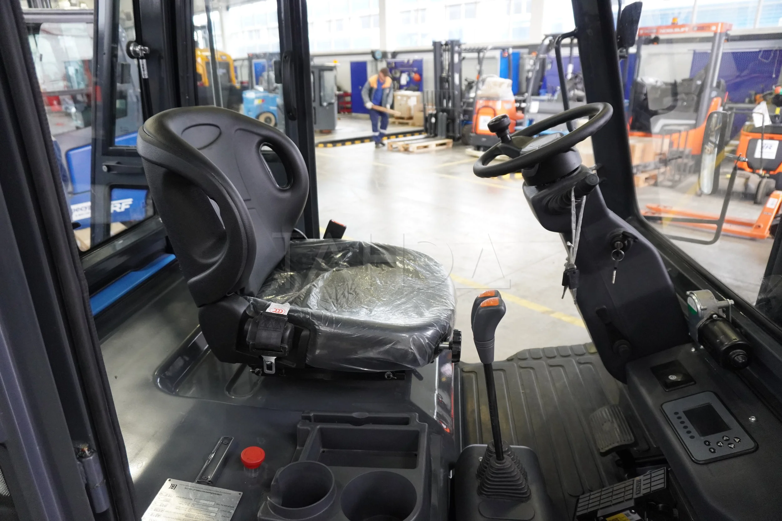 - комфортное кресло, удобно расположенные органы управления (у рулевого управления низкое усилие, педали регулируемые, что снижает нагрузку на оператора);