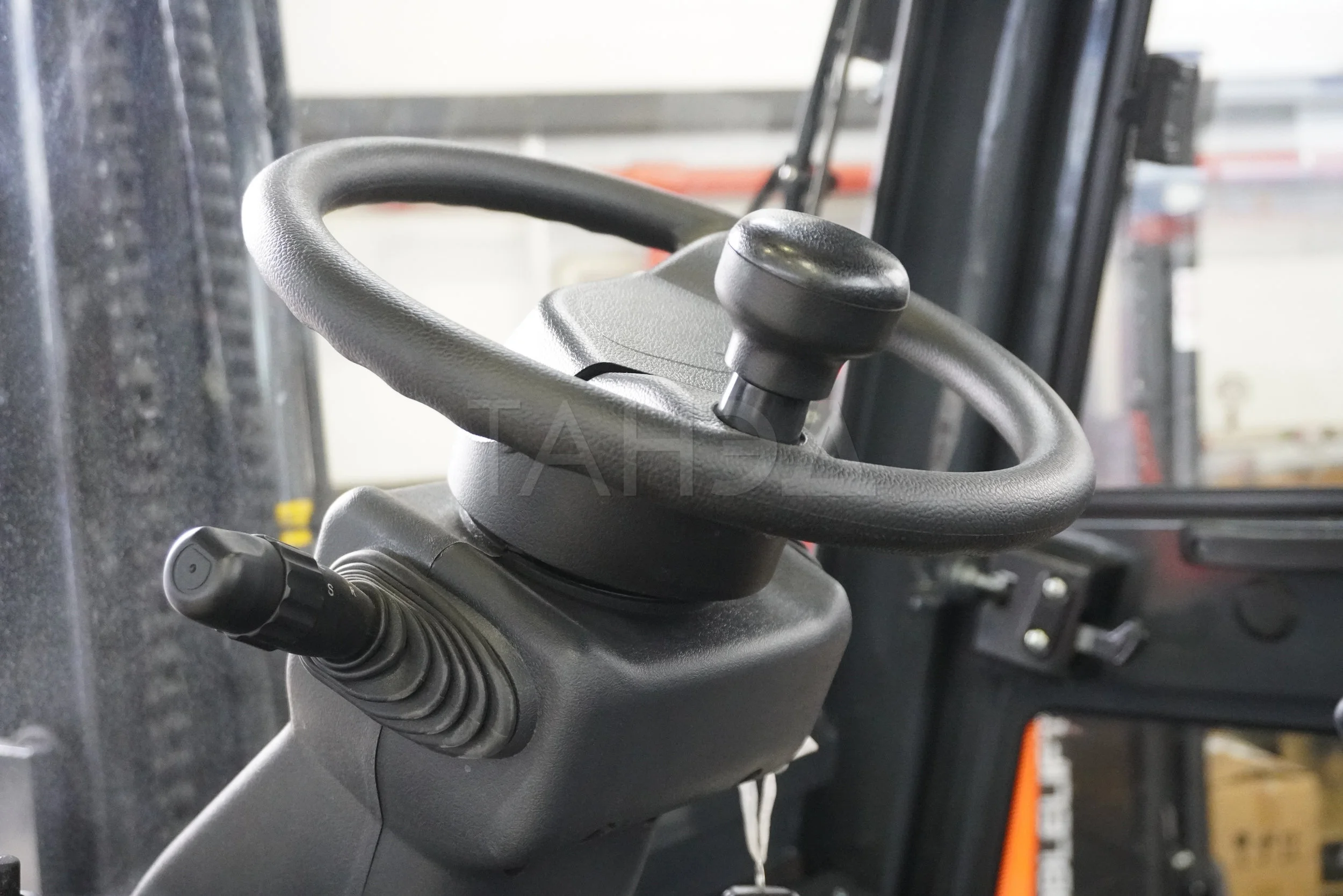 - дополнительное оборудование, включая каретку для бокового смещения вил, систему предупреждения столкновений, камеру с круговым обзором, навесные рабочие органы.