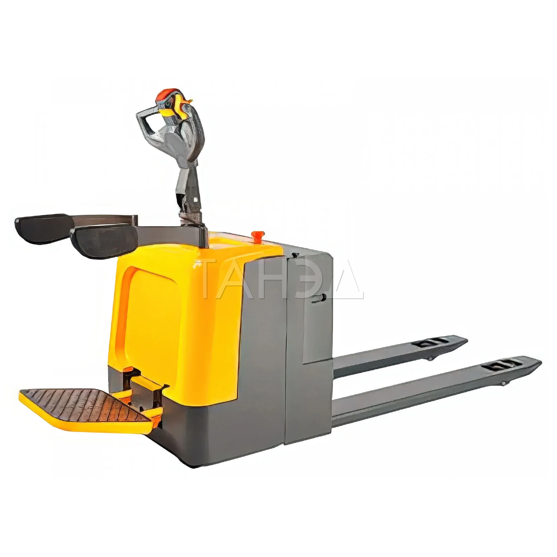 - Платформа для оператора. Такие модели удобны, если регулярно требуется перемещать грузы на значительные расстояния. Если помещение относительно небольшое, можно использовать сопровождаемую тележку.