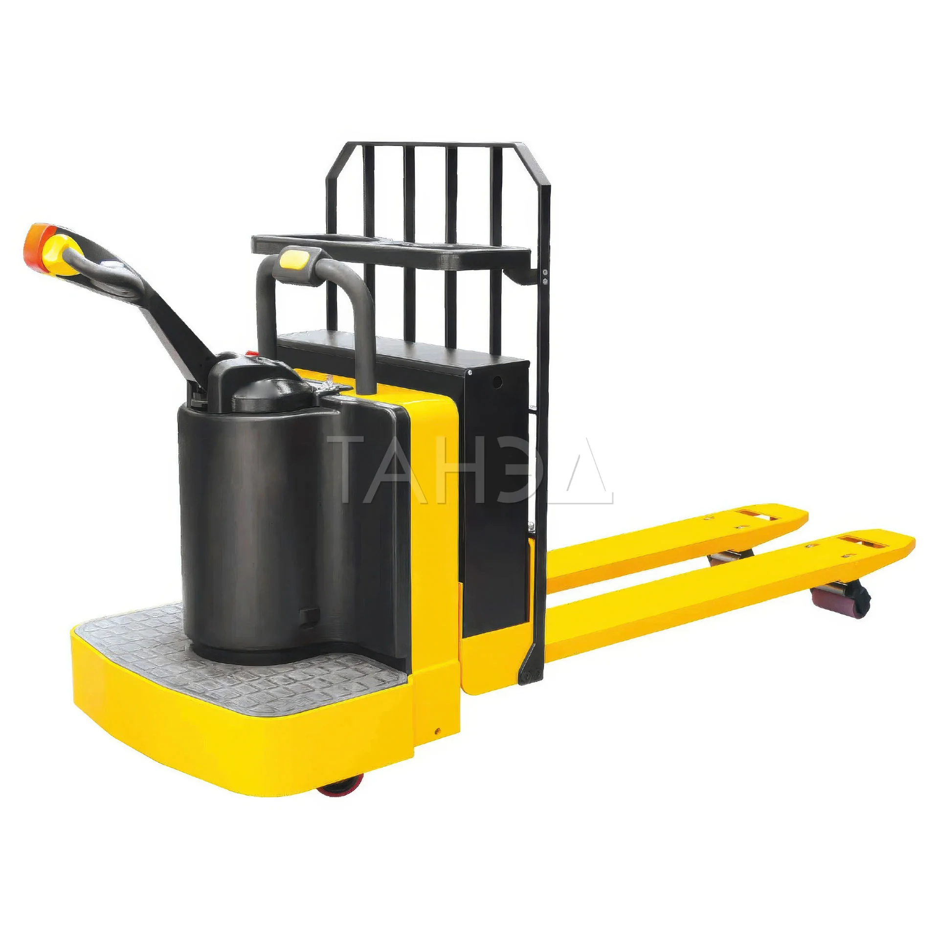 Грузоподъемность электрической самоходной тележки XILIN CBD30T – 3000 кг, длина вил составляет 1220 мм. Модель с платформой для оператора, оснащенная высокой разделительной решеткой.