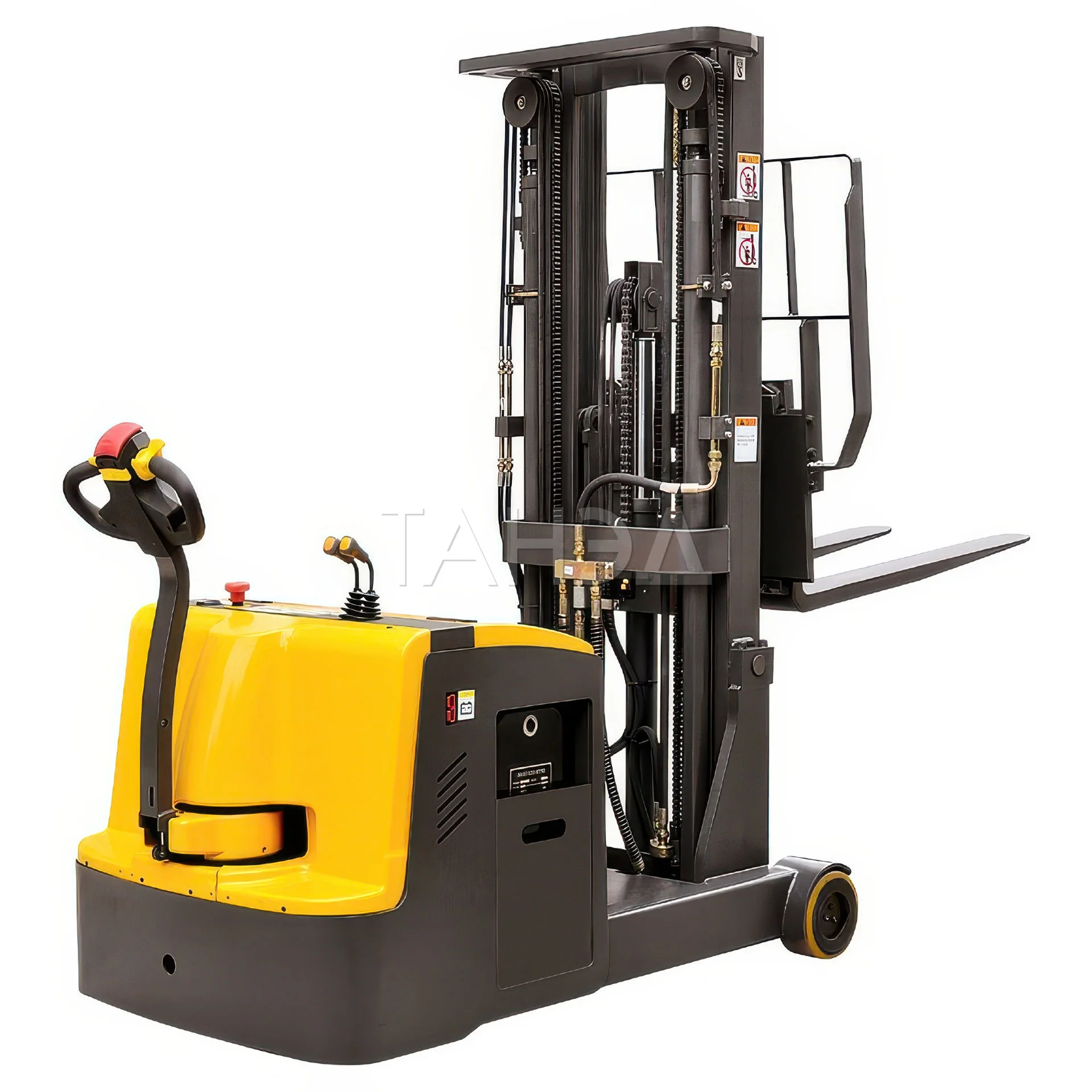 Самоходный штабелёр с противовесом TOR CPD15W с грузоподъёмностью 1500 кг и высотой подъёма до 5600 мм. Управление — поводкового типа. Аккумулятор 24 В, 280 А·ч. Отсутствие передних опорных консолей для подъезда к стеллажу вплотную.