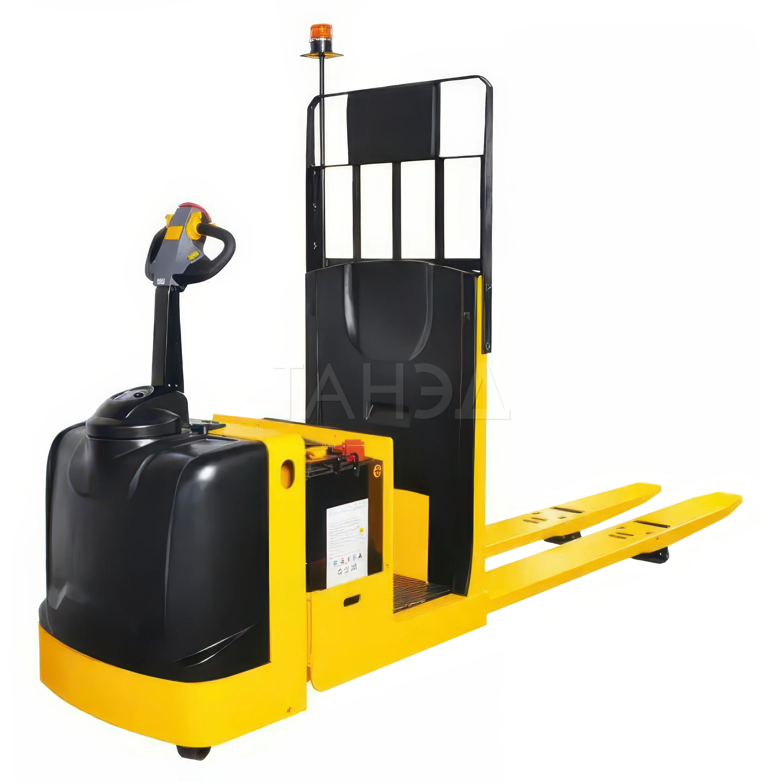 Управление техникой сосредоточено на многофункциональной рукоятке, объединяющей кнопки движения, подъёма и опускания вил. Такая компоновка уменьшает усталость оператора и обеспечивает высокую точность манёвров. Полиуретановые колёса снижают вибрации и гарантируют плавный ход, а уровень шума не превышает 70 дБ — техника остаётся комфортной даже при длительной работе.